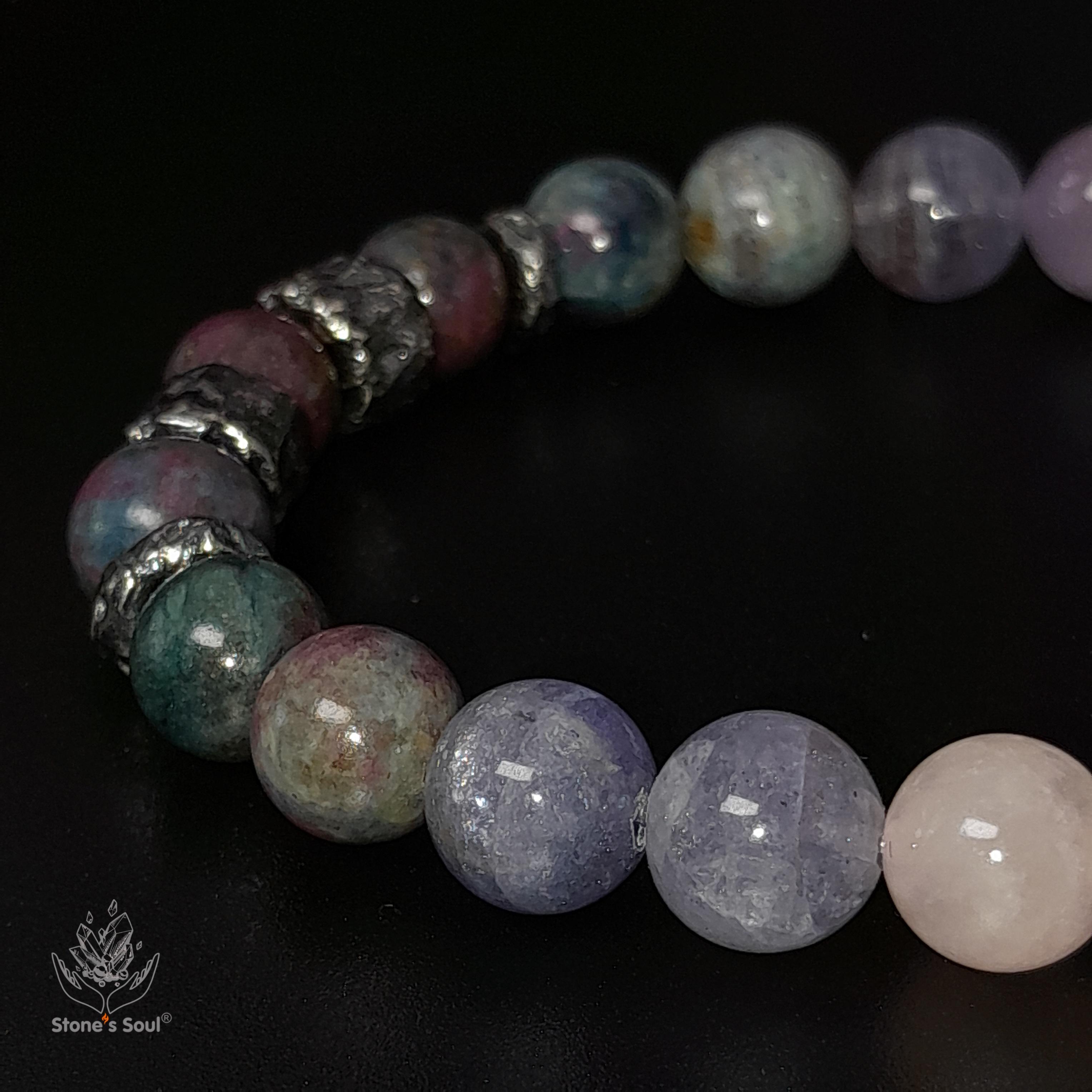 💎 Рубин в кианите, Танзанит, Розовый кварц, Сахарный кварц 📿 Бусины 8мм ⚜ Фурнитура латунь с серебрением Артикул 1000100