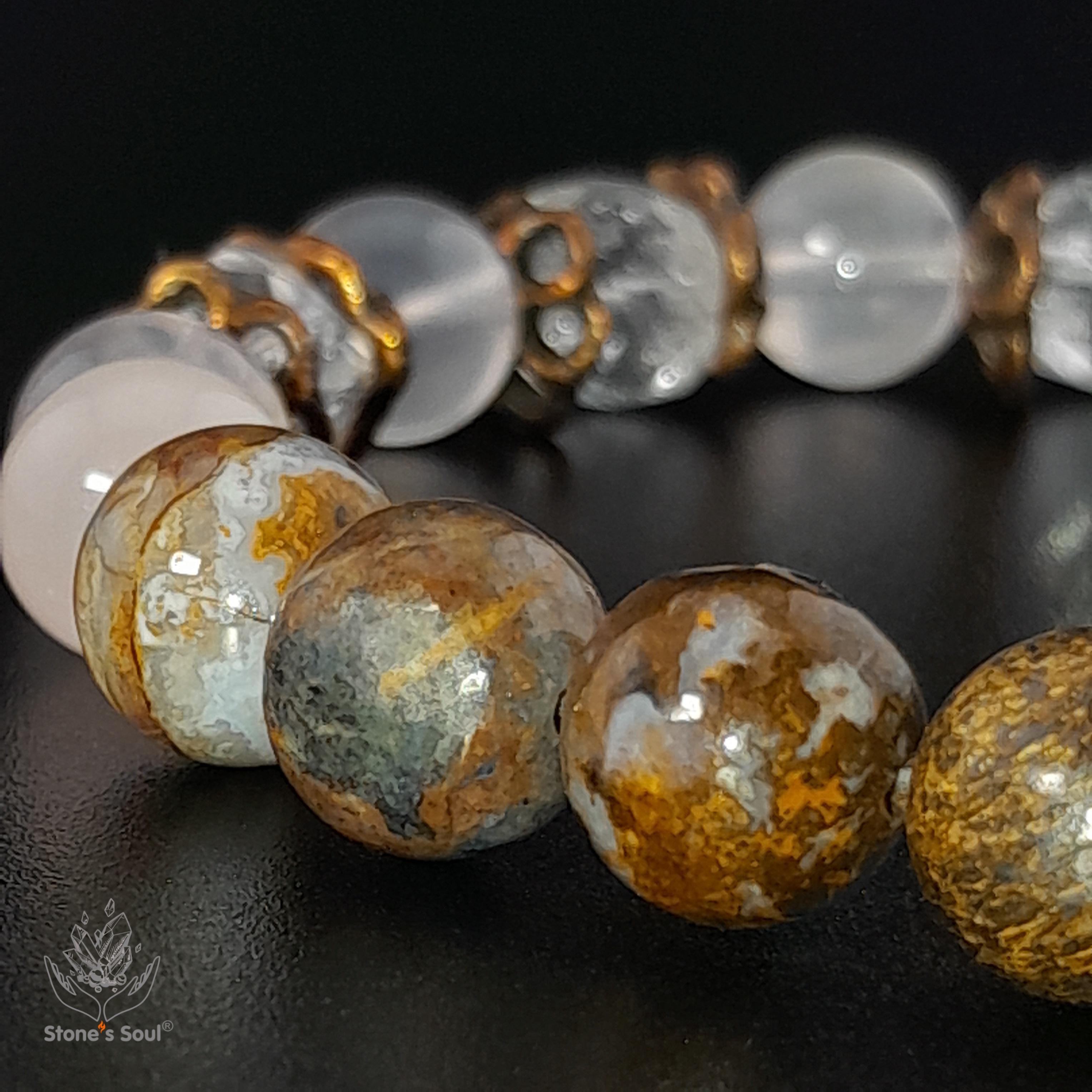 💎 Бронзит, Петерсит, Розовый кварц, Горный хрусталь 📿 Бусины 8 мм ⚜ Фурнитура бронза Артикул 1000106