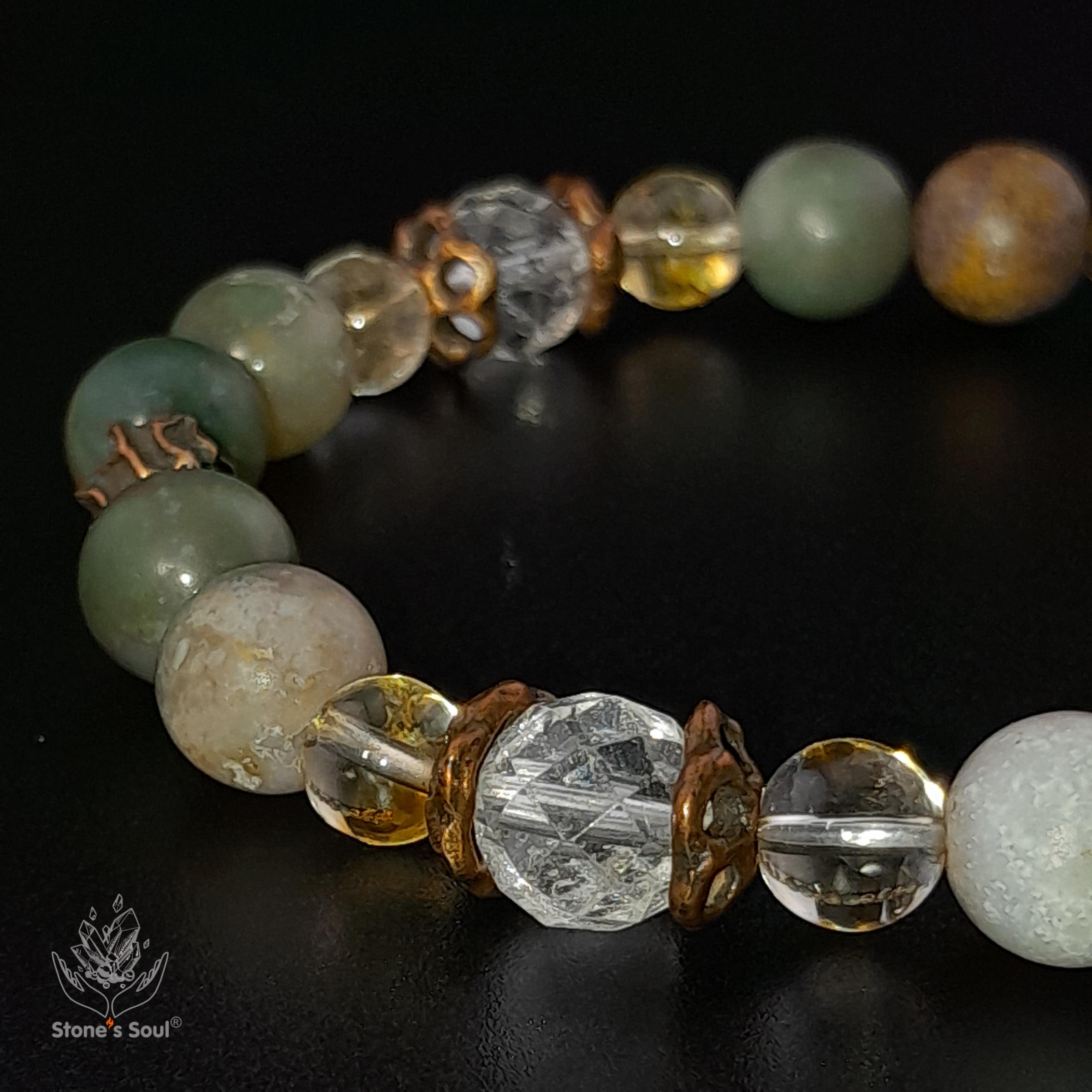 💎 Агат индийский, Цитрин, Горный хрусталь 📿 Бусины 8 мм ⚜ Фурнитура бронза Артикул 1000119
