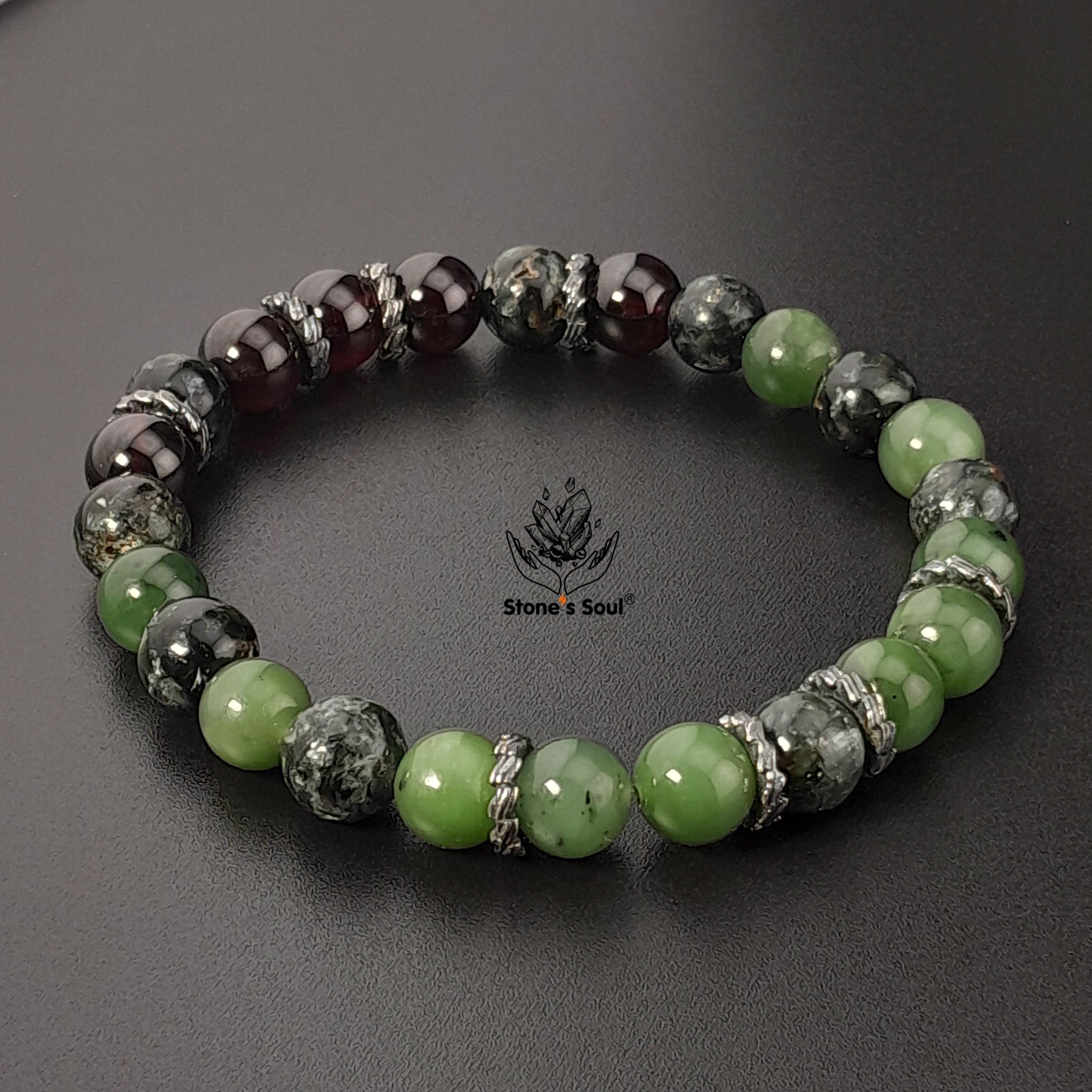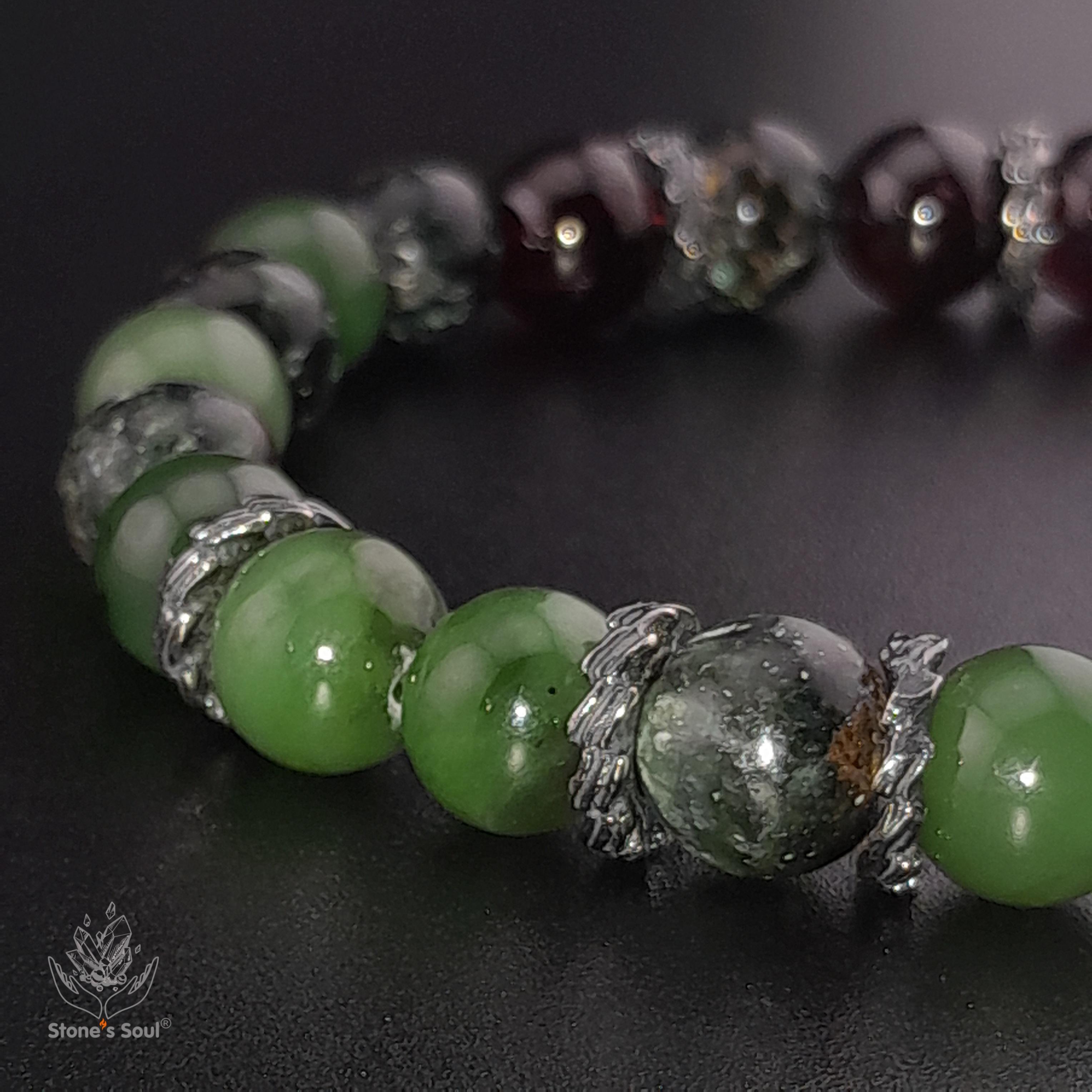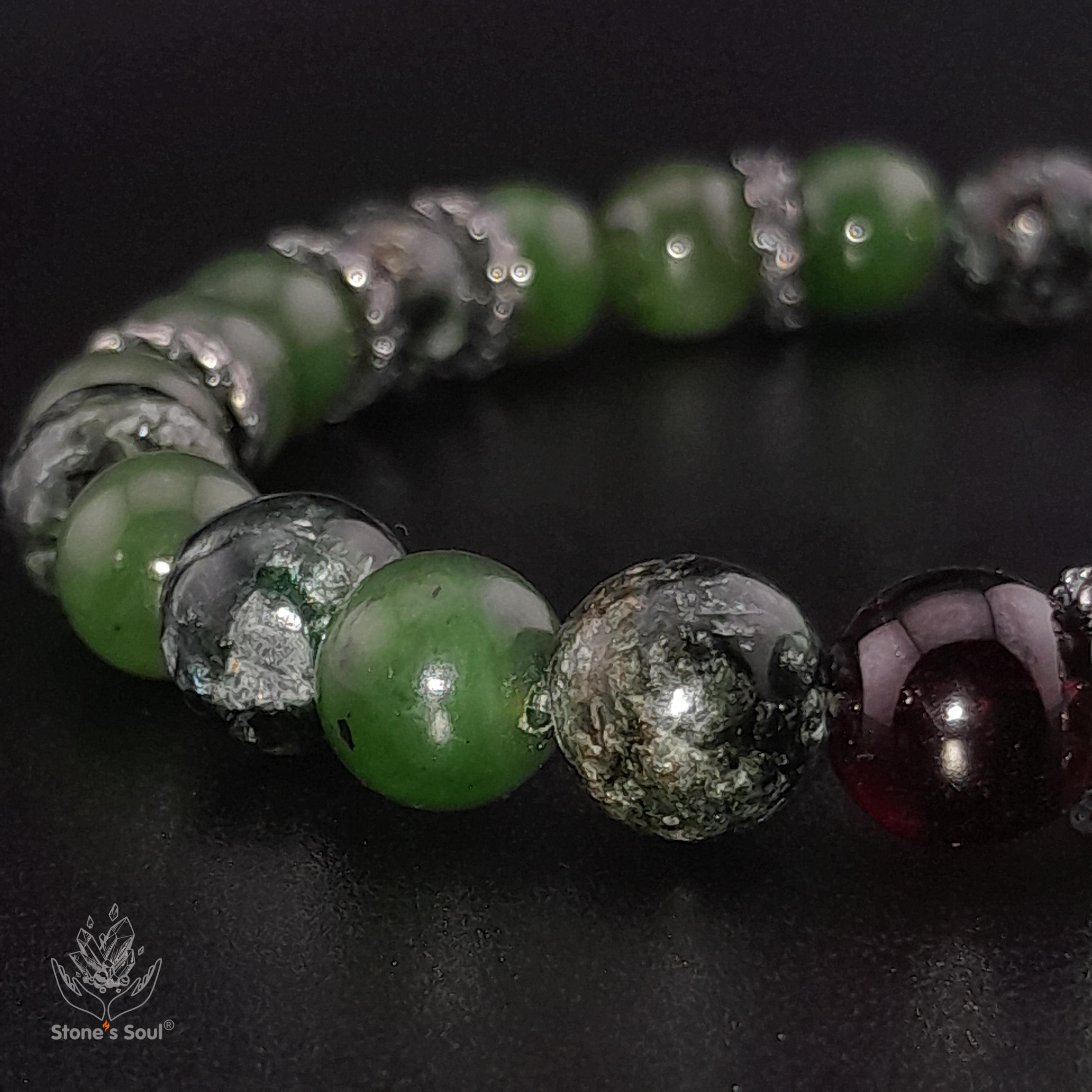 💎 Гранат альмандин, Нефрит байкальский, Серафинит 📿 Бусины 8 мм ⚜ Фурнитура латунь с серебрением Артикул 1000144