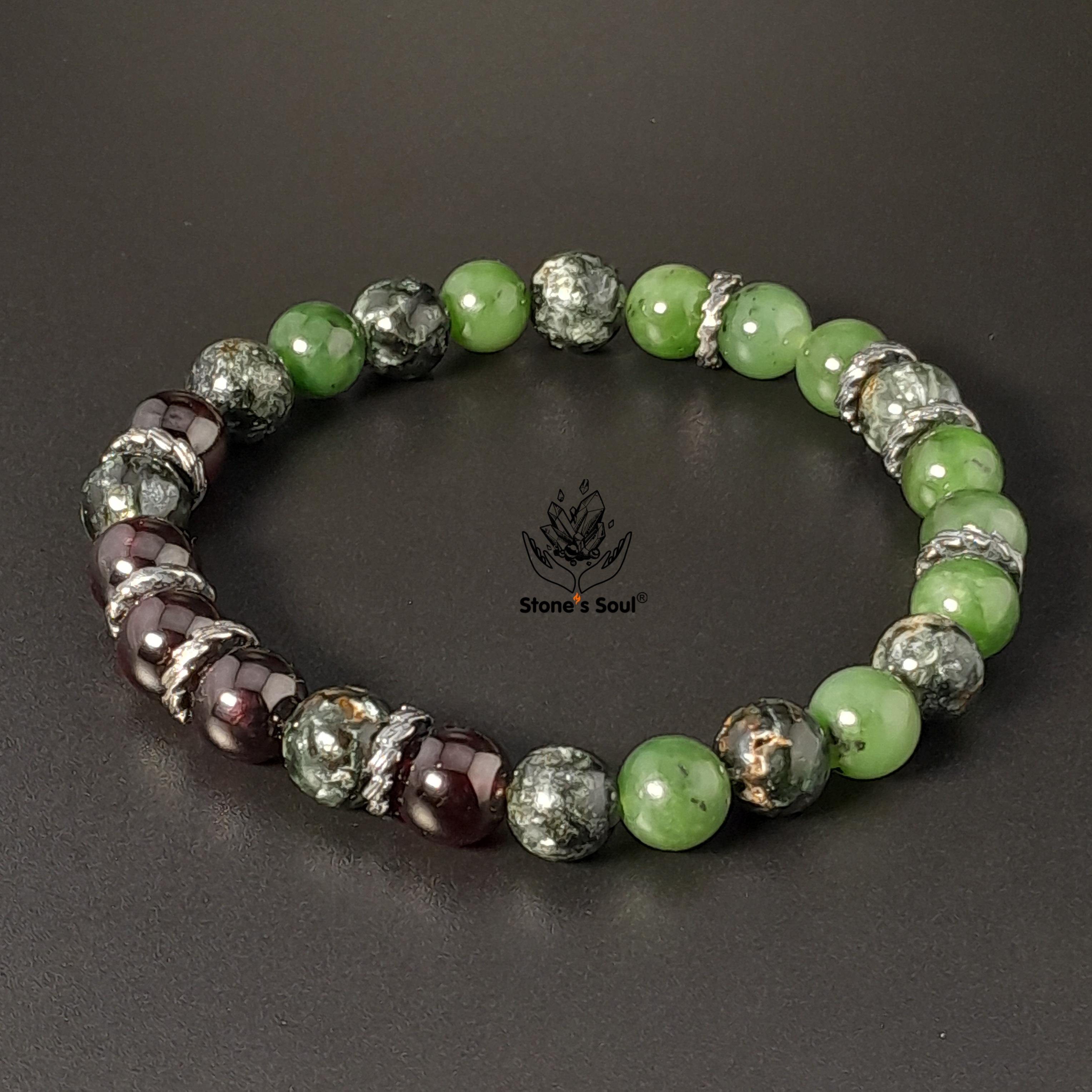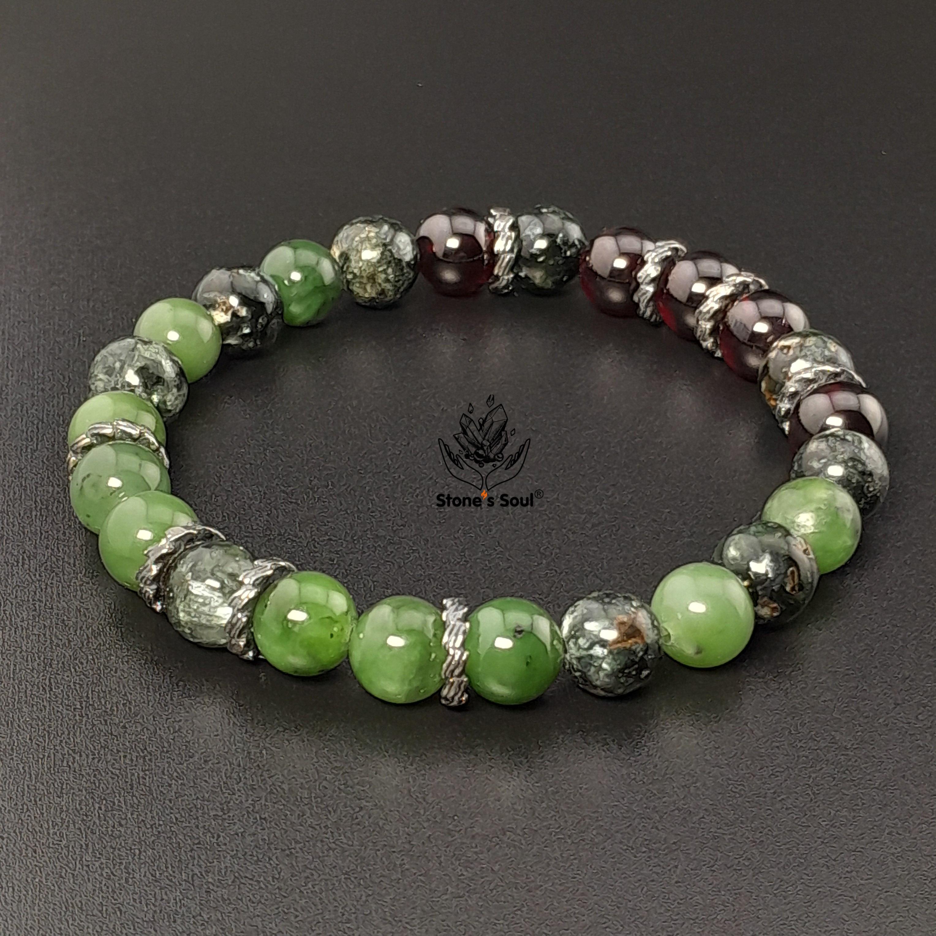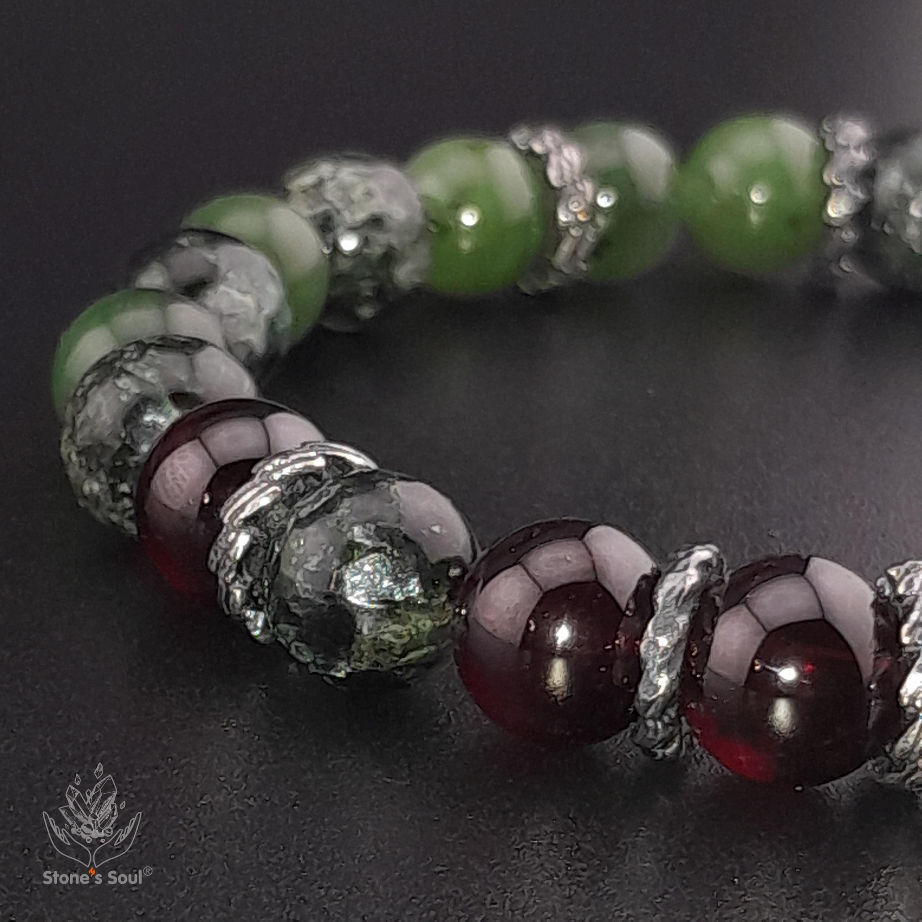 💎 Гранат альмандин, Нефрит байкальский, Серафинит 📿 Бусины 8 мм ⚜ Фурнитура латунь с серебрением Артикул 1000144