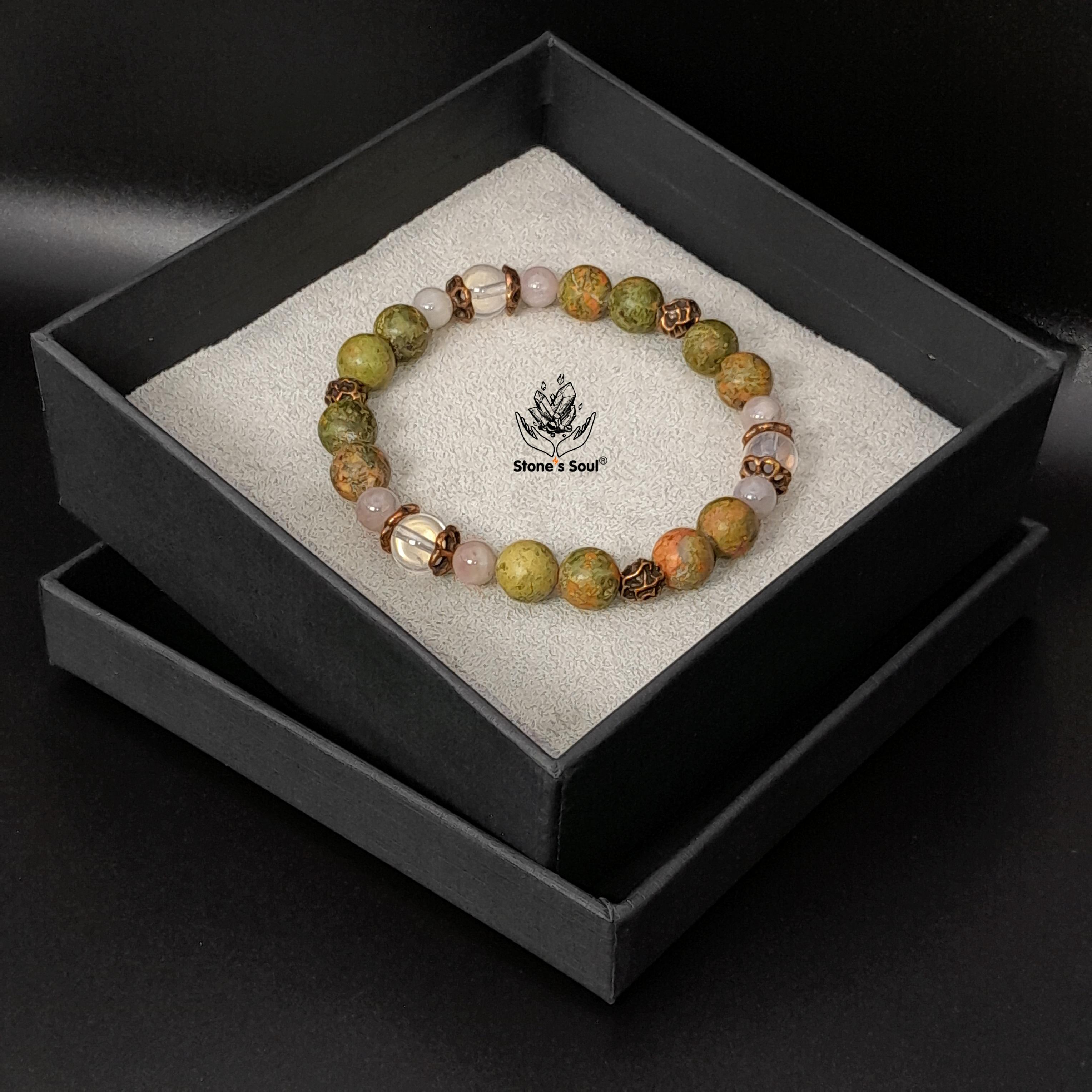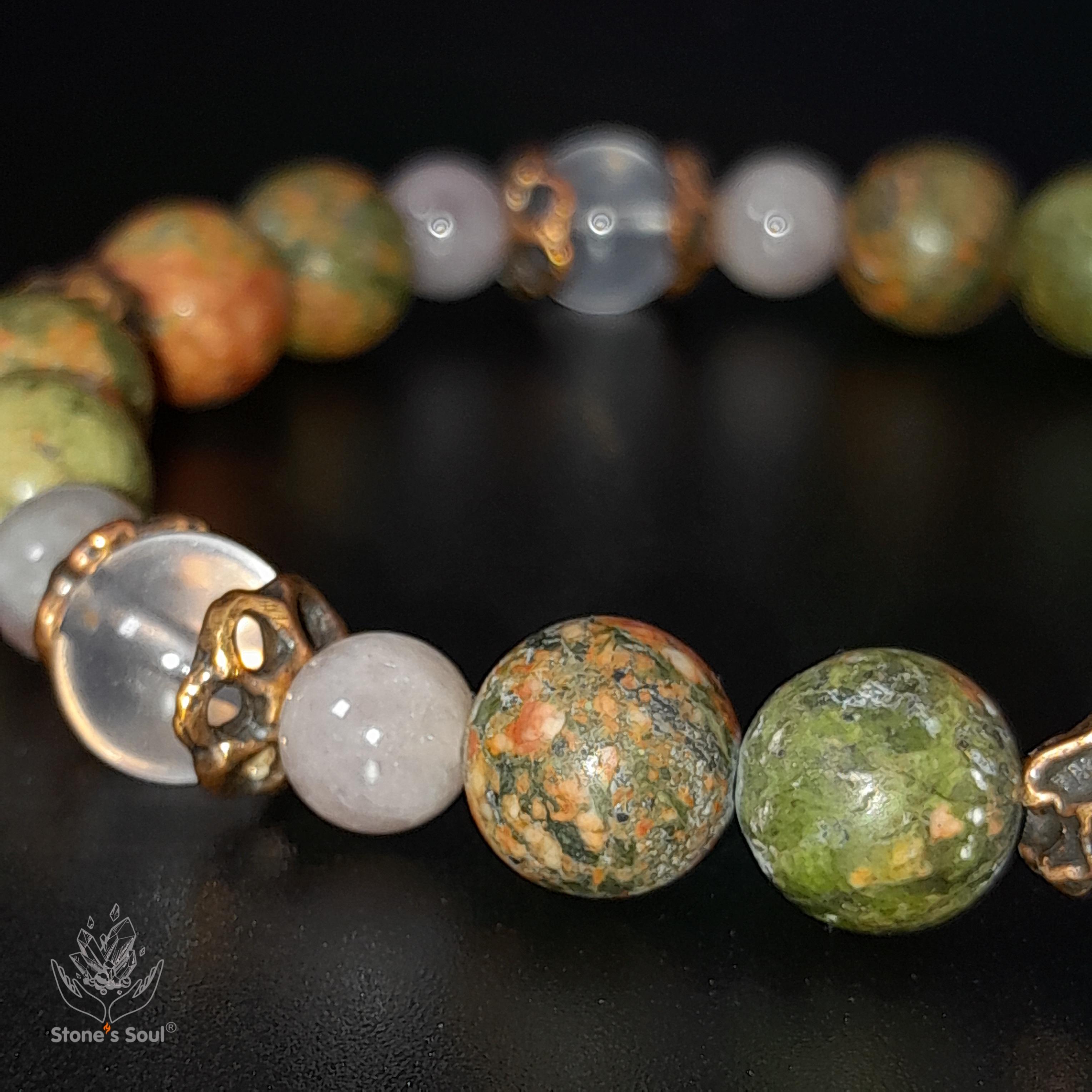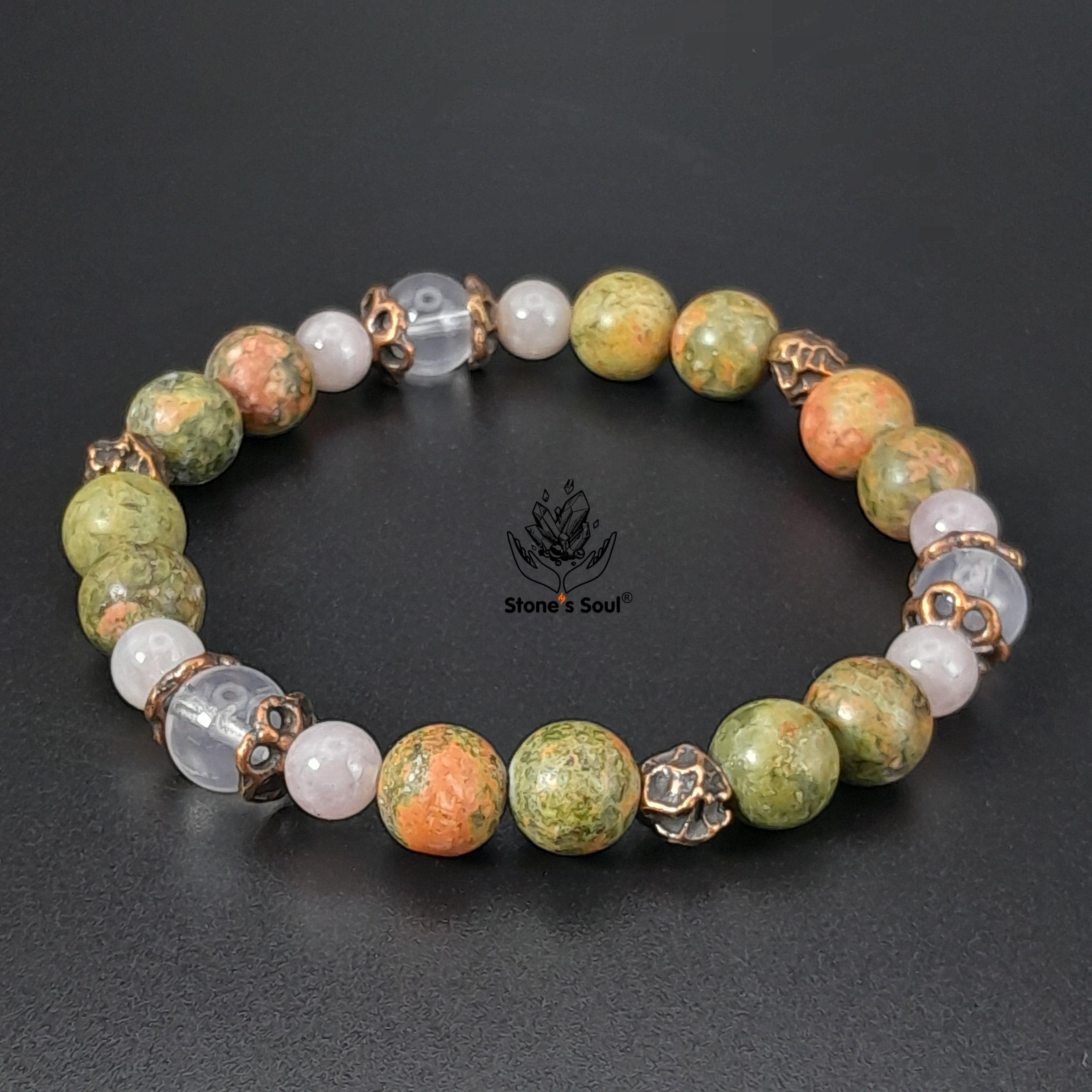 Браслет из натуральных камней: унакит, розо...