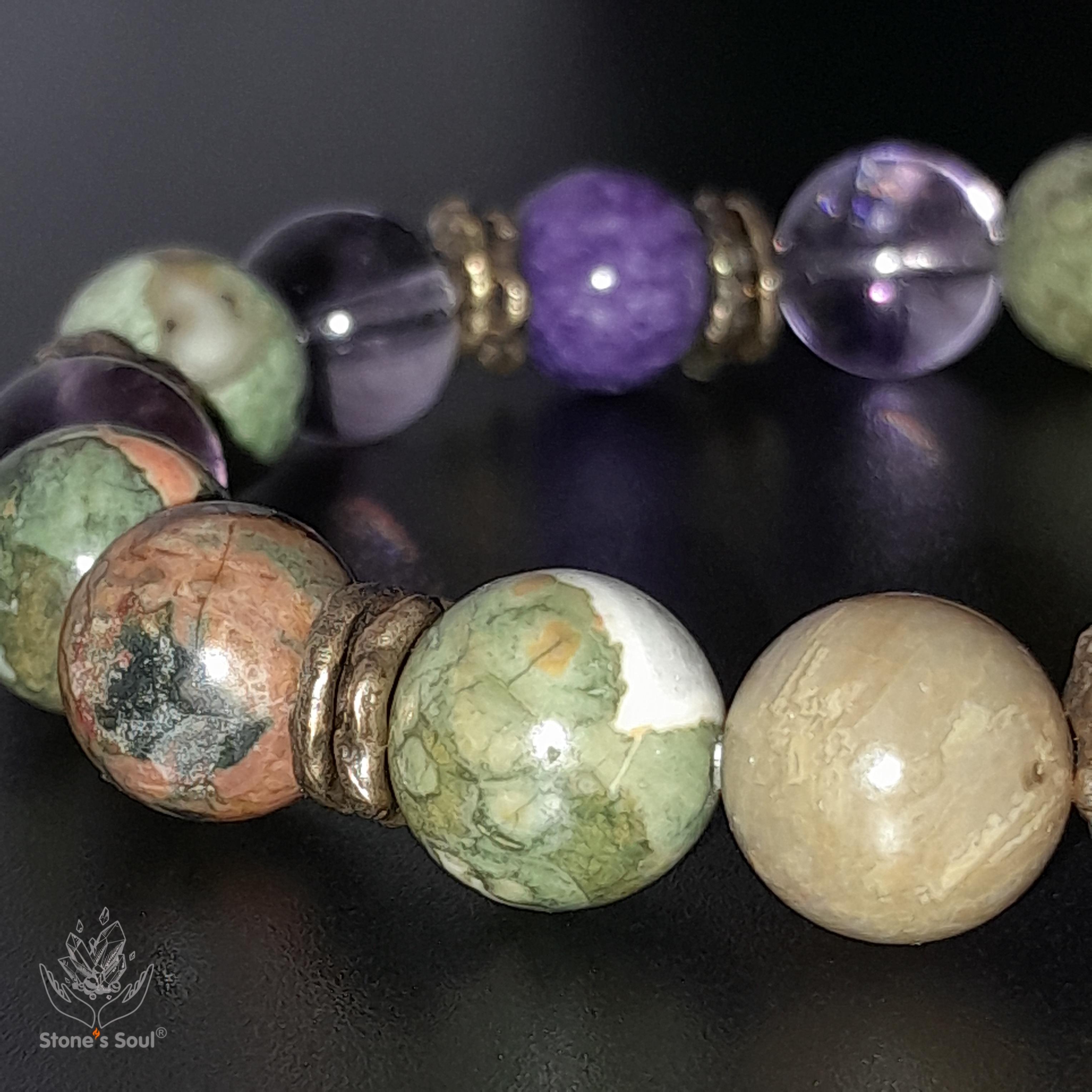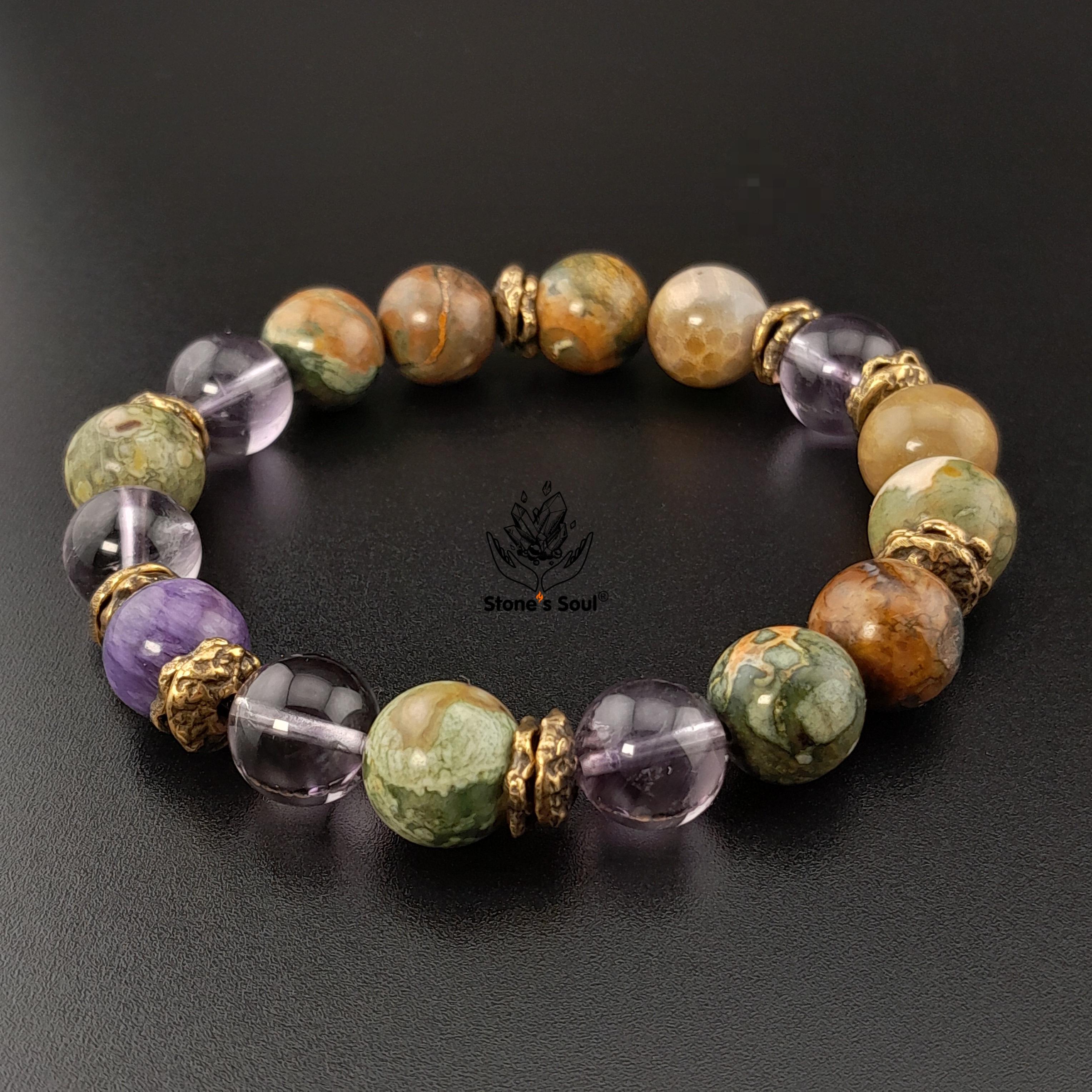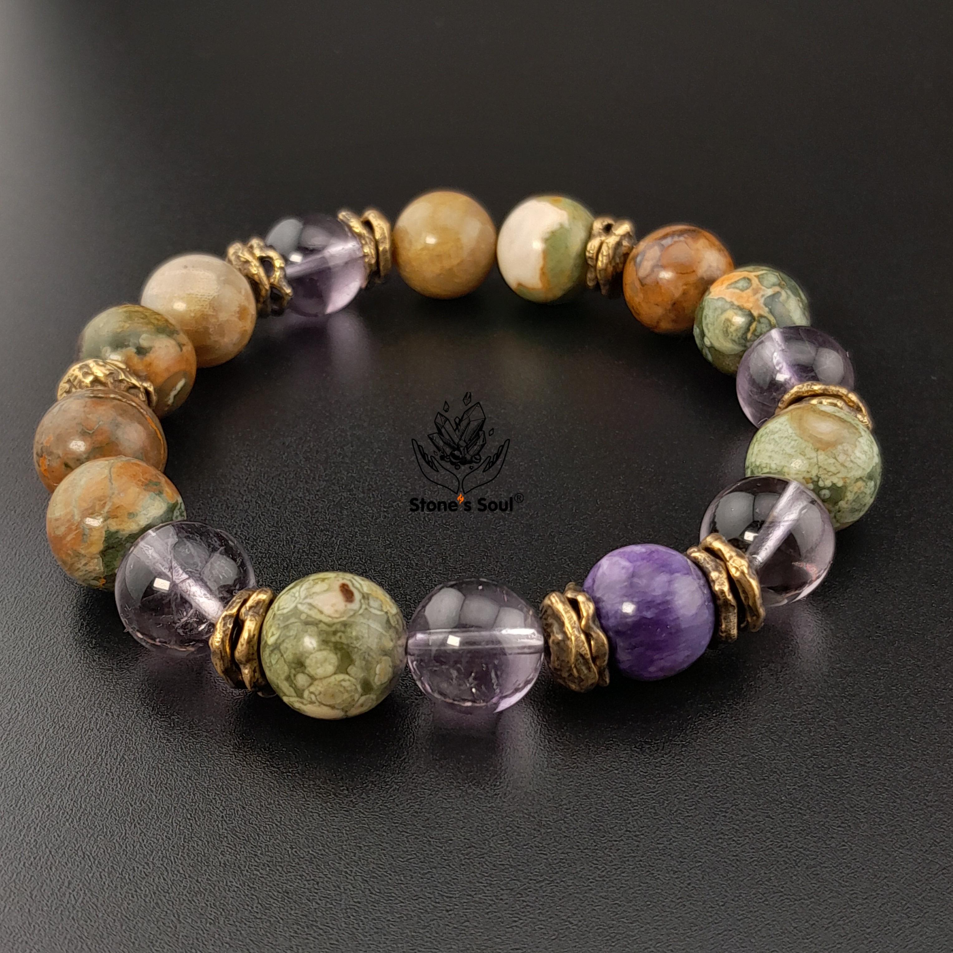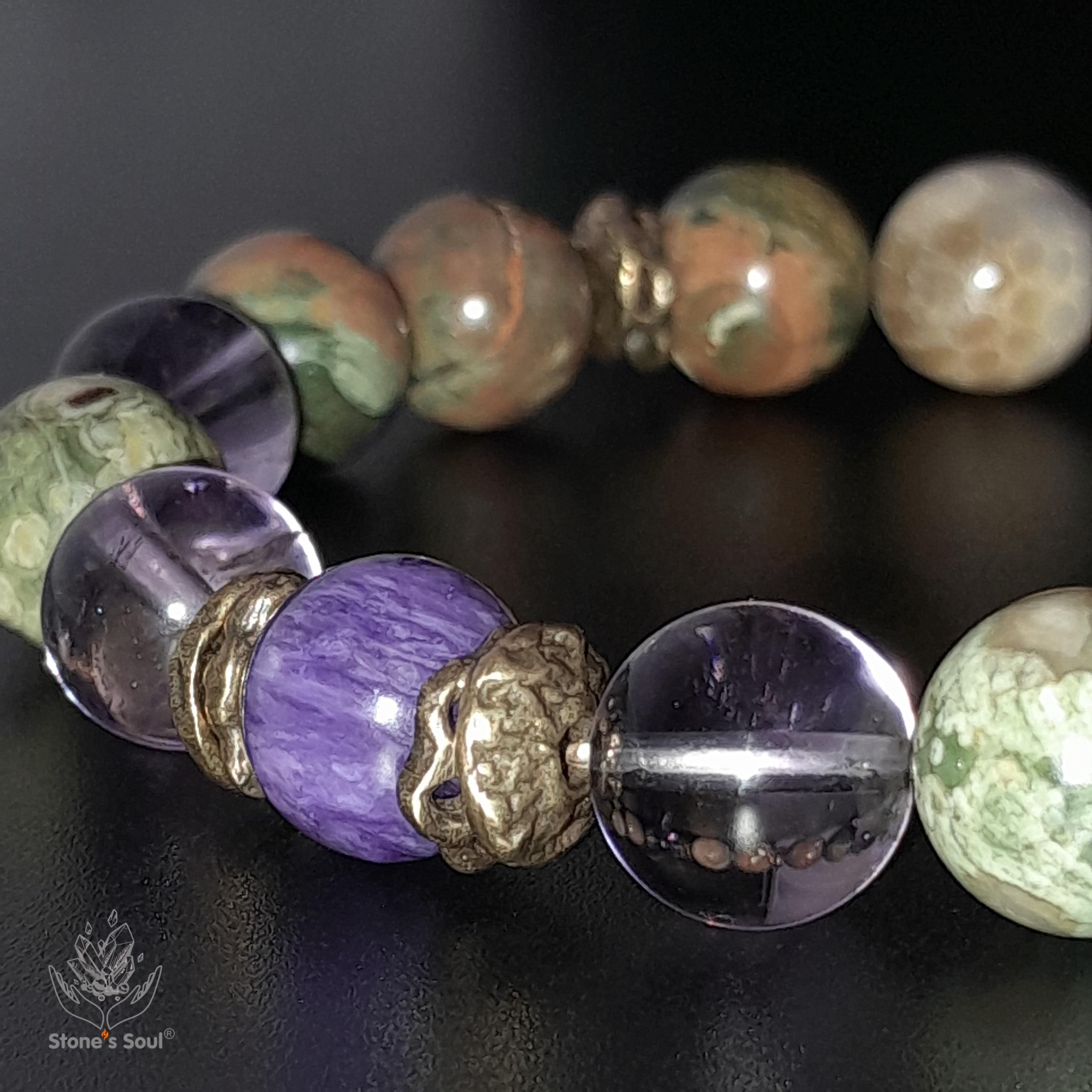 💎 Чароит экстра, Риолит, Коралл окаменелый, Аметист 📿 Бусины 10мм ⚜ Фурнитура латунь Артикул 1000151