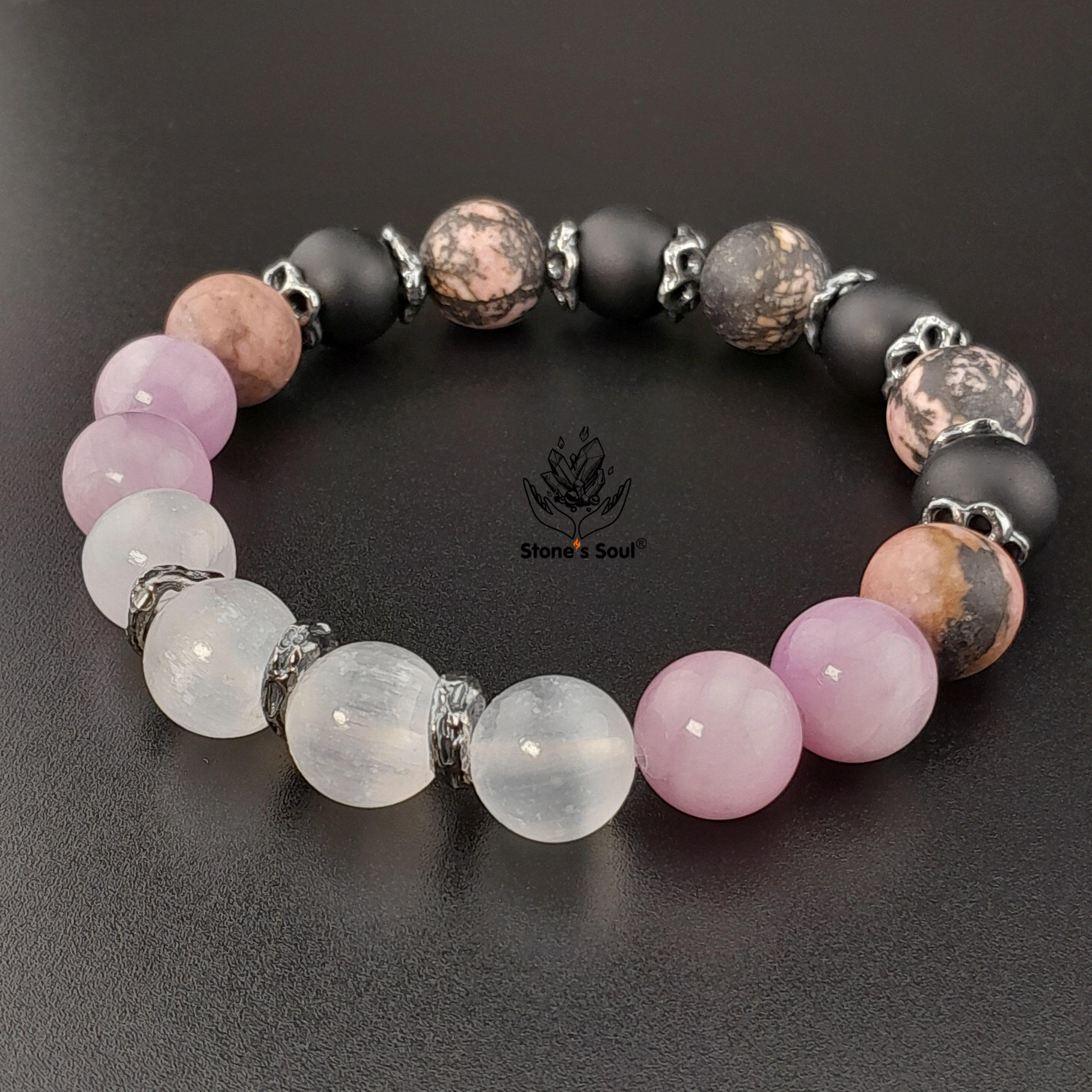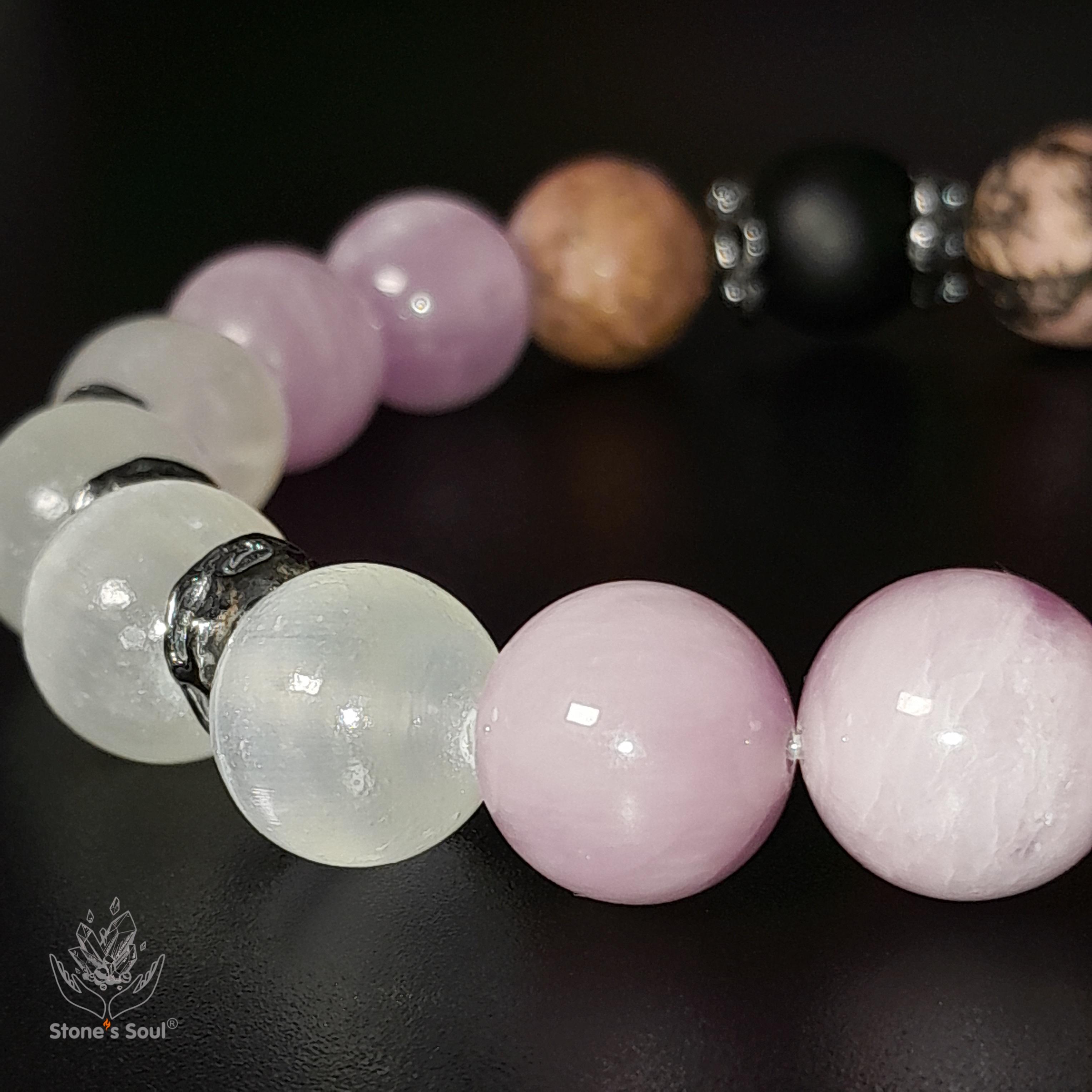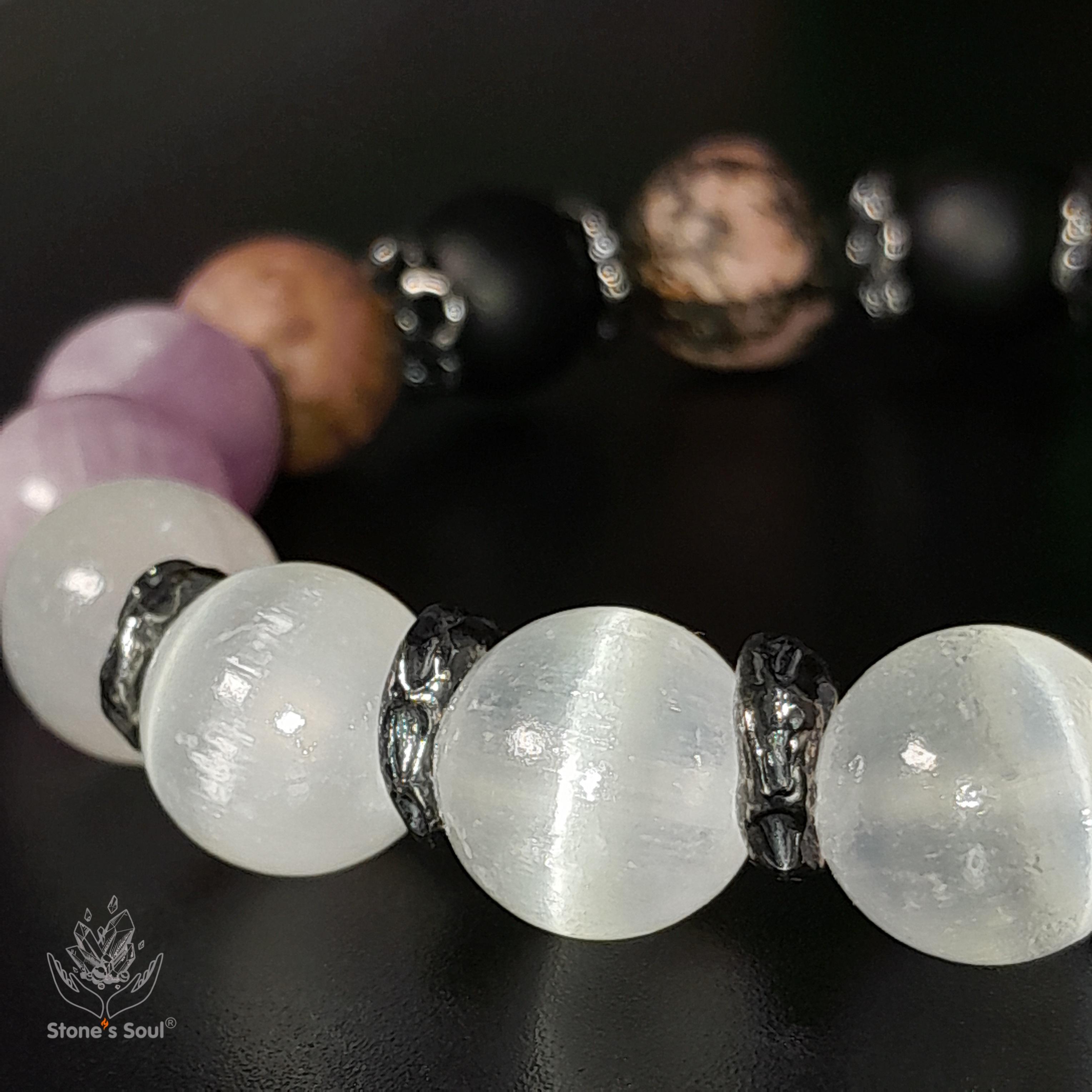 💎 Селенит, Кунцит, Родонит, Агат чёрный 📿 Бусины 10мм ⚜ Фурнитура латунь с серебрением Артикул 1000152