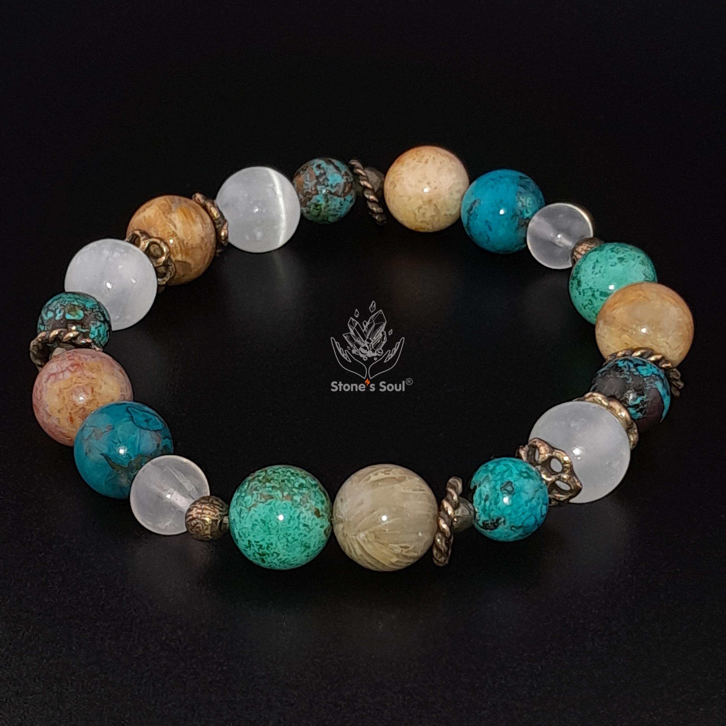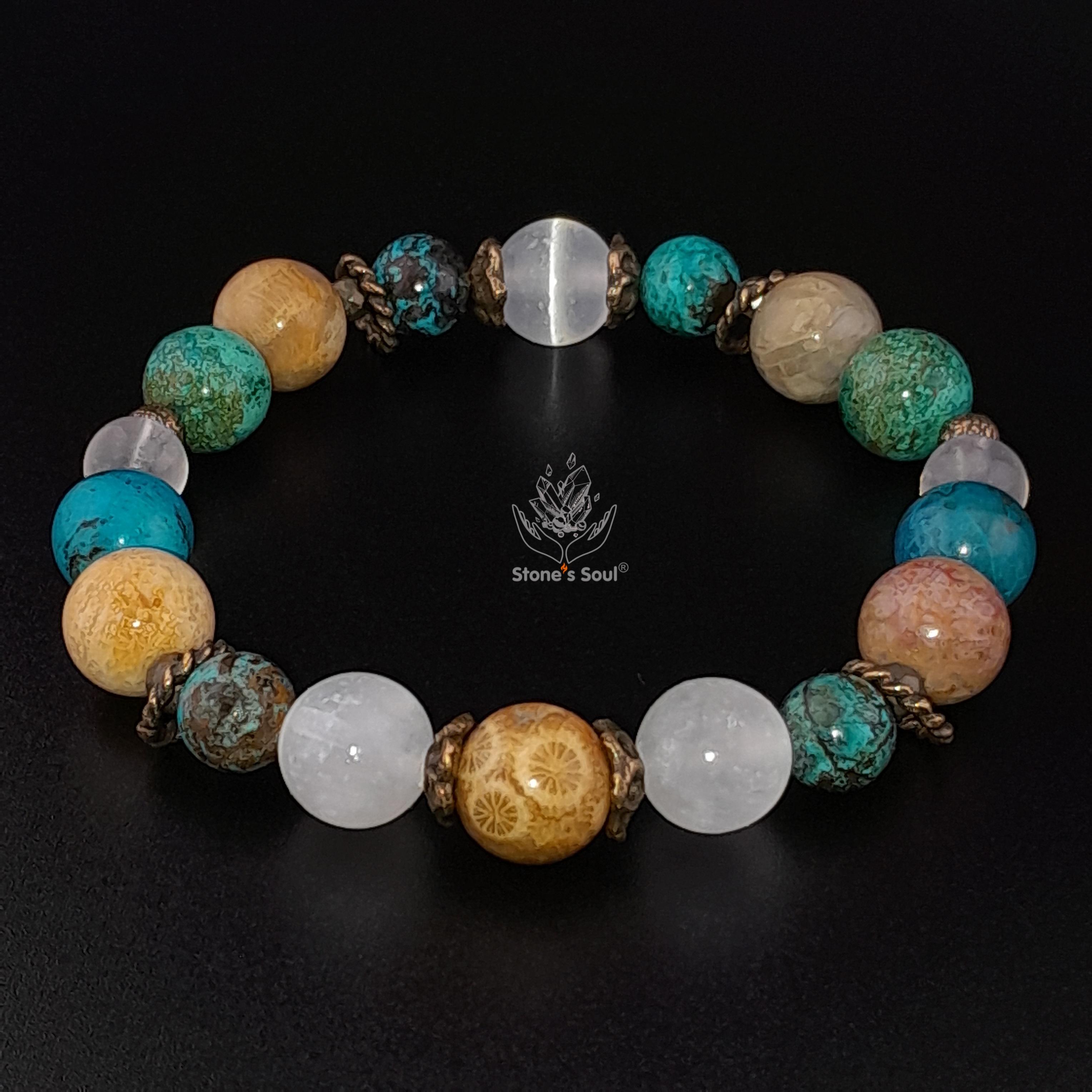 💎 Окаменелый коралл, Хризоколла, Розовый кварц, Селенит, Пирит 📿 Бусины 4-10 мм ⚜ Фурнитура латунь Артикул 1000155