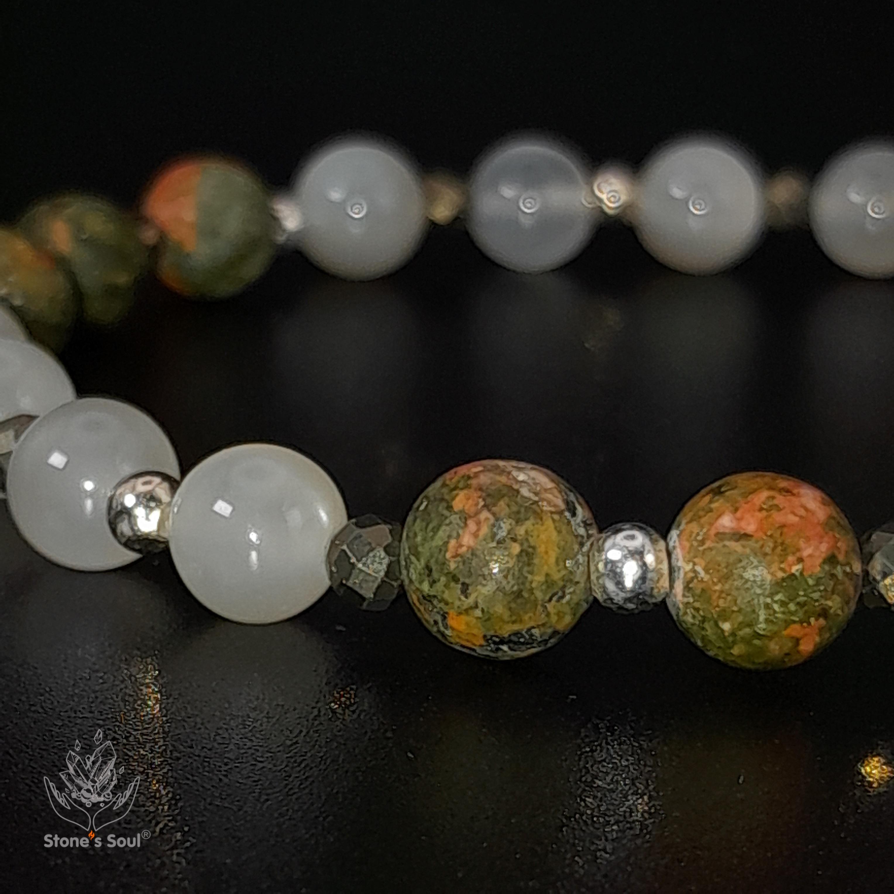 💎 Унакит, Беломорит, Пирит 📿 Бусины 6/3мм ⚜ Фурнитура серебро Артикул 1000156
