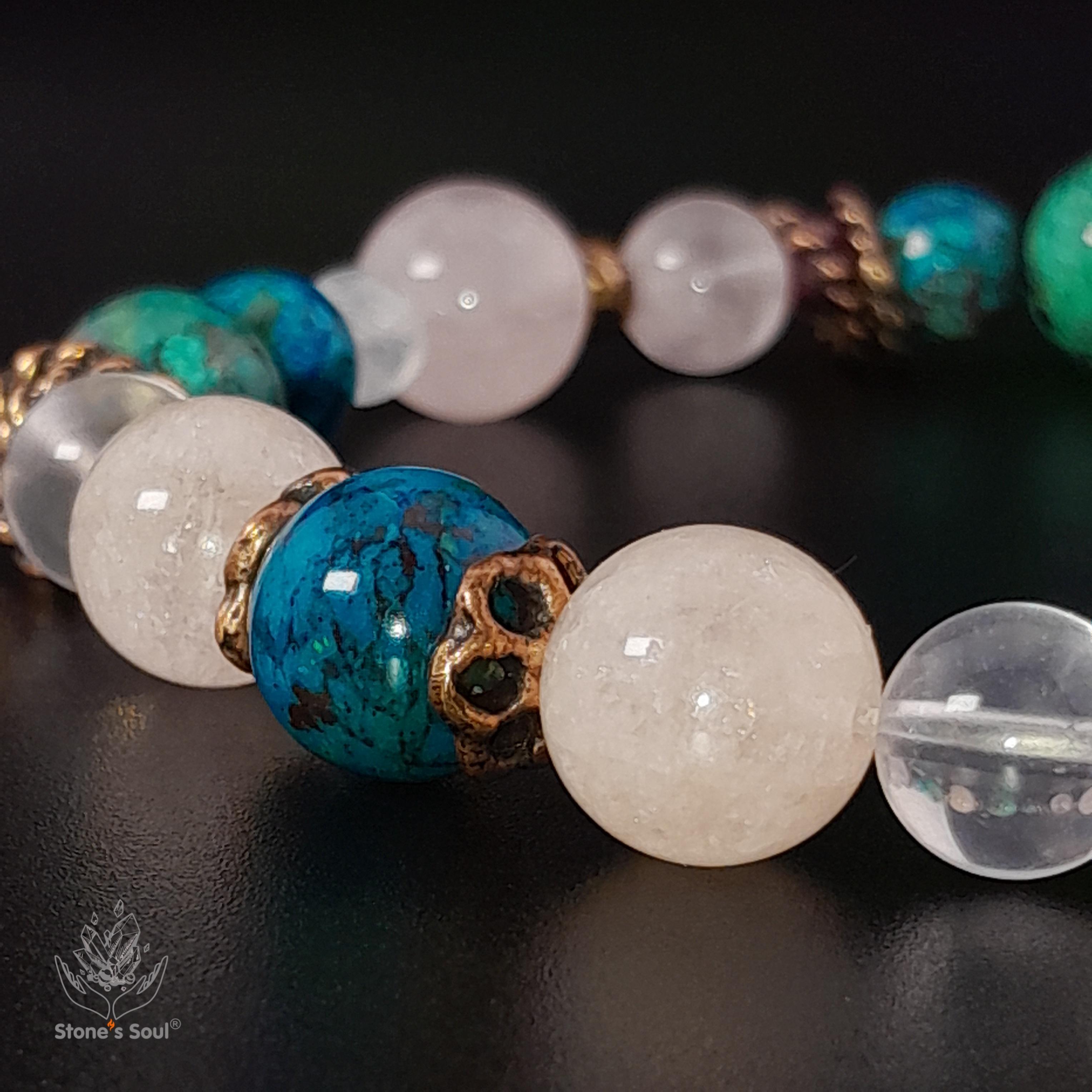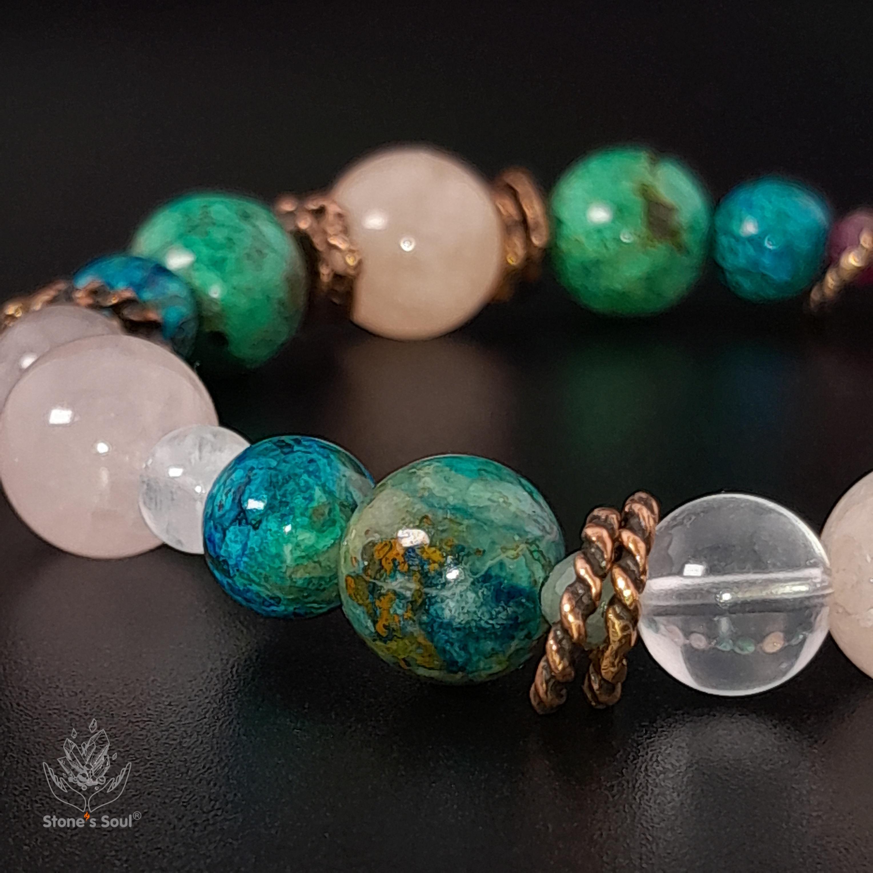 💎 Хризоколла, Морганит (розовый берилл), Розовый кварц, Лунный камень, Рубин (корунд), Изумруд (берилл) 📿 Бусины 4-10мм ⚜ Фурнитура латунь Артикул 1000161