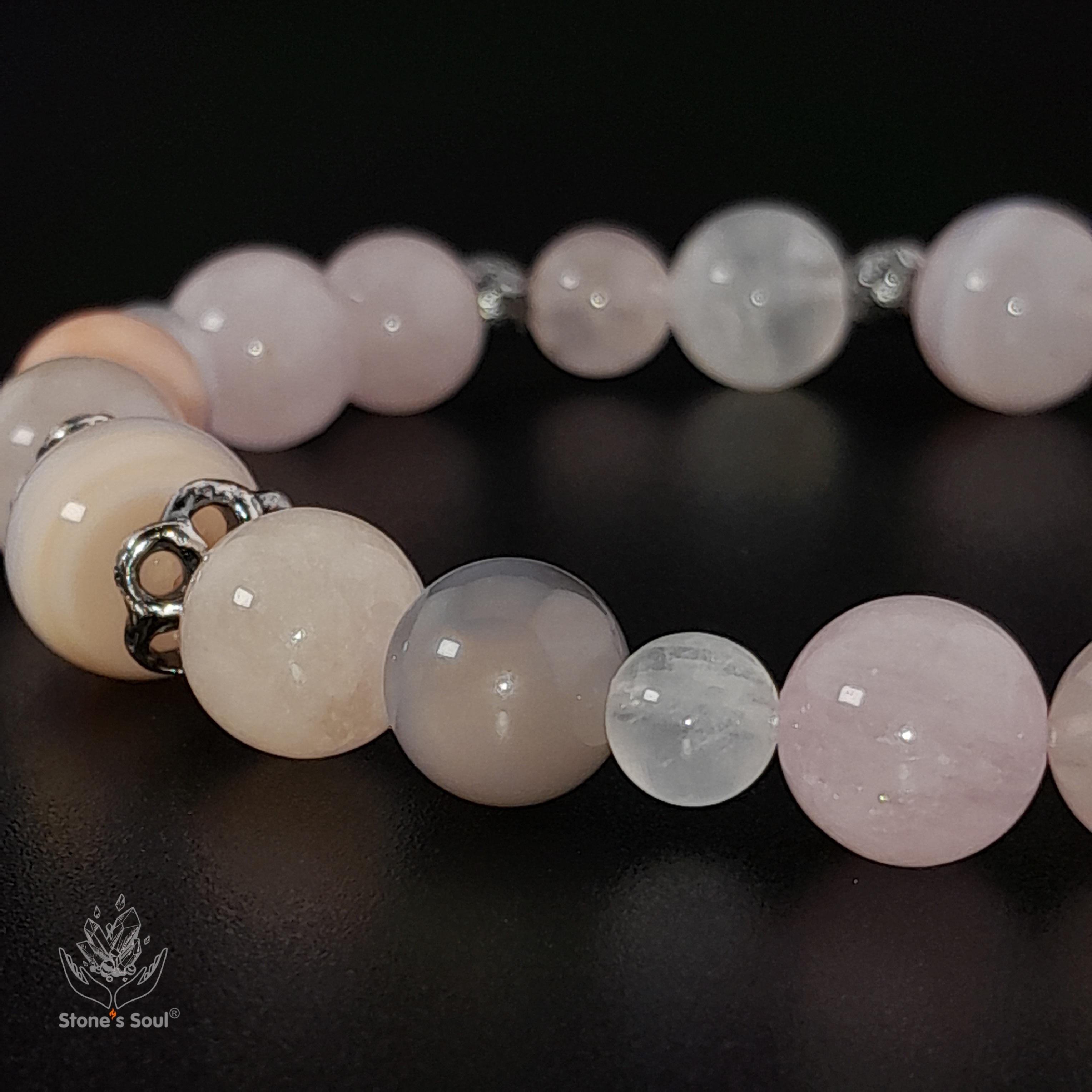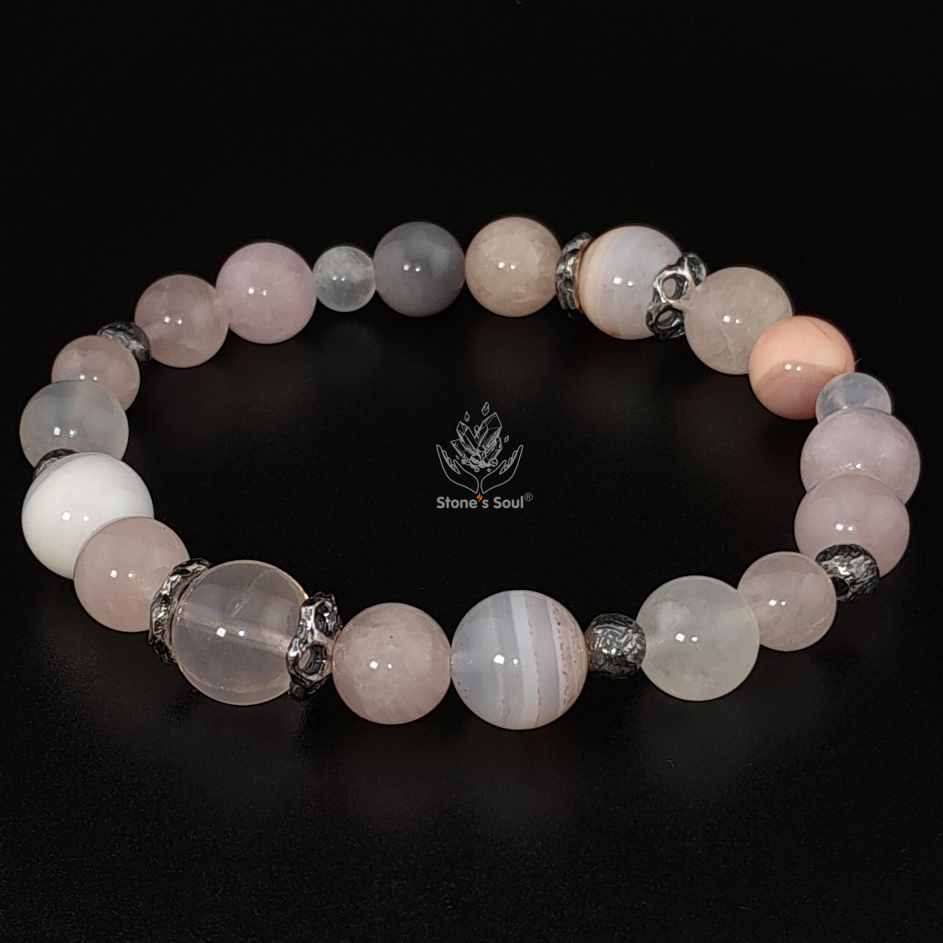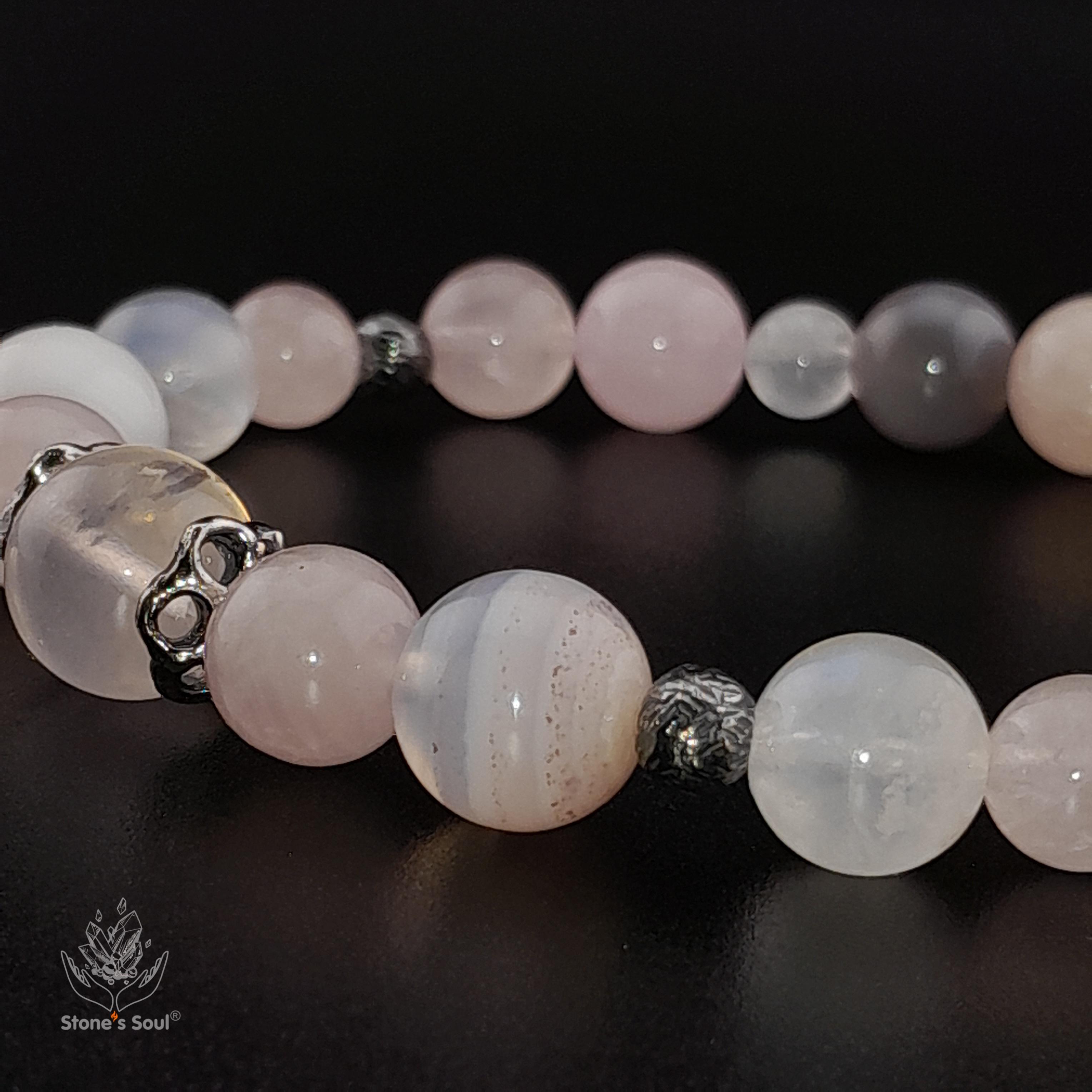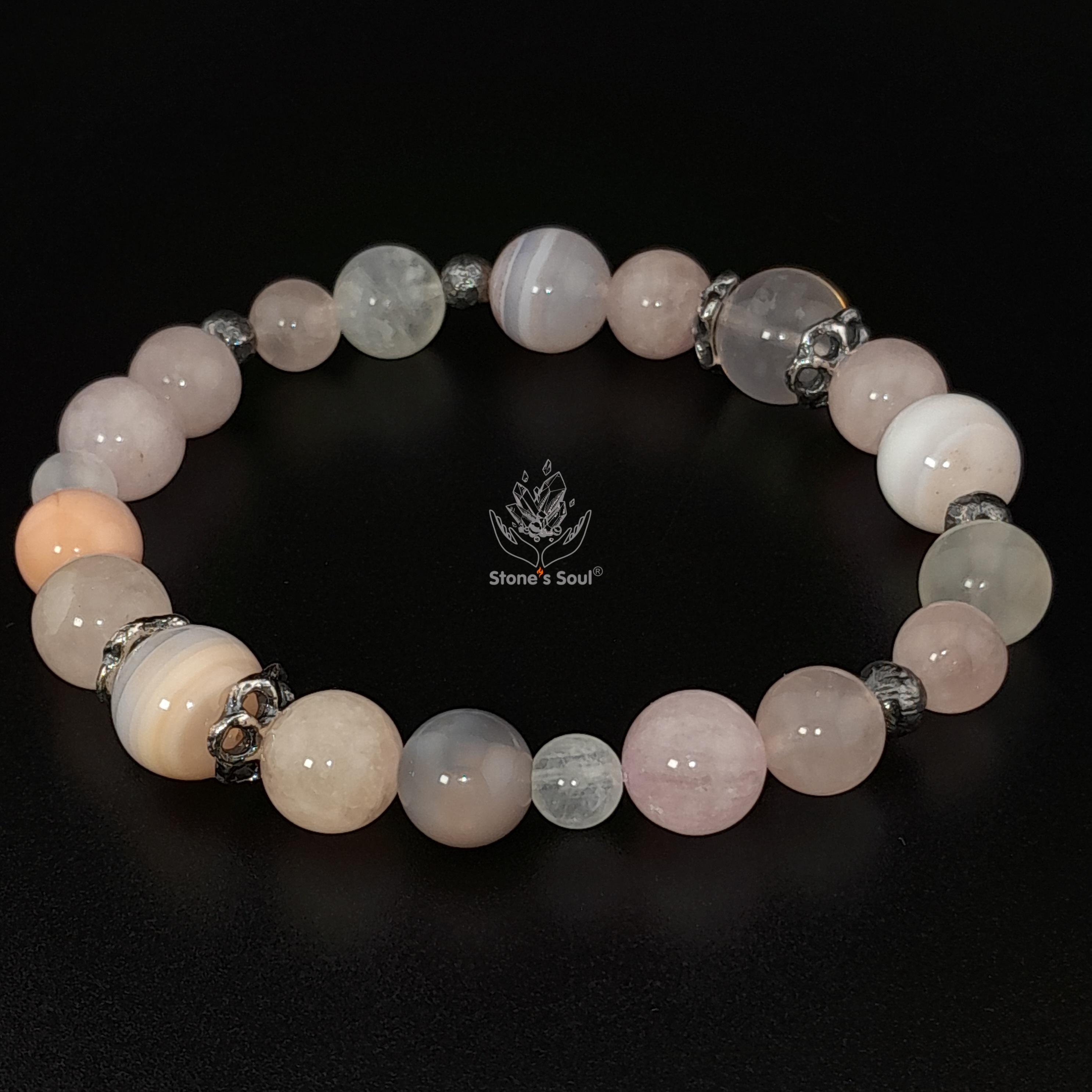 💎 Агат Ботсвана, Морганит (розовый берилл), Розовый кварц, Лунный камень 📿 Бусины 6-10мм ⚜ Фурнитура латунь с серебрением Артикул 1000162