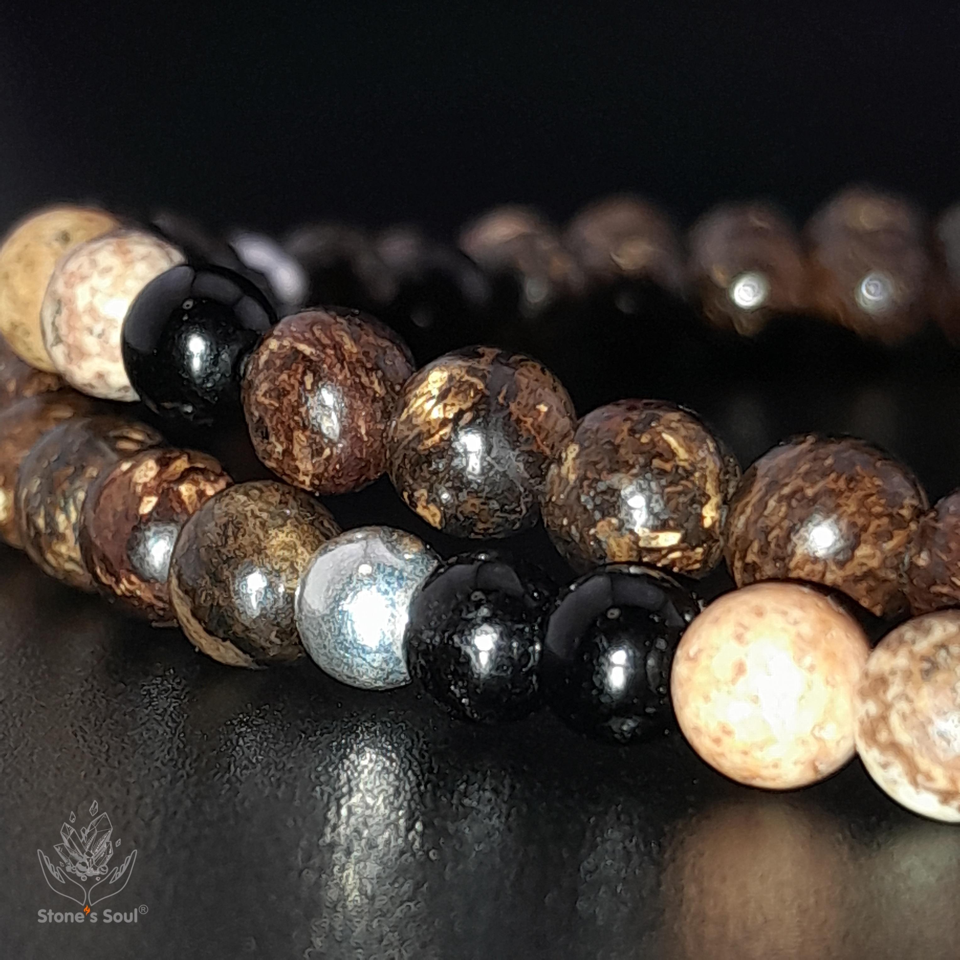 Браслет из натуральных камней: бронзит, черн...