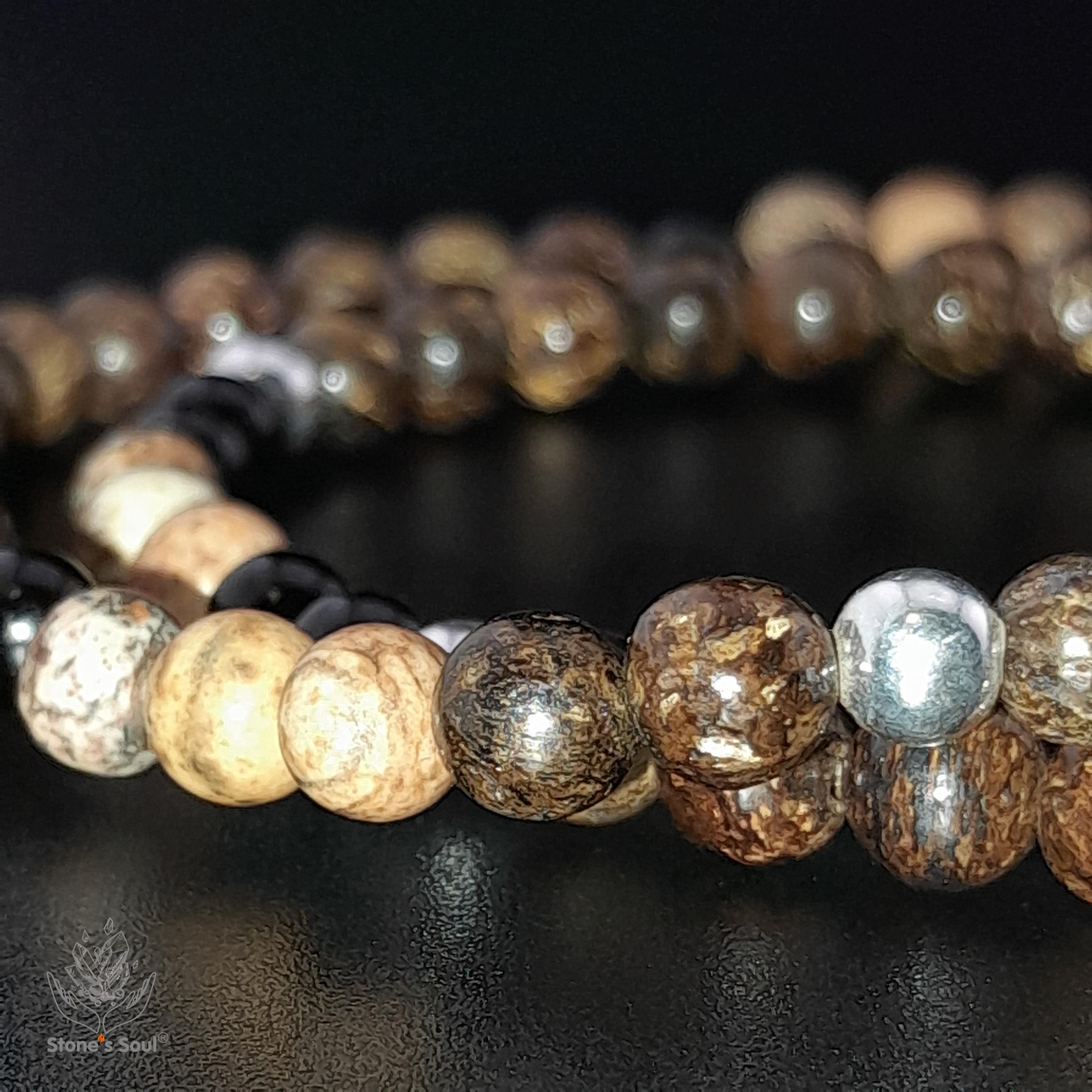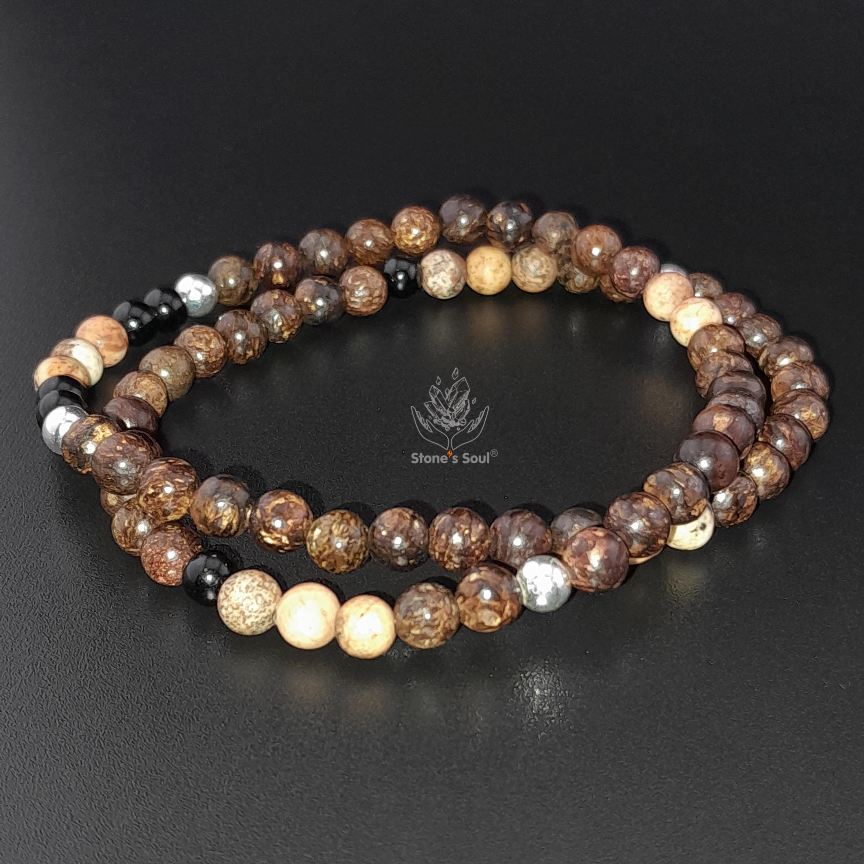 📍 Два оборота 💎 Бронзит, Чёрный турмалин (шерл), Песочная яшма 📿 Бусины 4мм ⚜ Фурнитура серебро Арт. 1000169