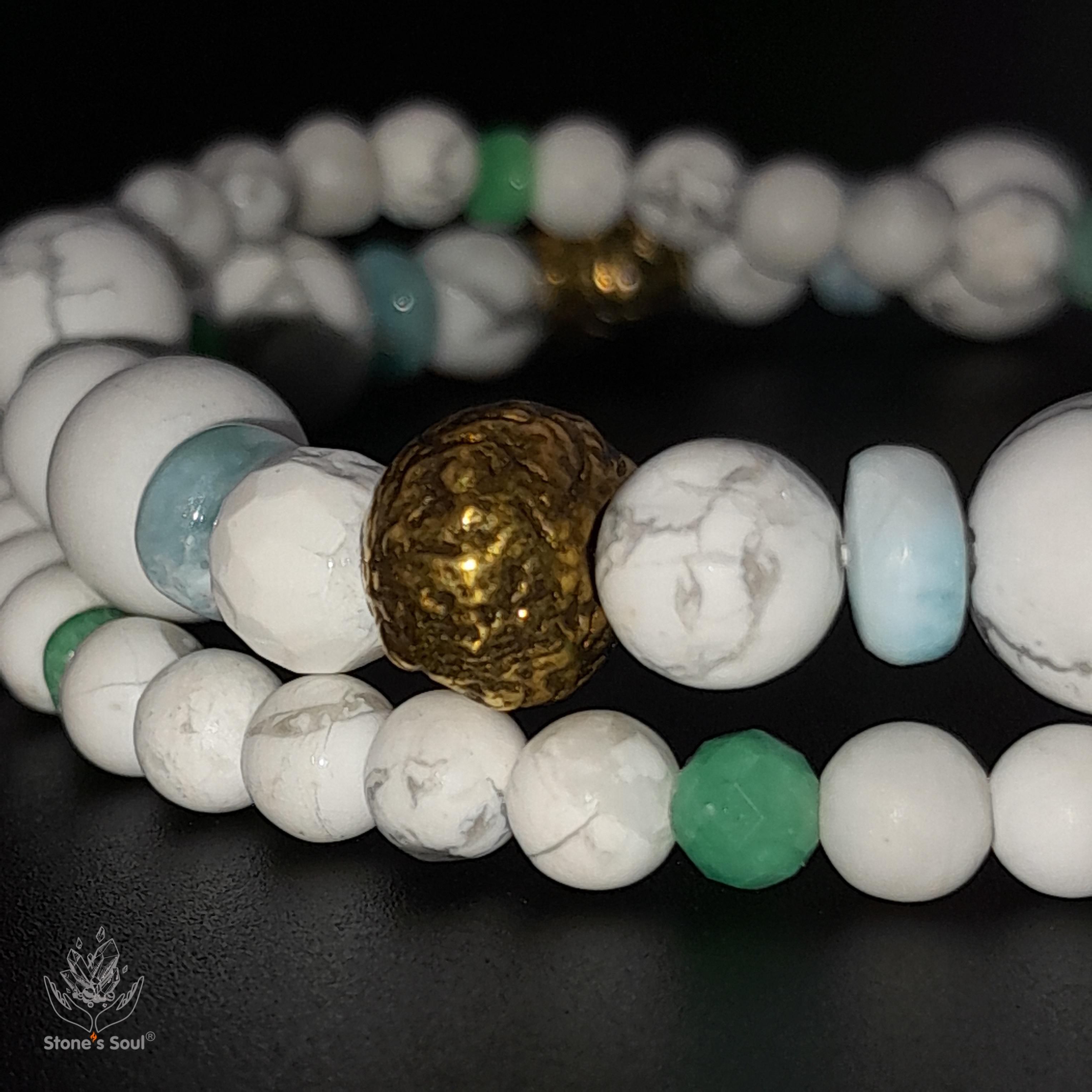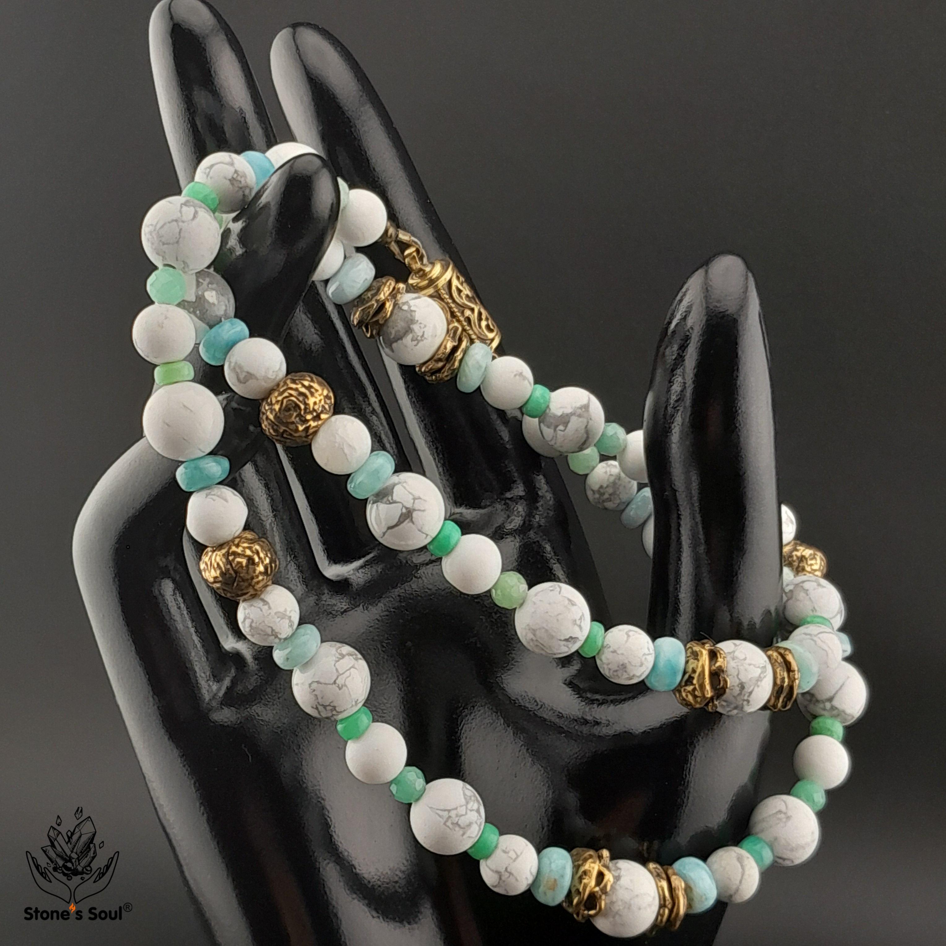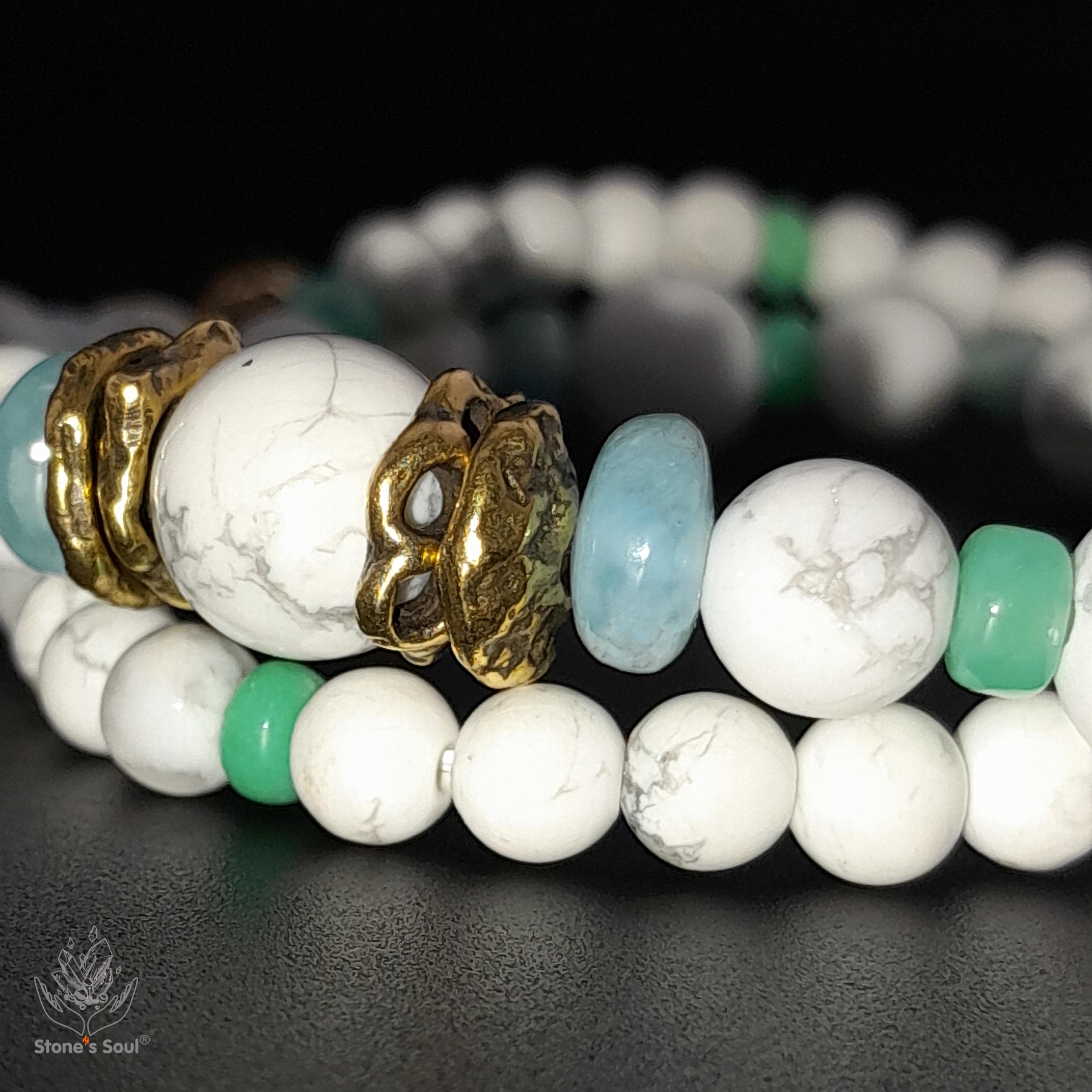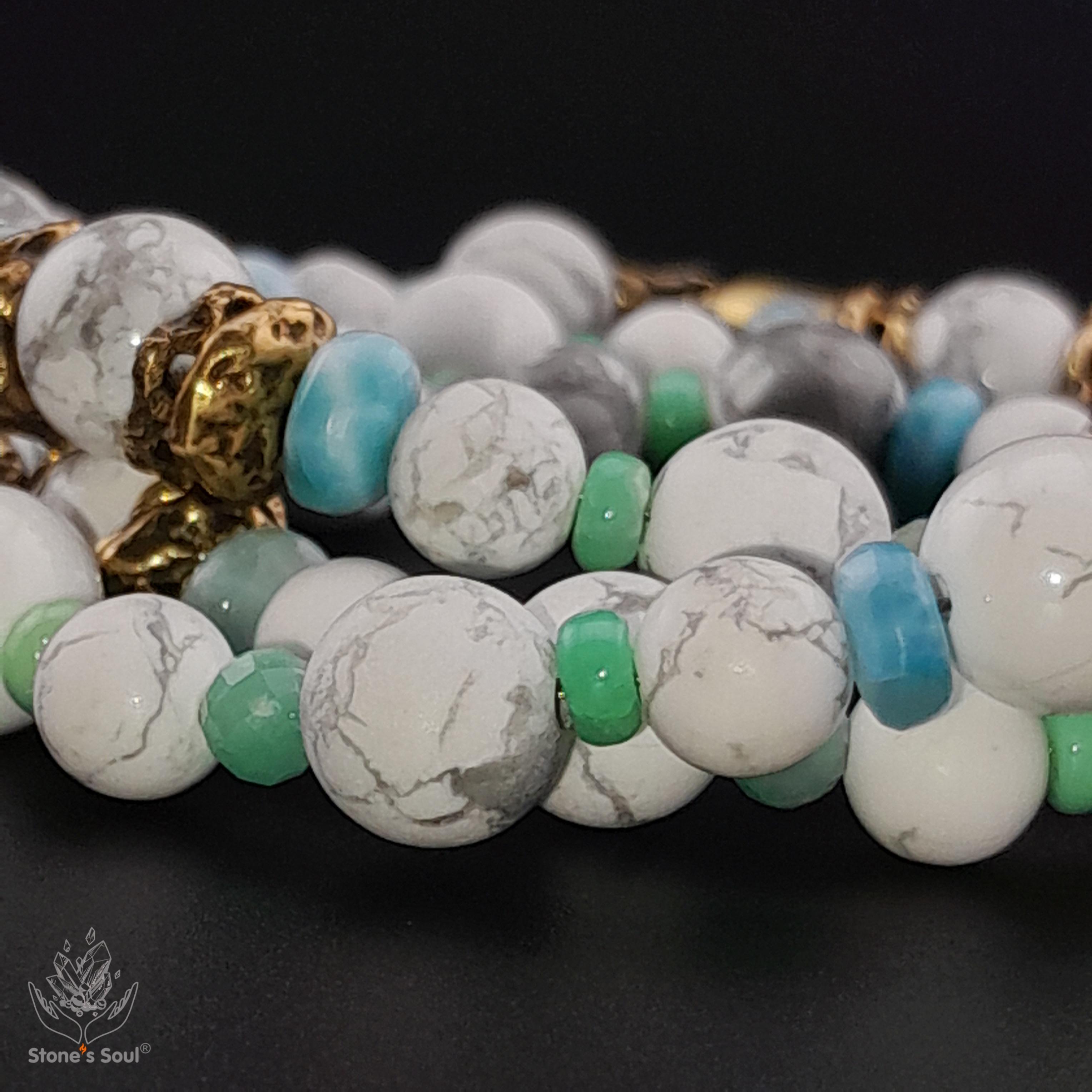 💎 Говлит, Хризопраз, Зелёный берилл (изумруд), Ларимар 📿 Бусины 4-8мм ⚜ Фурнитура латунь 🔒 Магнитный замок латунь 📍 Арт. 1000189