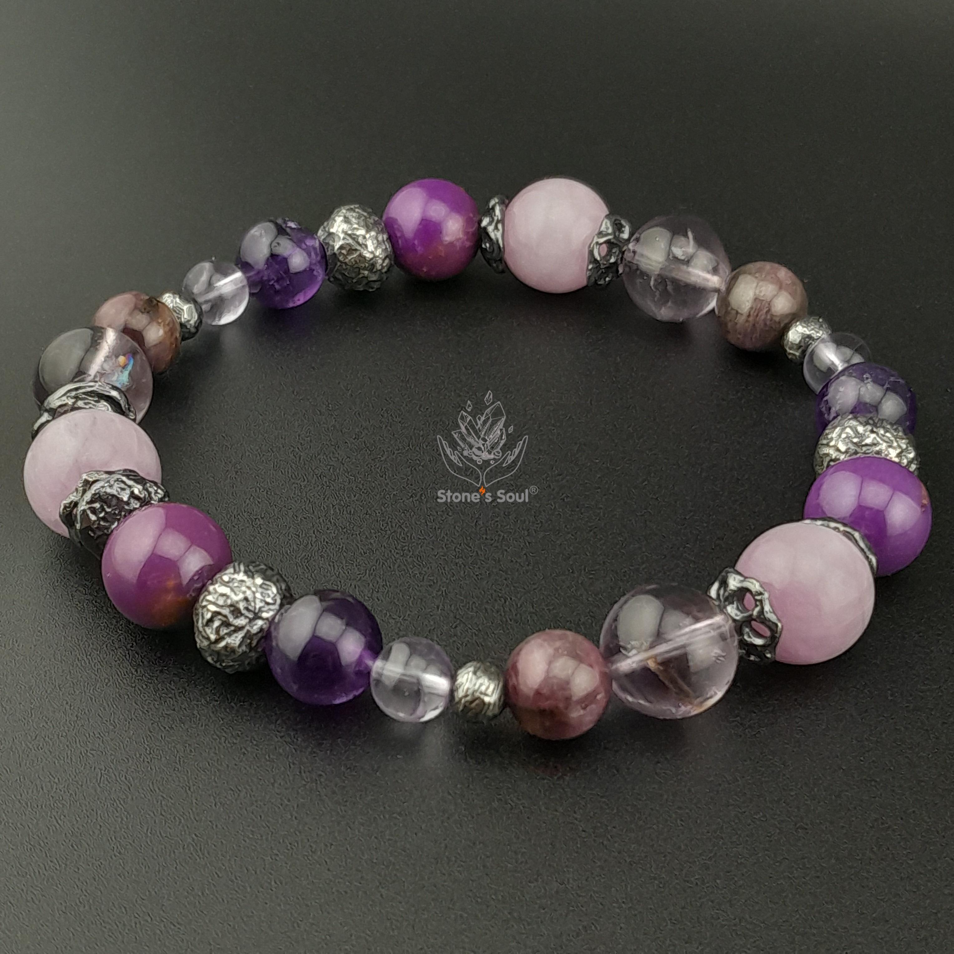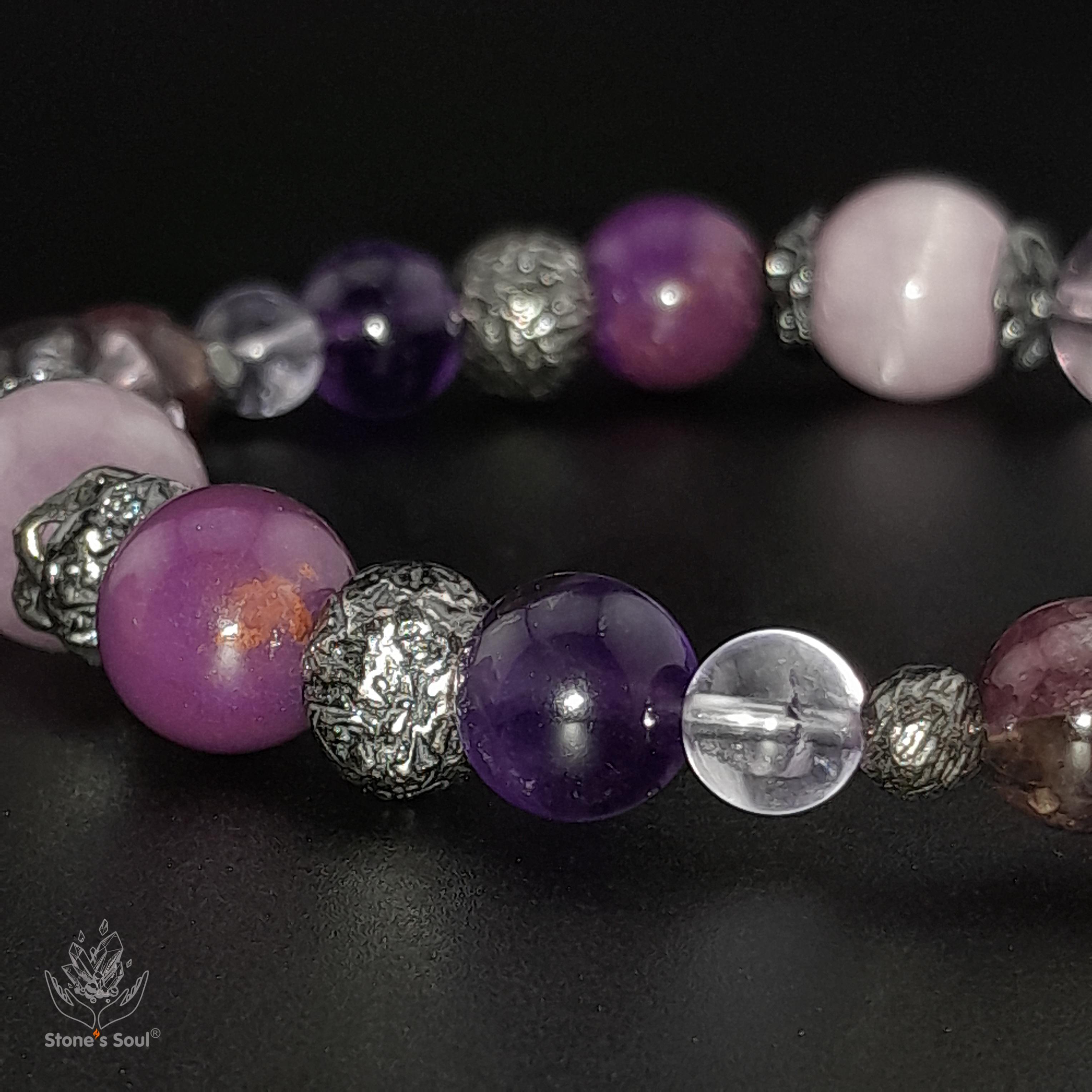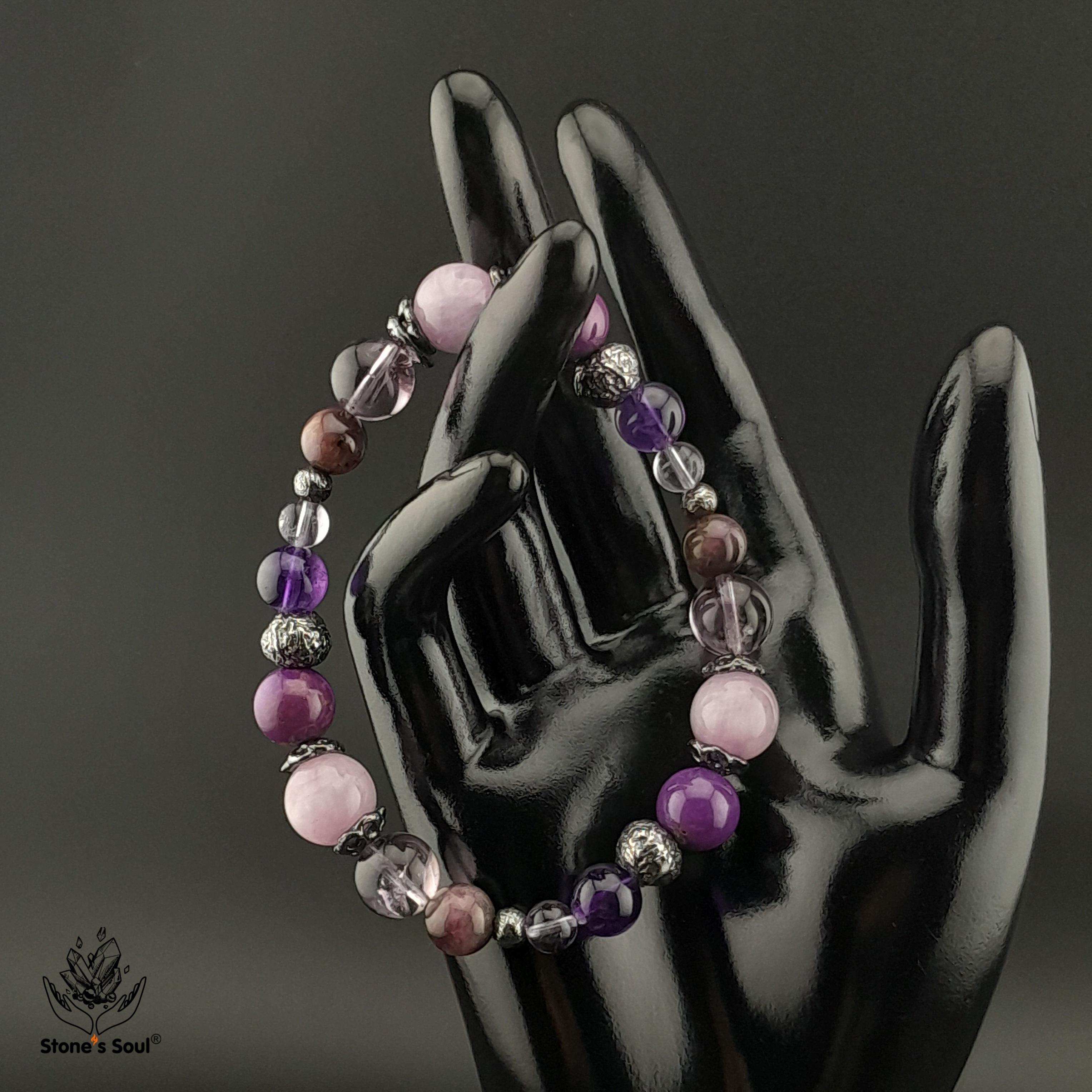 Браслет из натуральных камней: Кунцит, Амети...