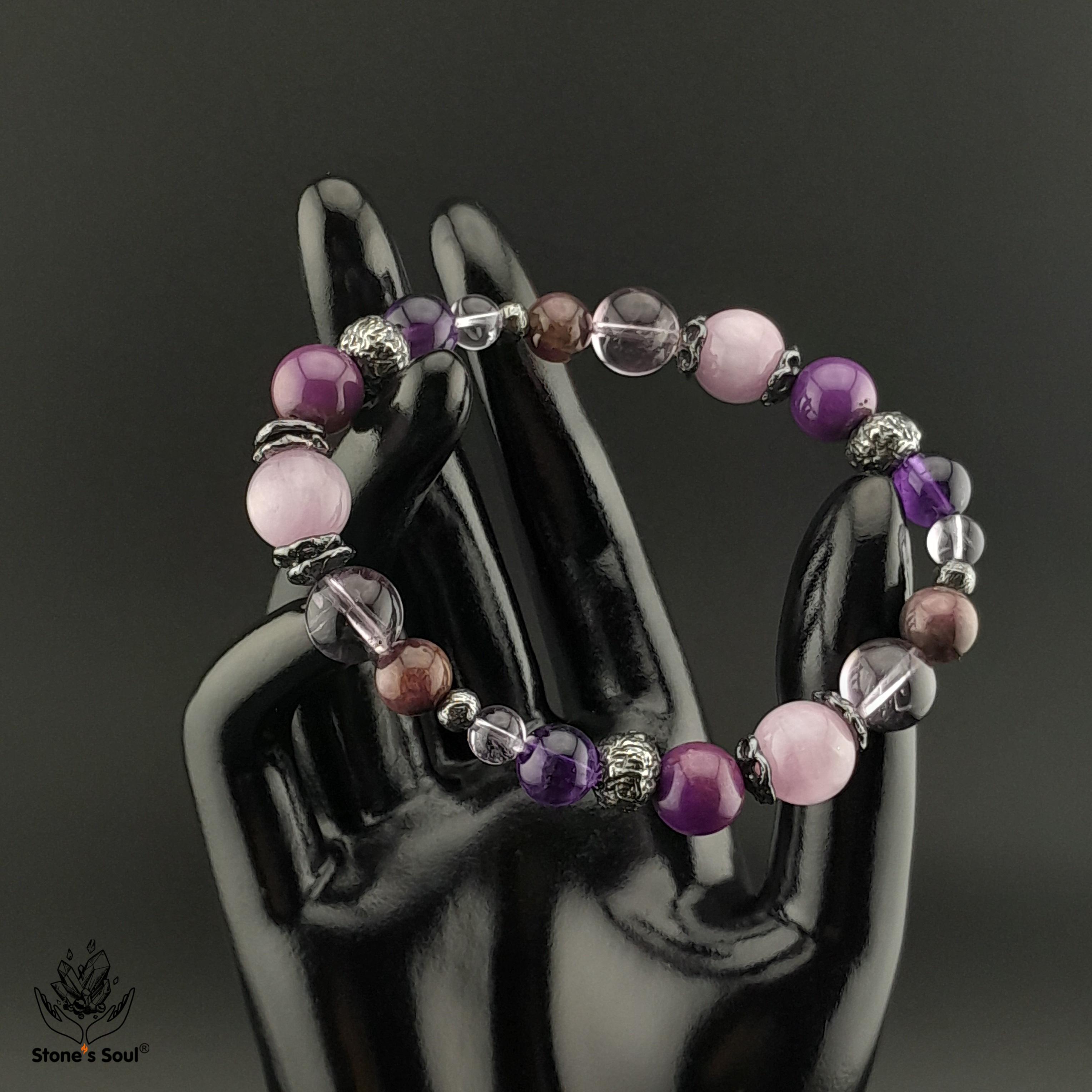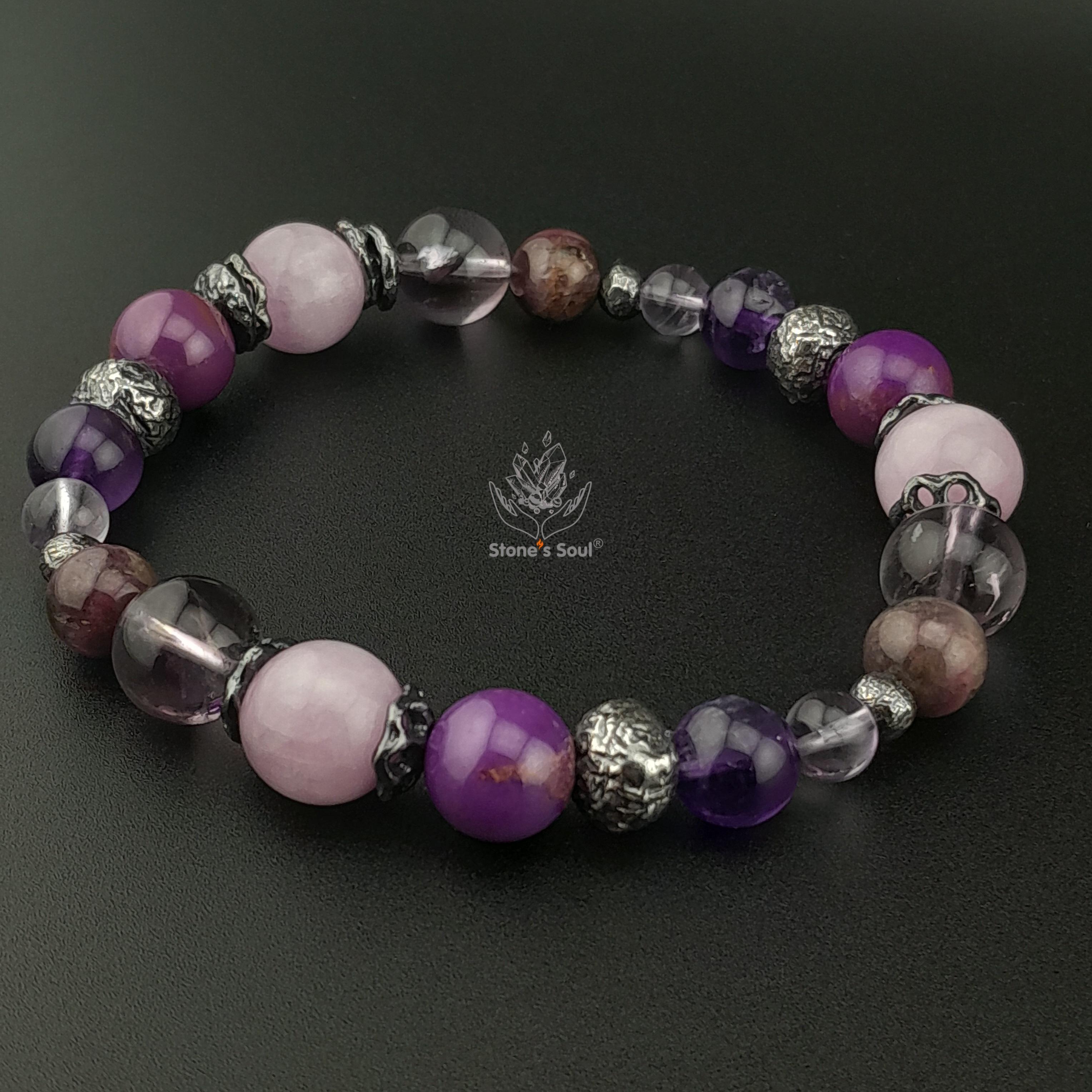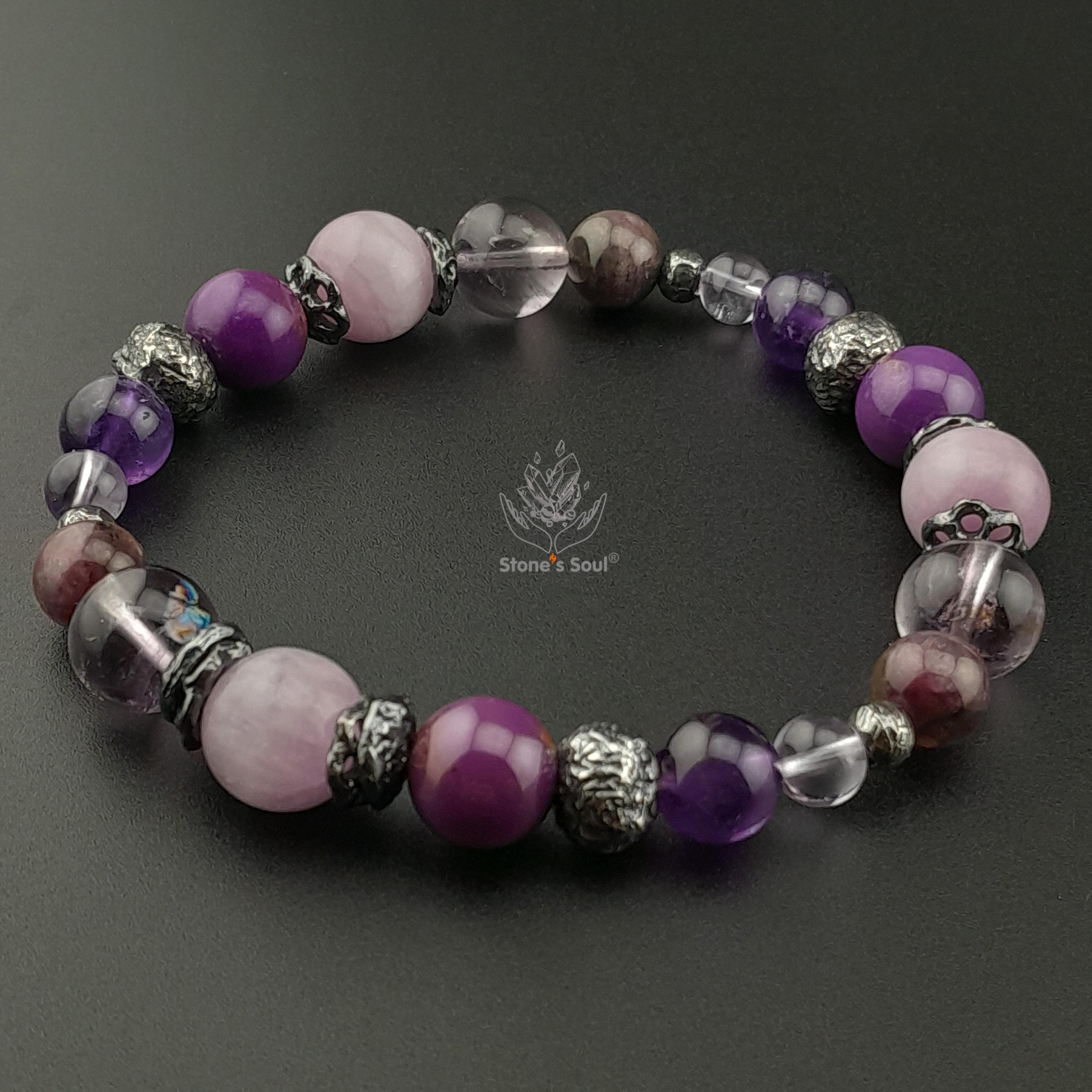 Браслет из натуральных камней: Кунцит, Амети...