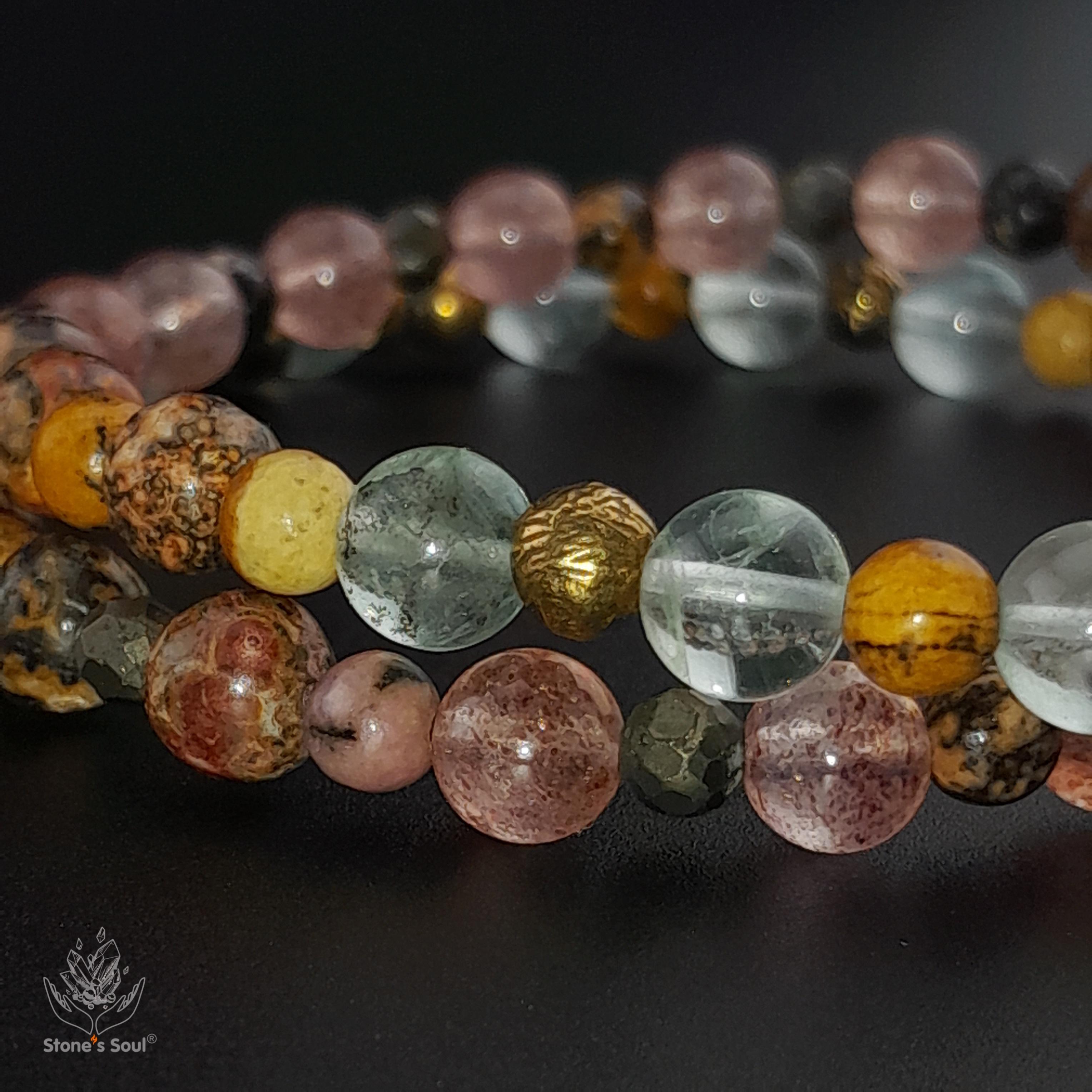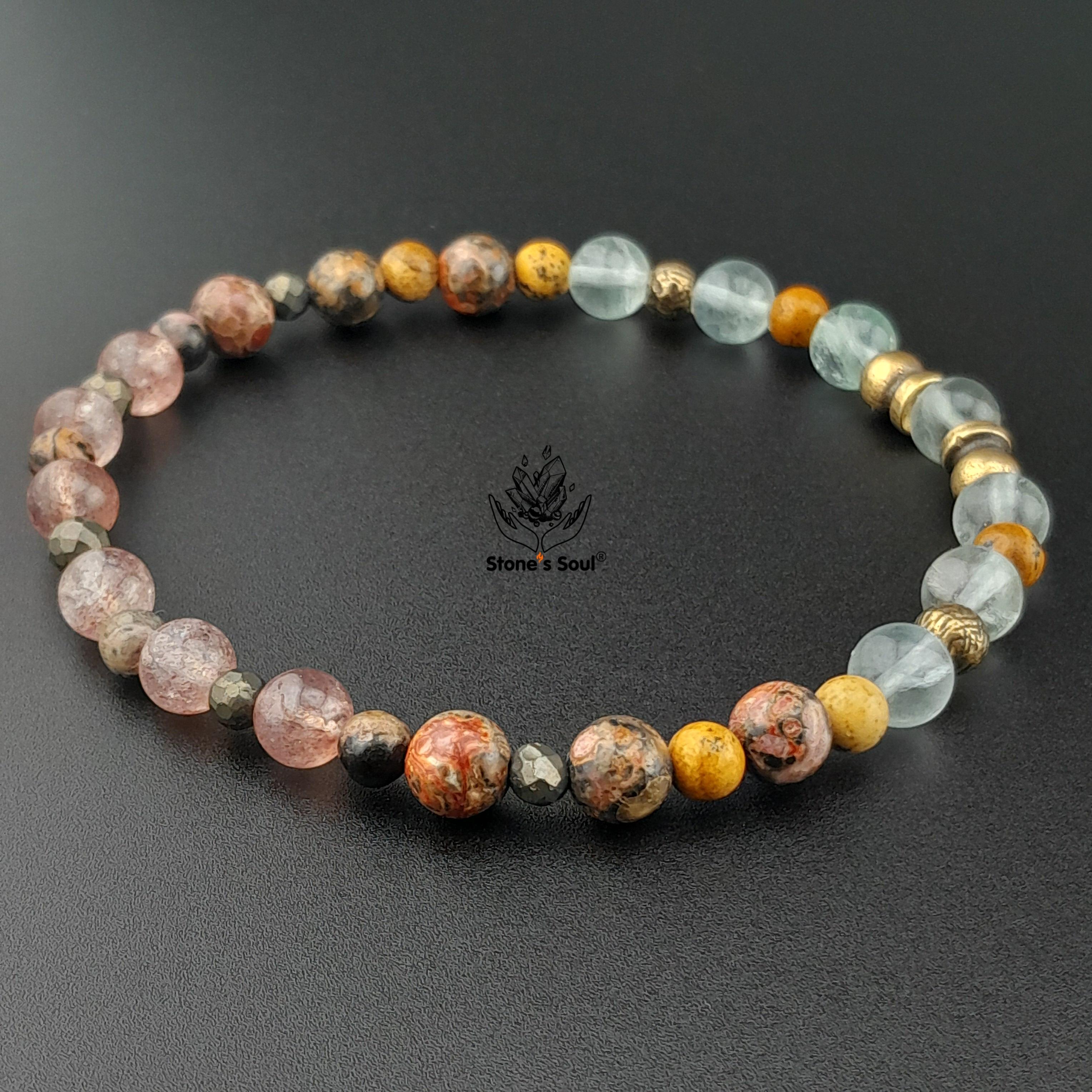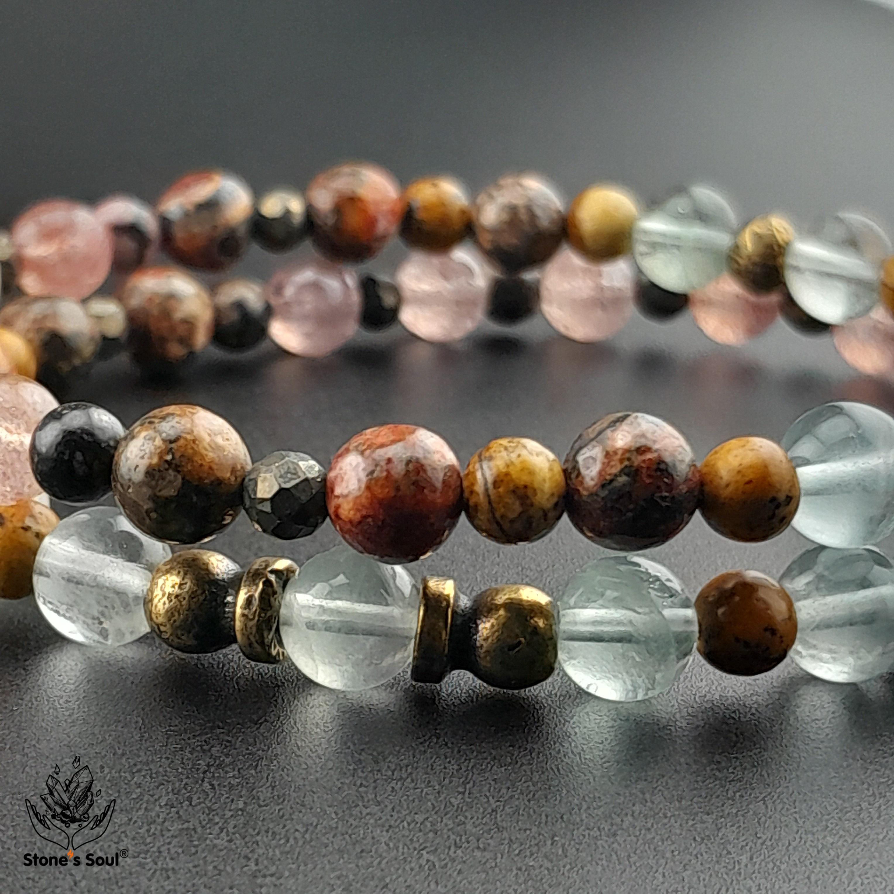 💎 Леопардовая яшма, Клубничный кварц, Родонит, Пирит, Песочная яшма, Флюорит 📿 Бусины 4-6мм ⚜ Фурнитура латунь 📍 Арт. 1000187