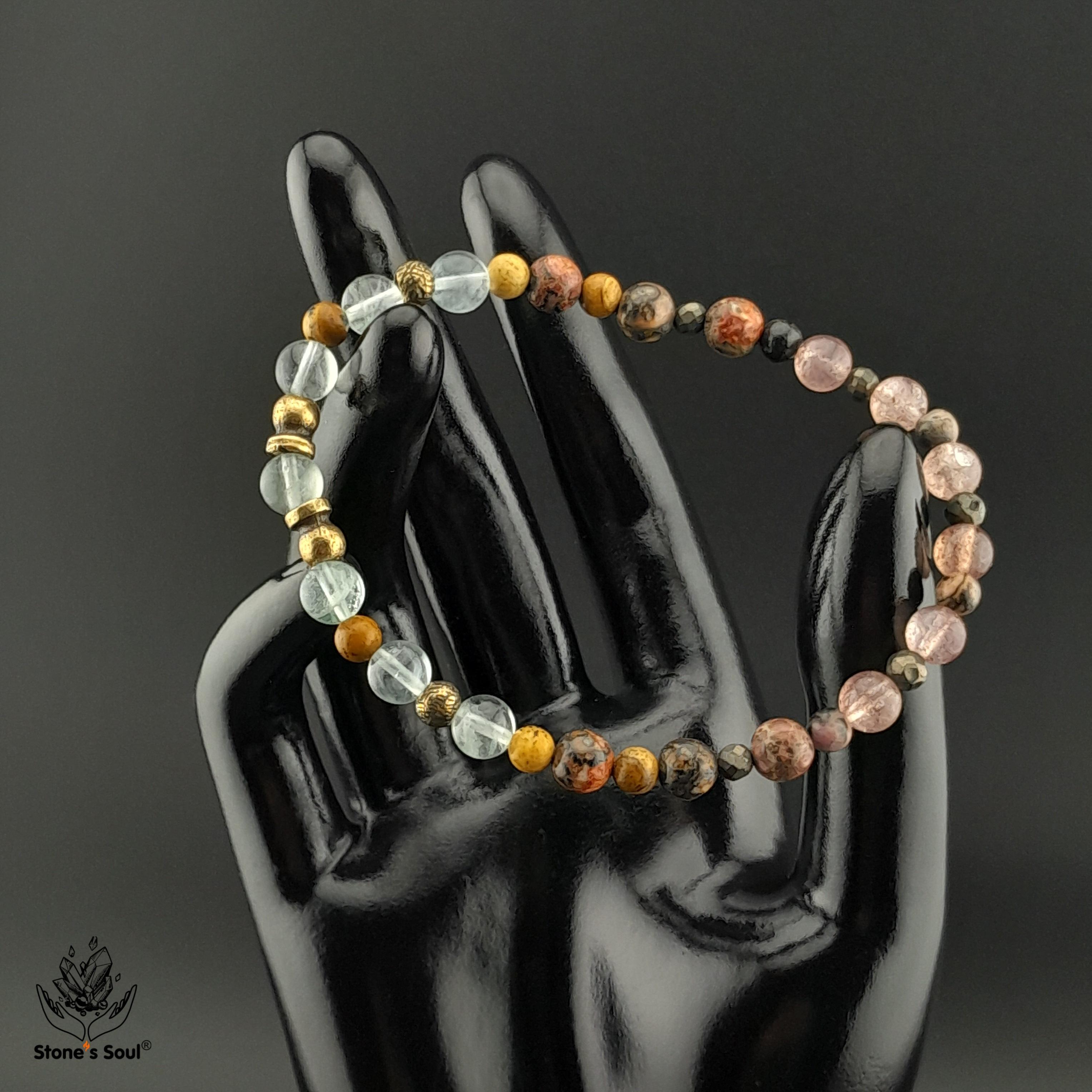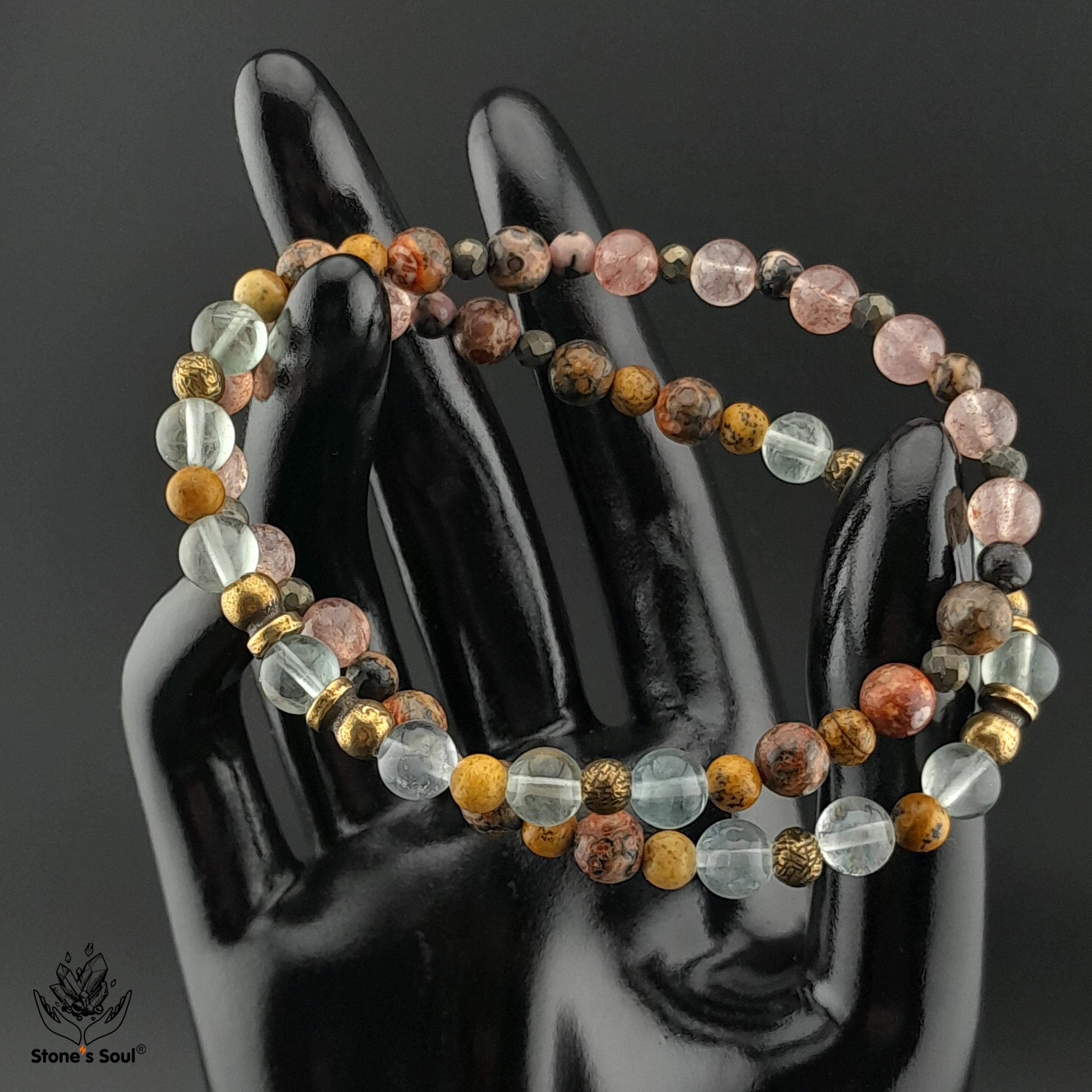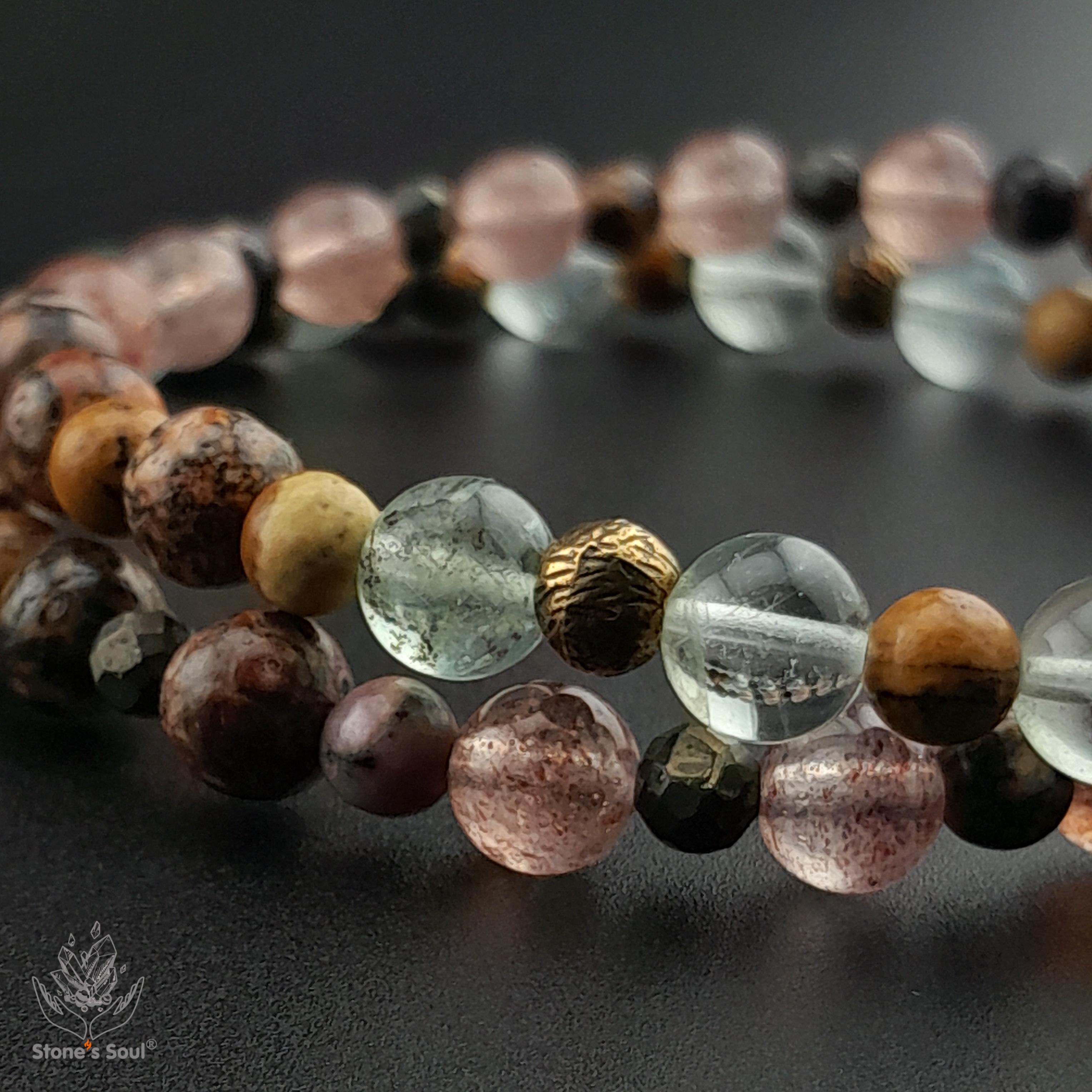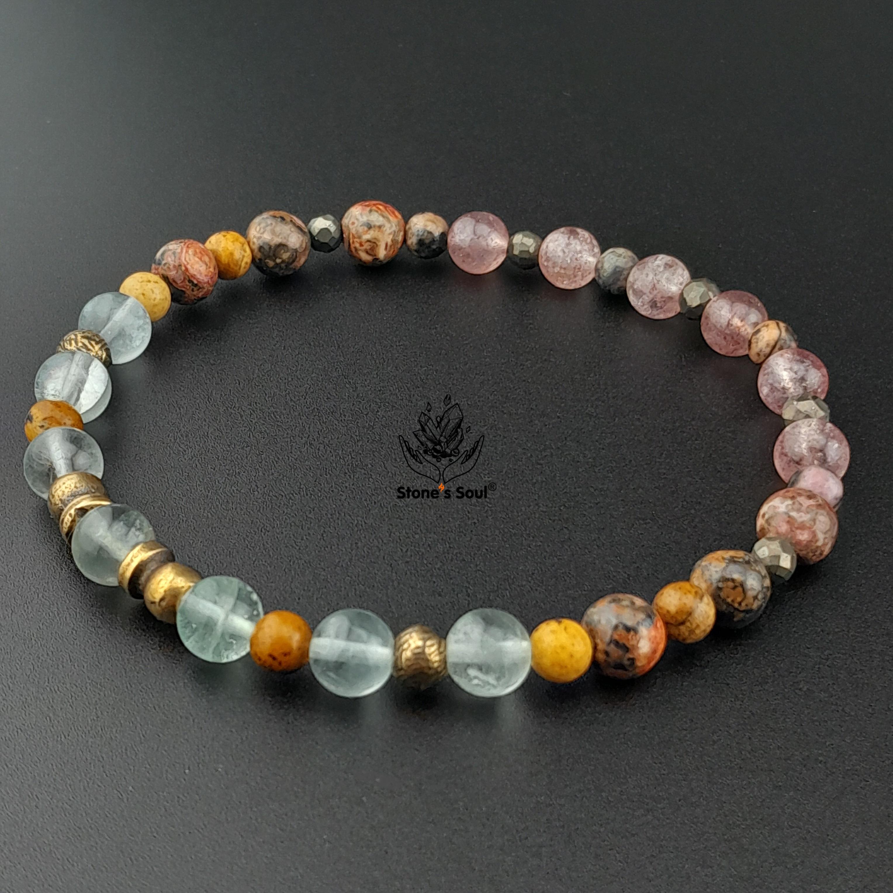 💎 Леопардовая яшма, Клубничный кварц, Родонит, Пирит, Песочная яшма, Флюорит 📿 Бусины 4-6мм ⚜ Фурнитура латунь 📍 Арт. 1000187