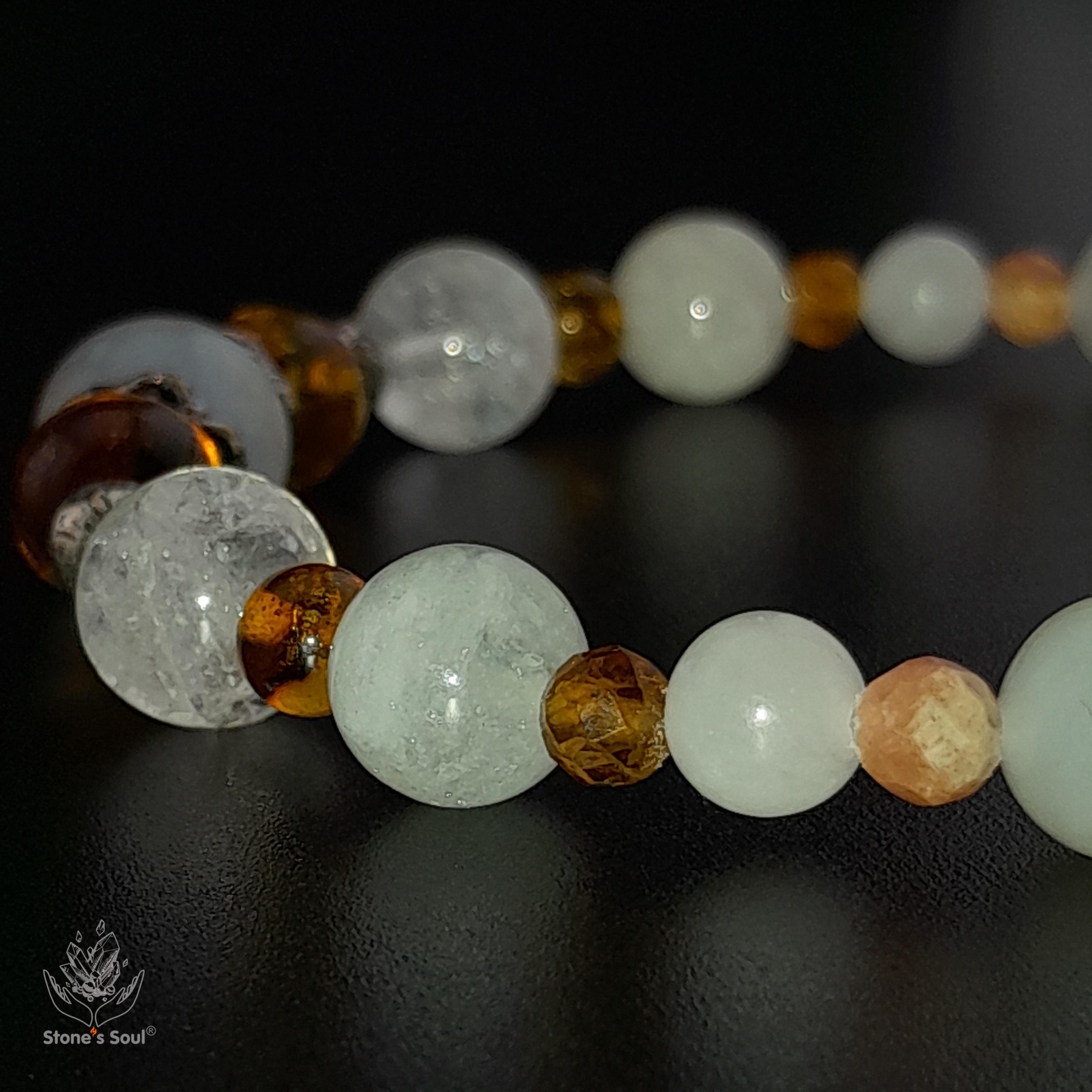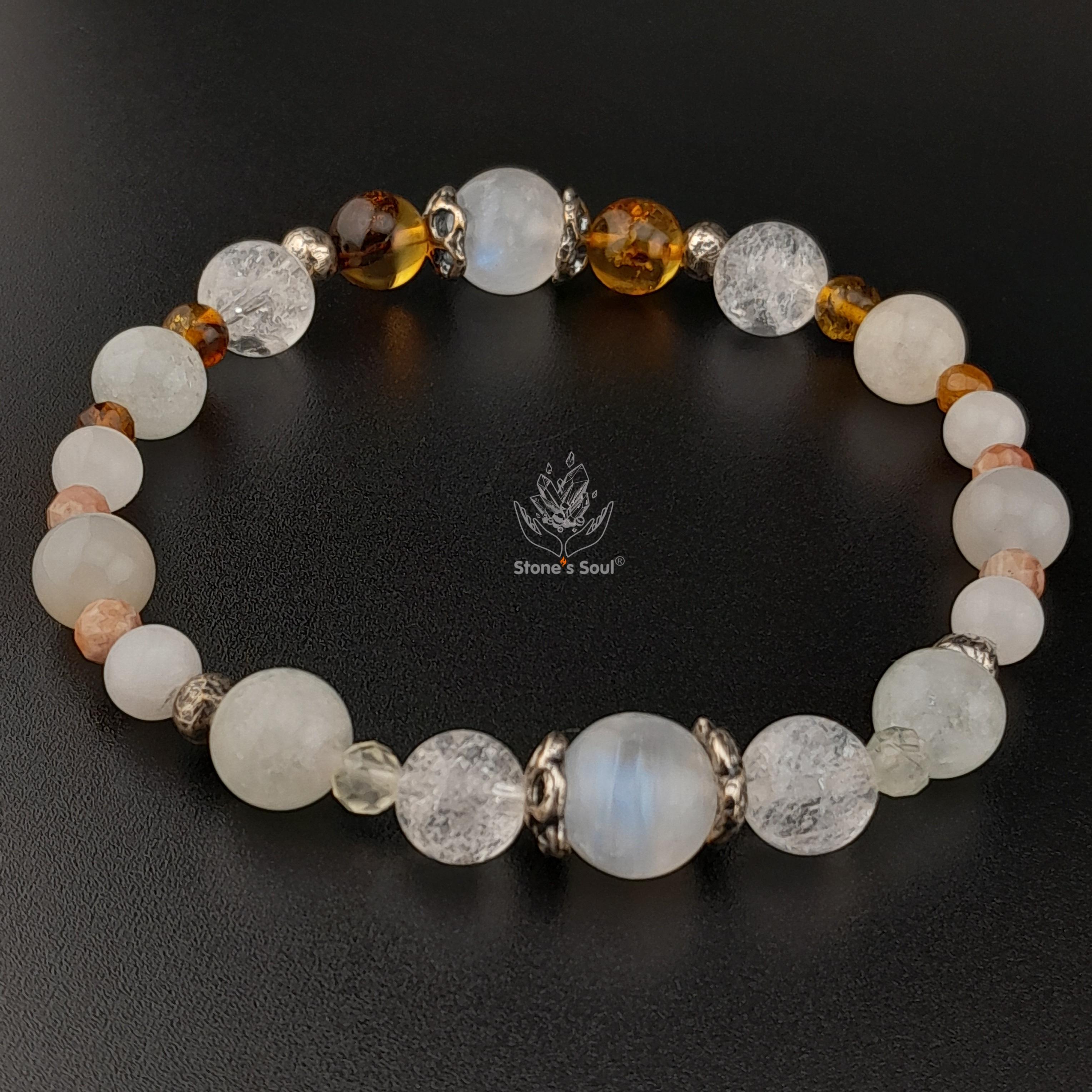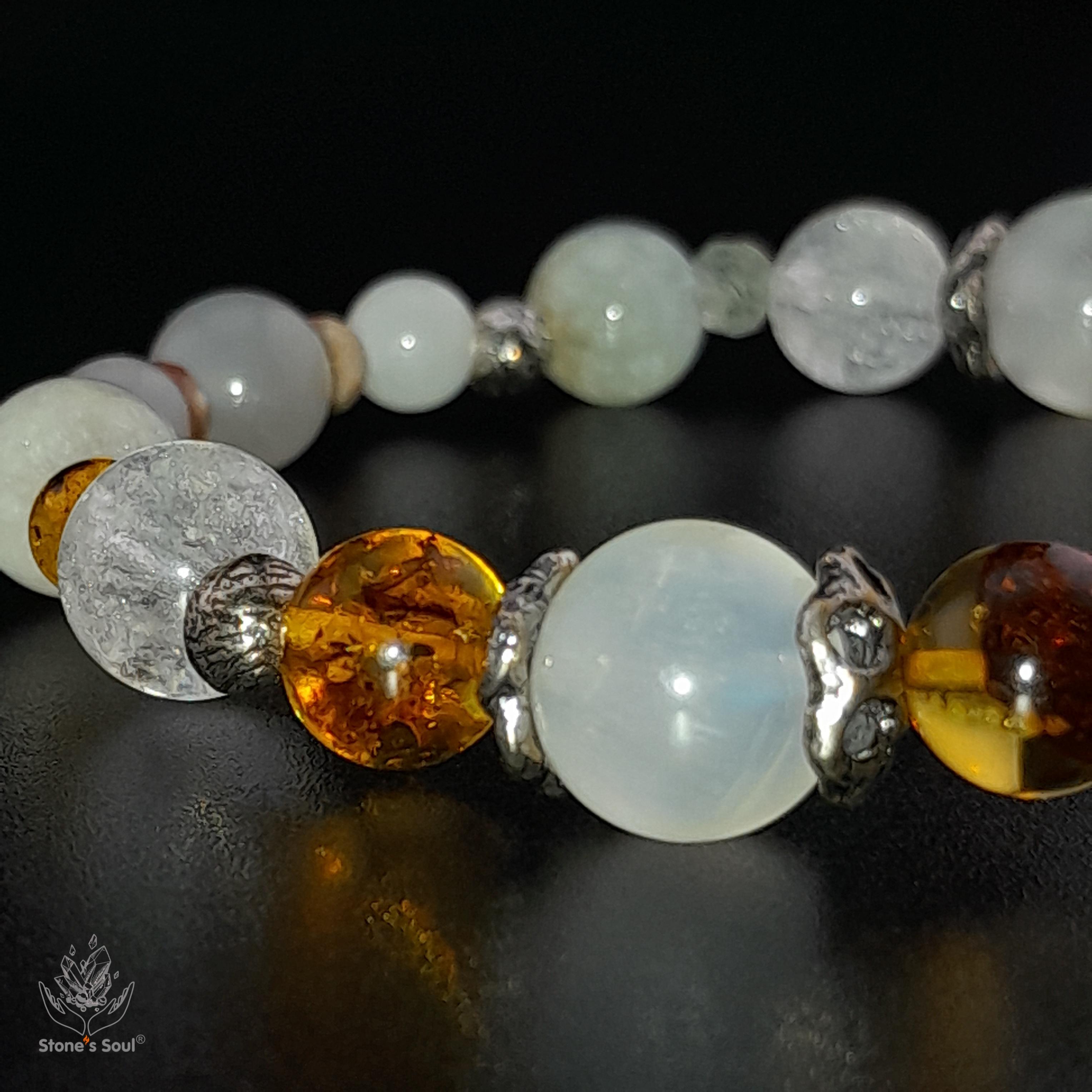 💎 Лунный камень, Янтарь, Сахарный кварц, Гошенит (белый берилл), Жёлтый турмалин, Нефрит (белый и серый), Родохрозит, Пренит 📿 Бусины 4мм-10мм ⚜ Фурнитура латунь с патиной 📍 Арт. 1000184