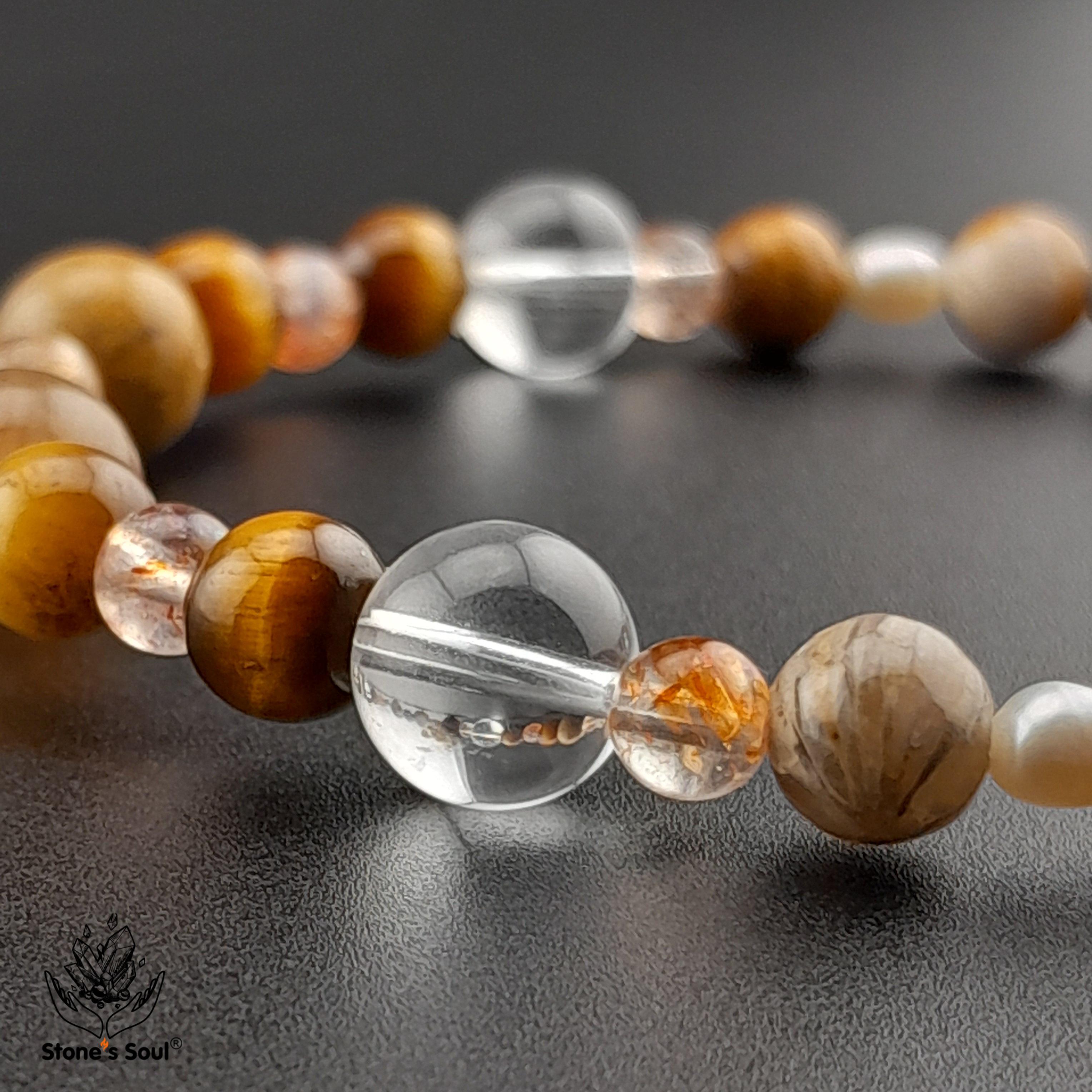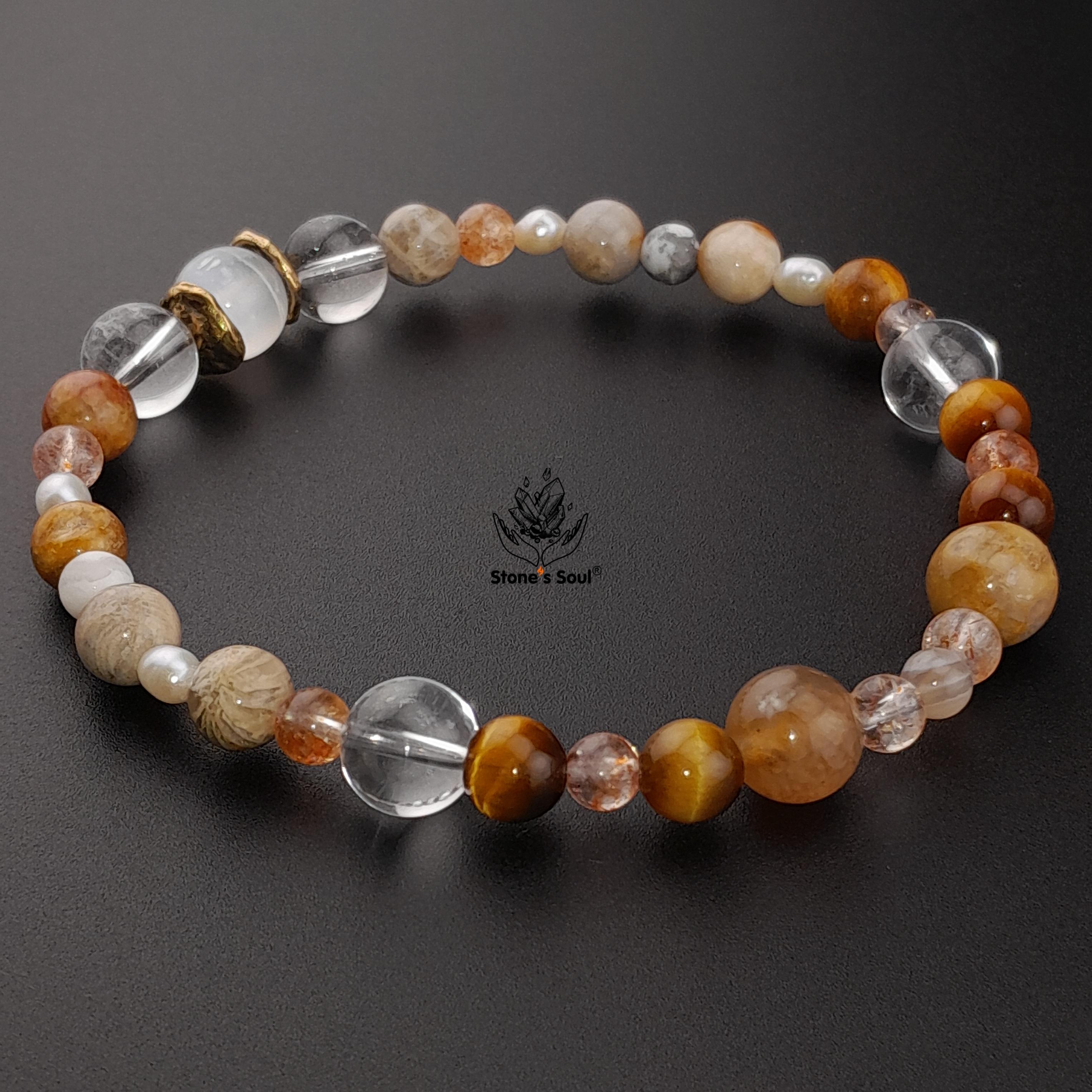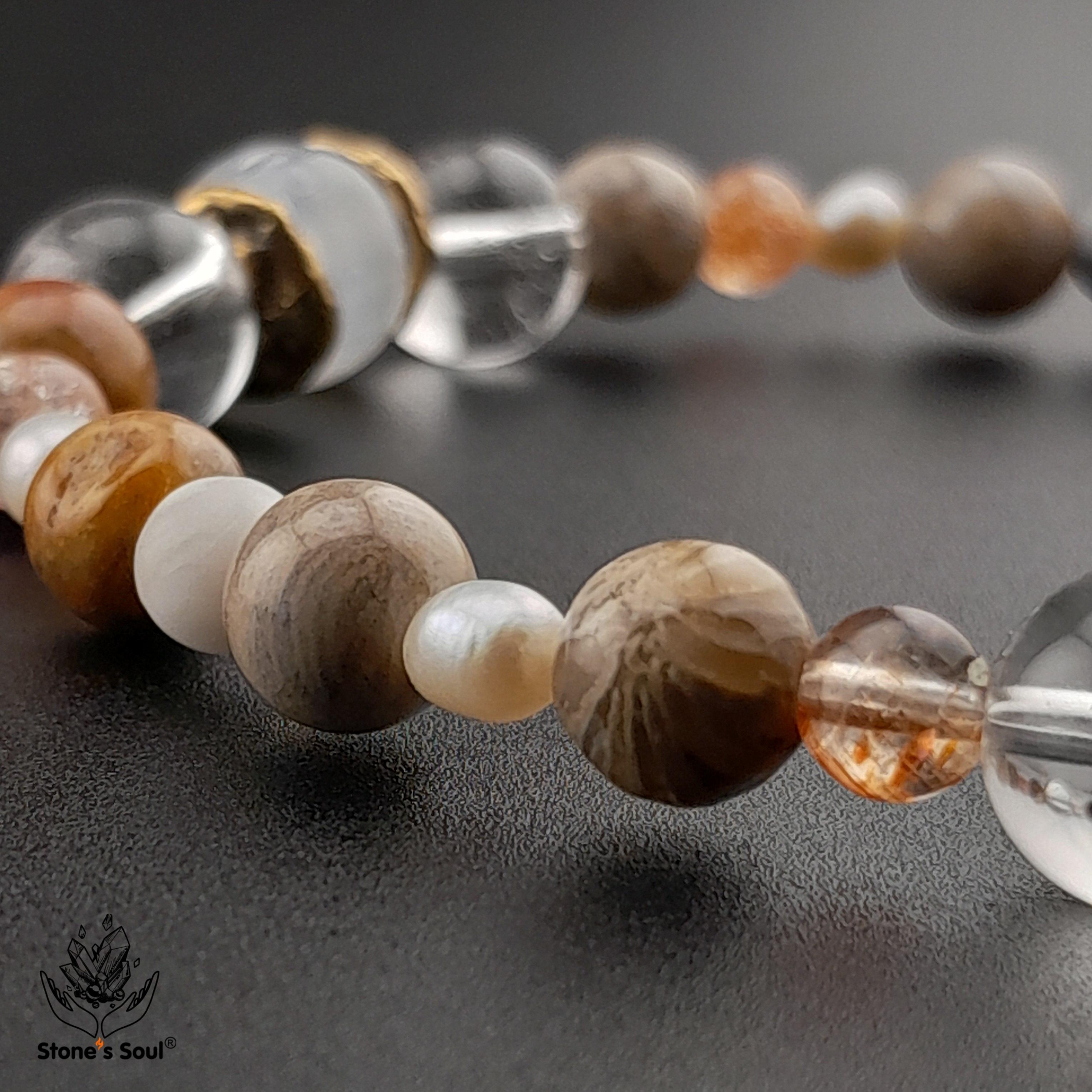 💎 Окаменелый коралл, Прозрачный кварц, Селенит, Солнечный камень, Тигровый глаз, Жемчуг, Агат Ботсвана, Говлит 📿 Бусины 4-8мм ⚜ Фурнитура латунь 📍 Арт. 1000190