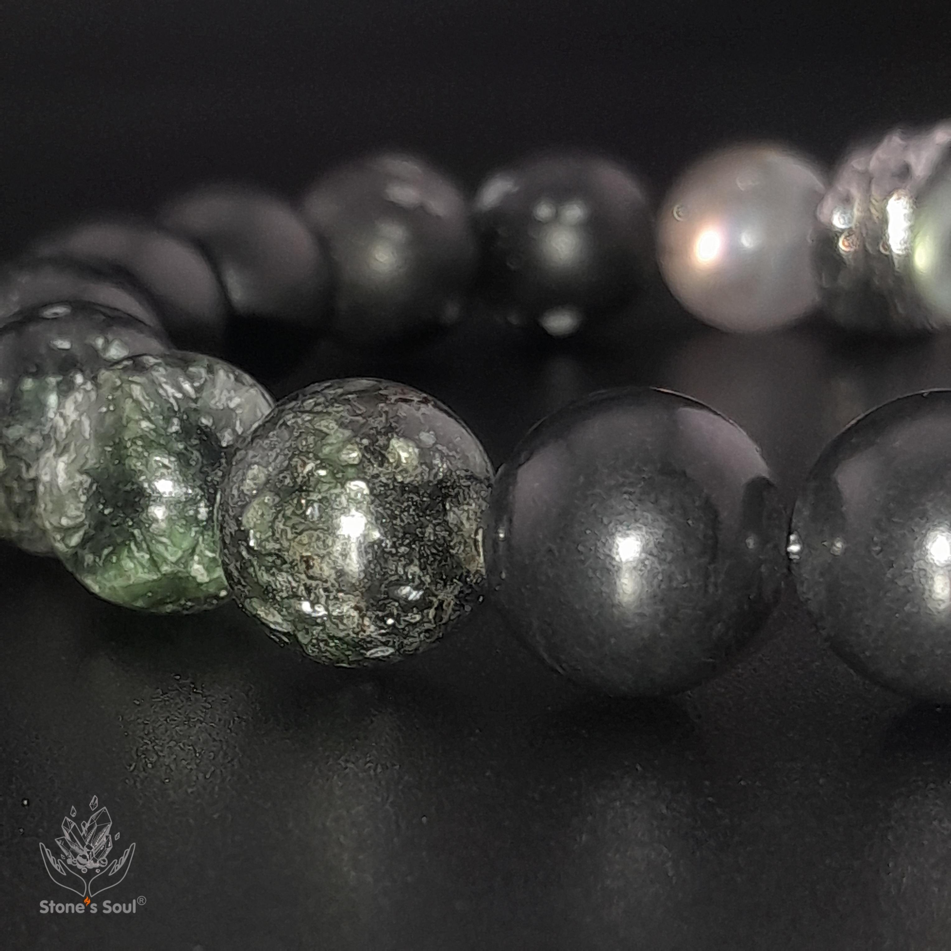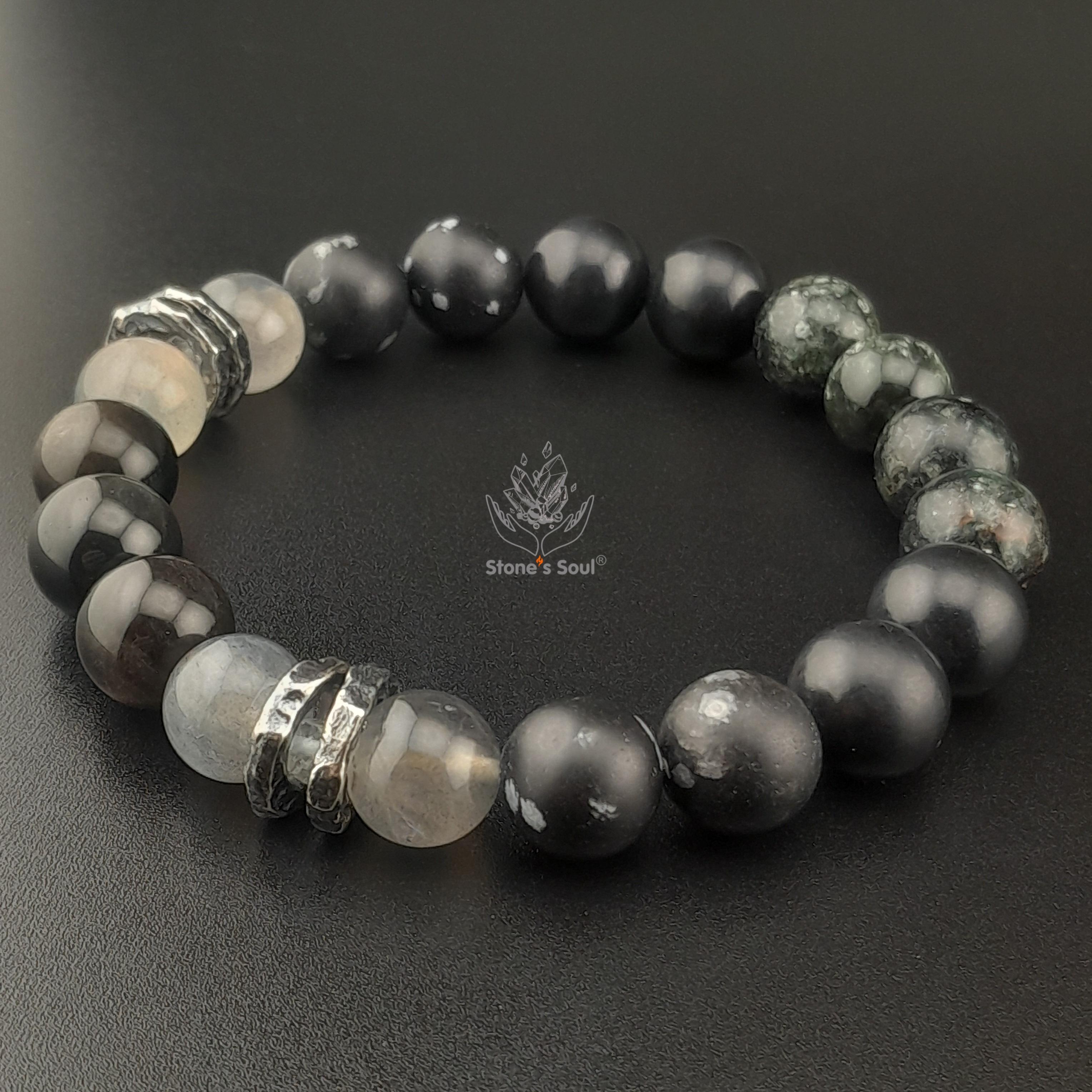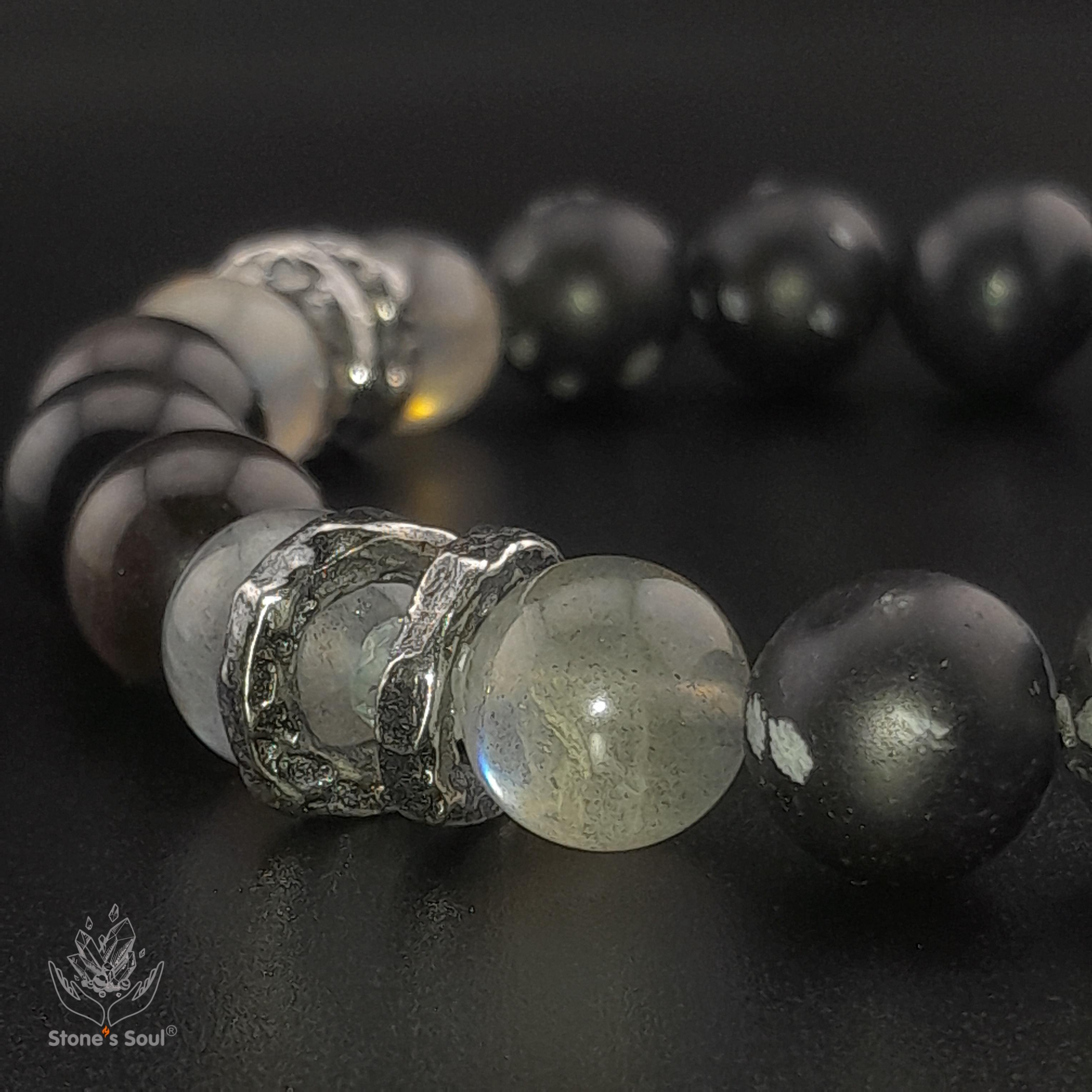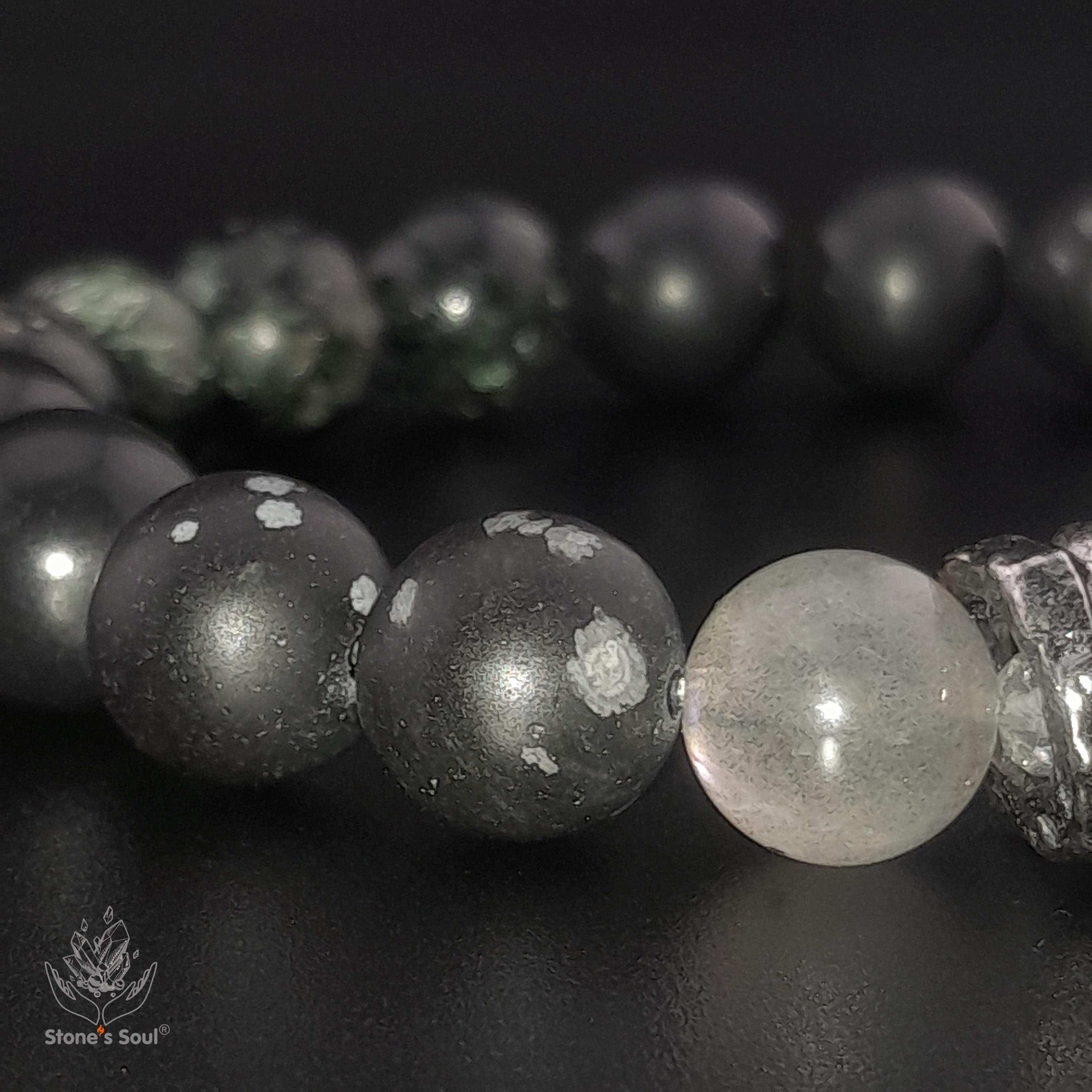 💎 Топаз, Пурпурный лабрадорит, Серафинит, Серебристый и снежный обсидиан, Шунгит 📿 Бусины 4мм/10мм ⚜ Фурнитура латунь с серебрением 📍 Арт. 1000177