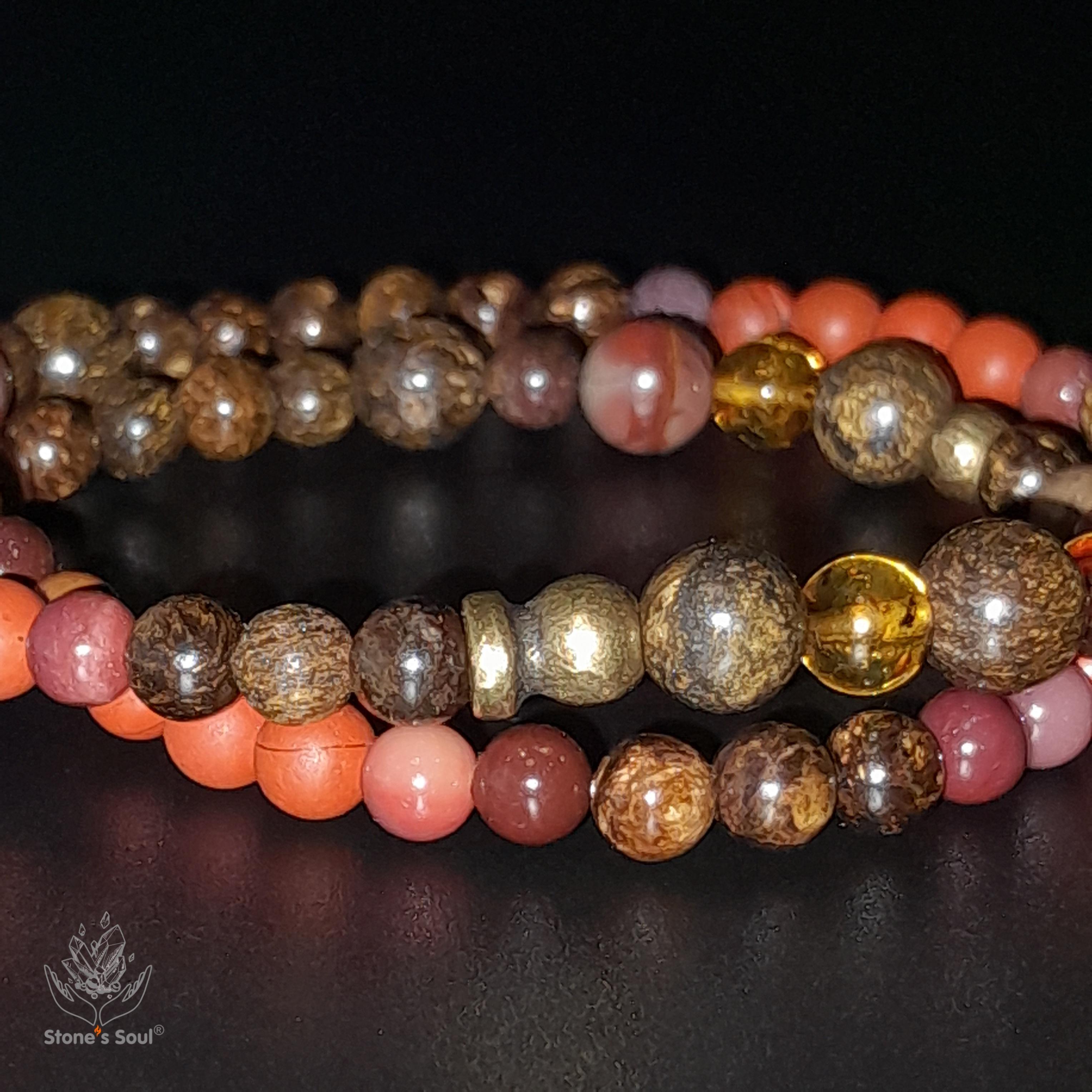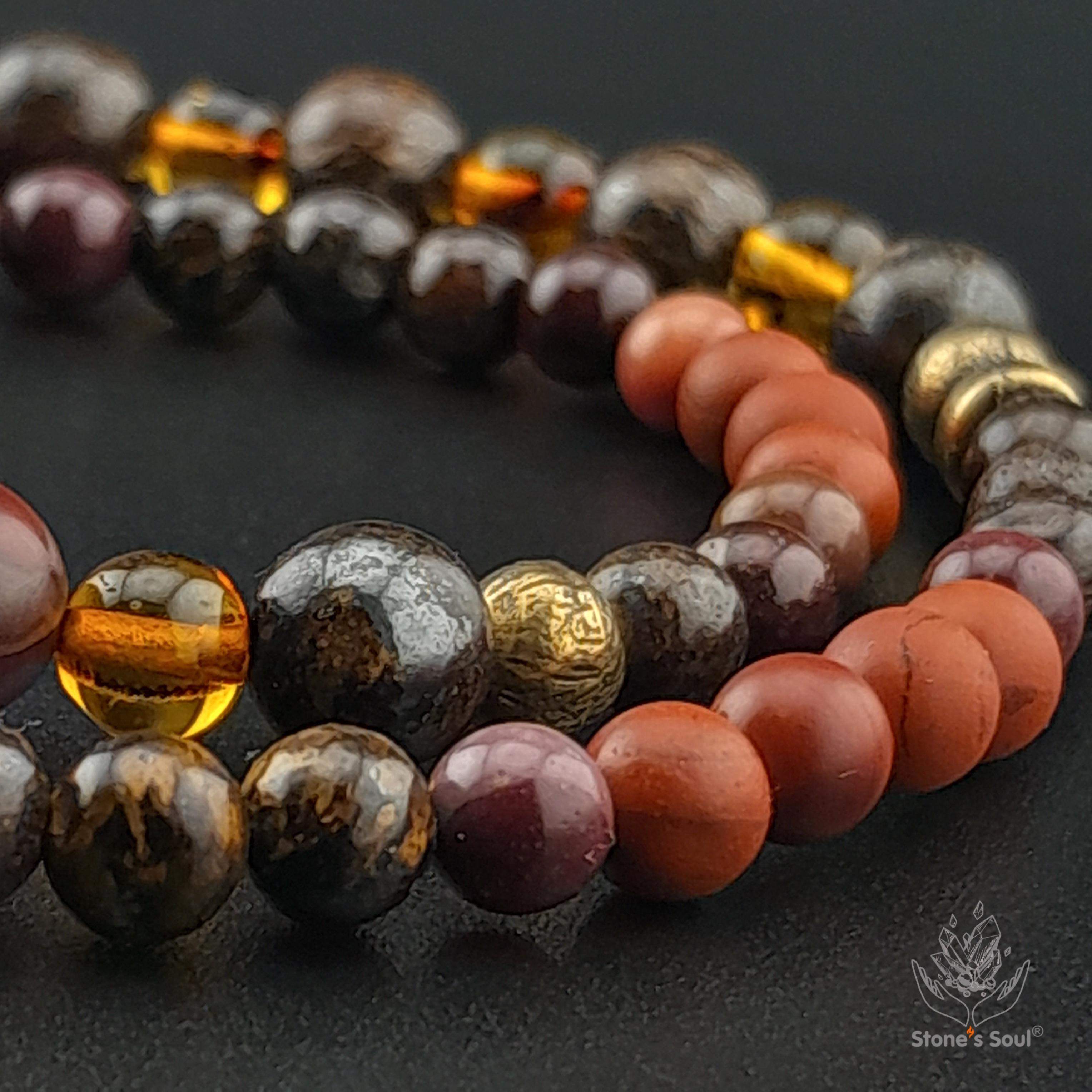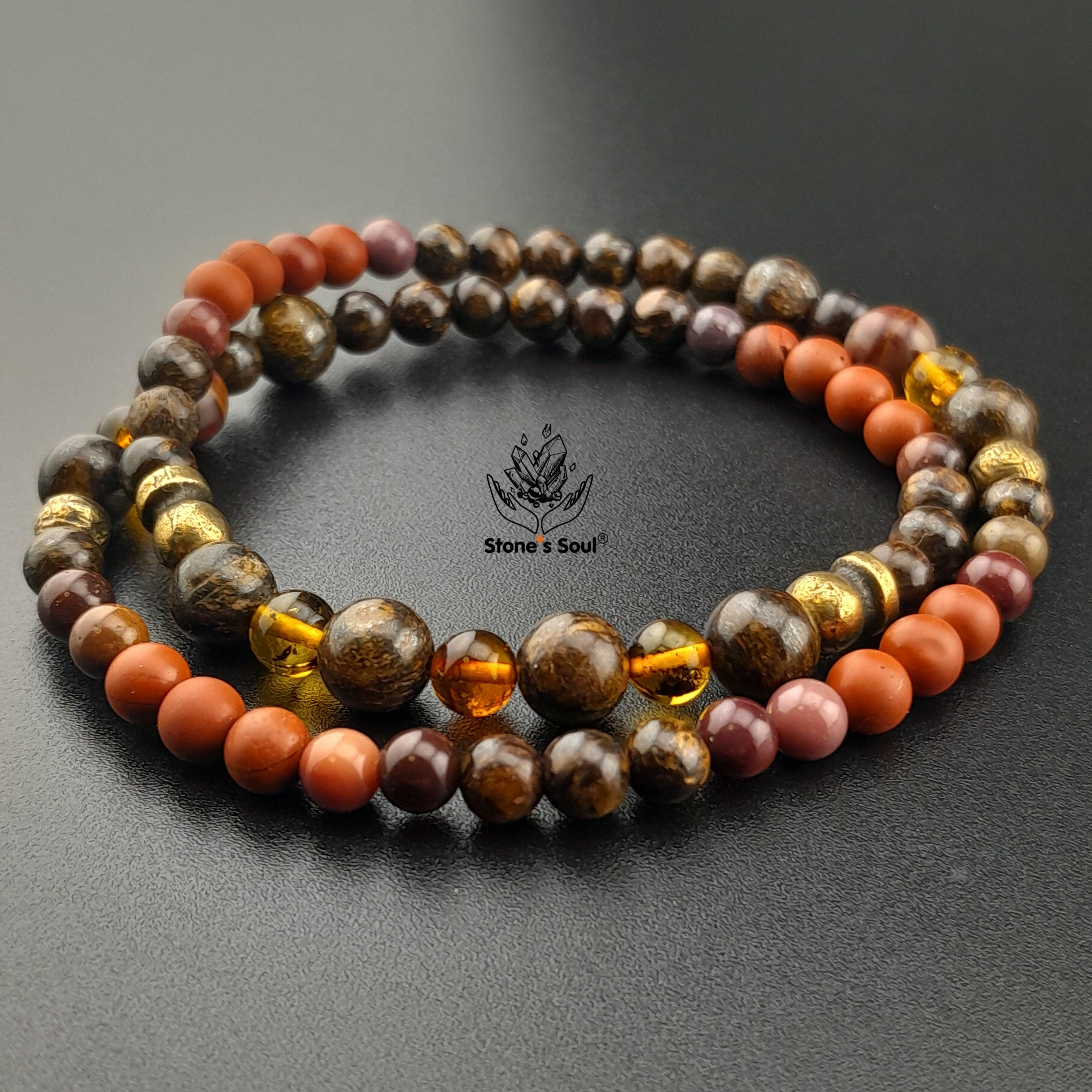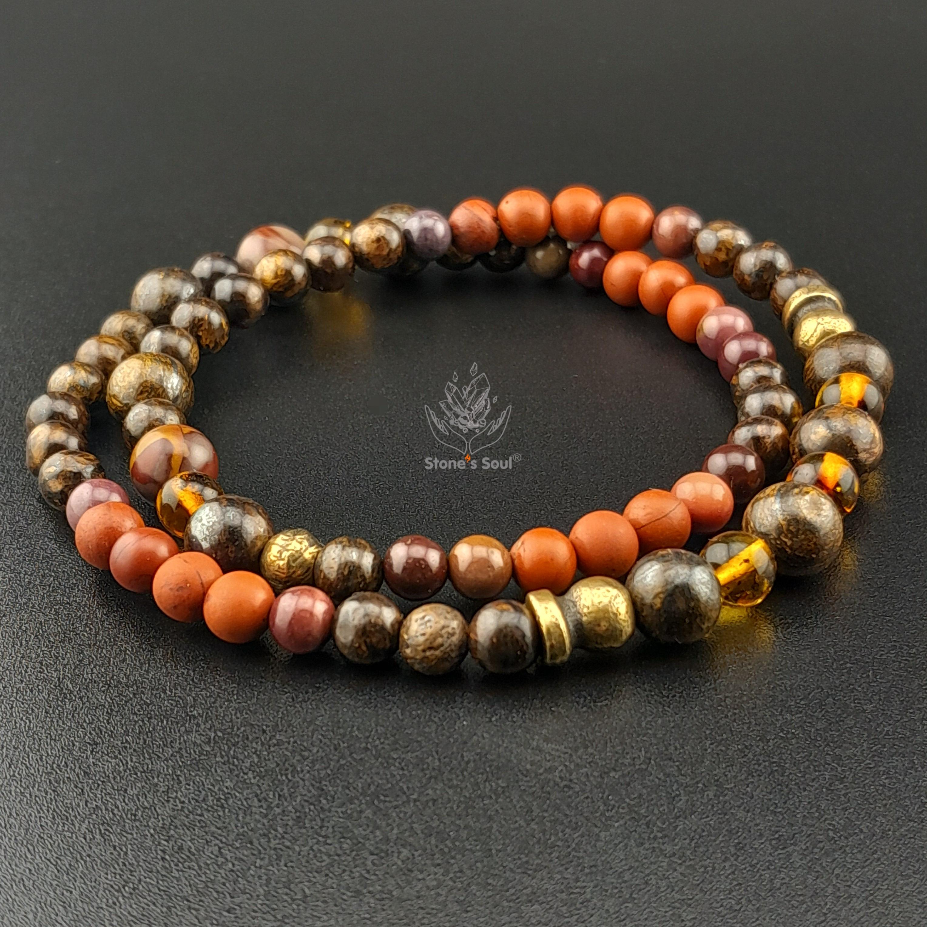 💎 Яшма красная, Яшма мукаит, Янтарь, Бронзит 📍 Два оборота 📿 Бусины 4/5/6мм ⚜ Фурнитура латунь 📍 Арт. 1000170