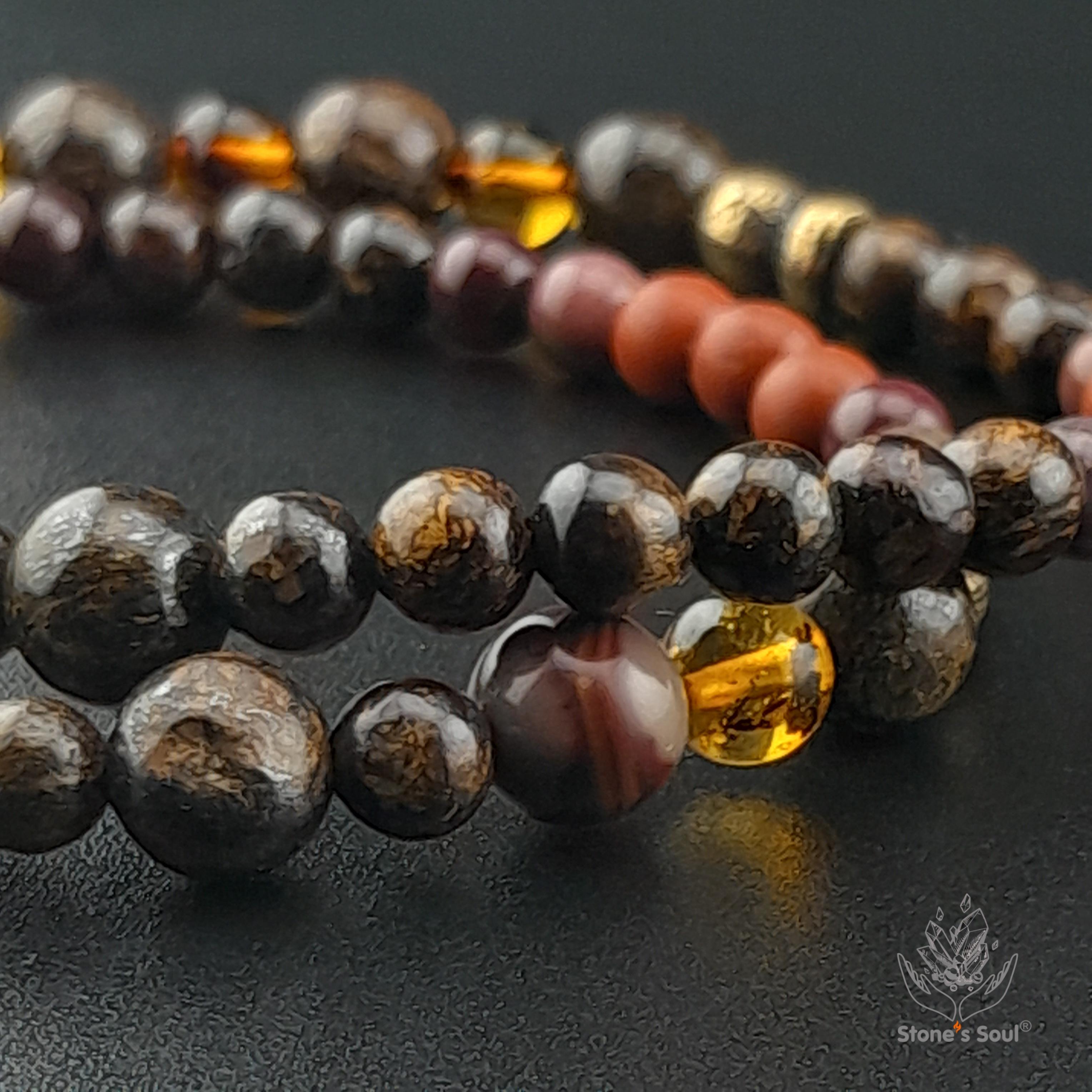 Браслет из натуральных камней: яшма, янтарь,...