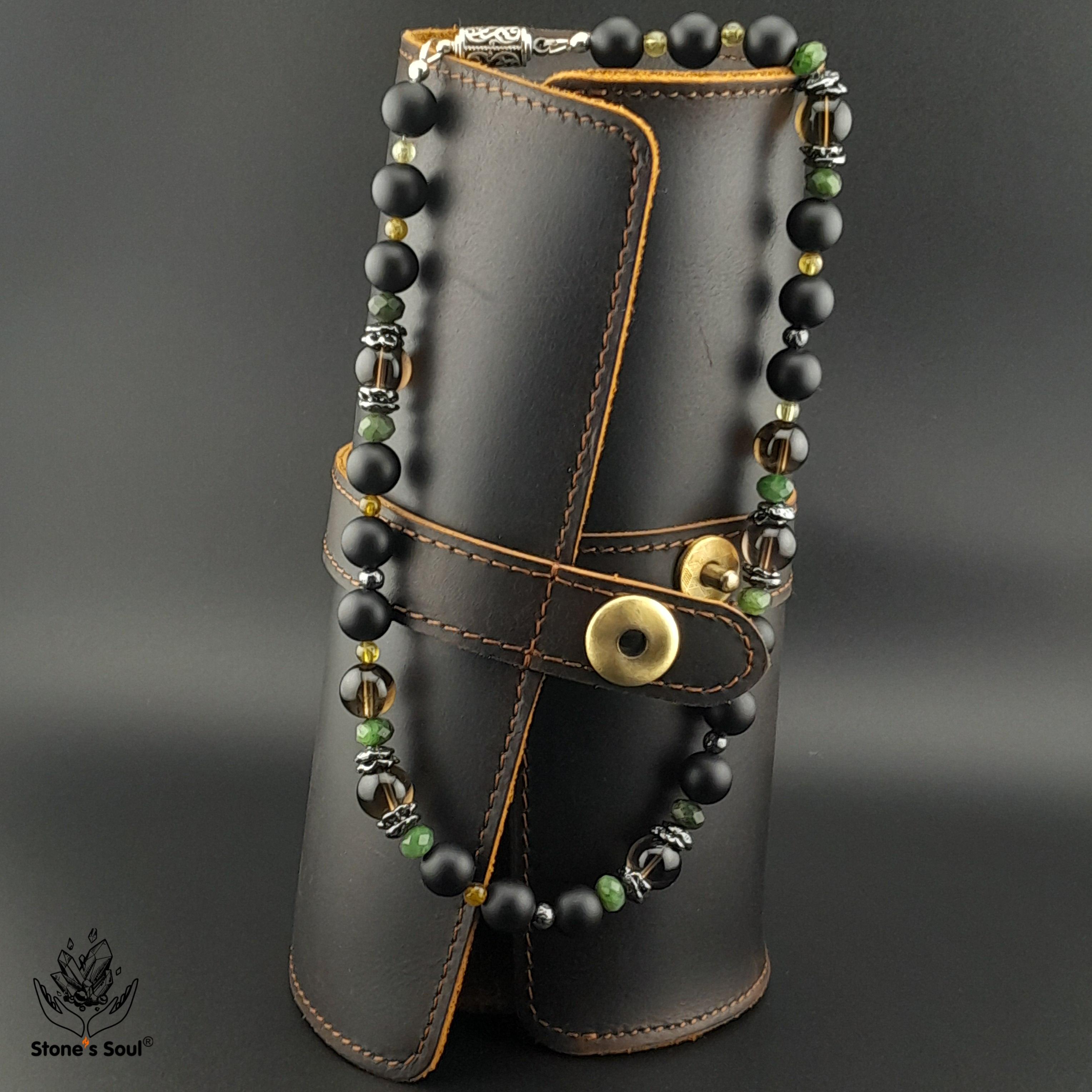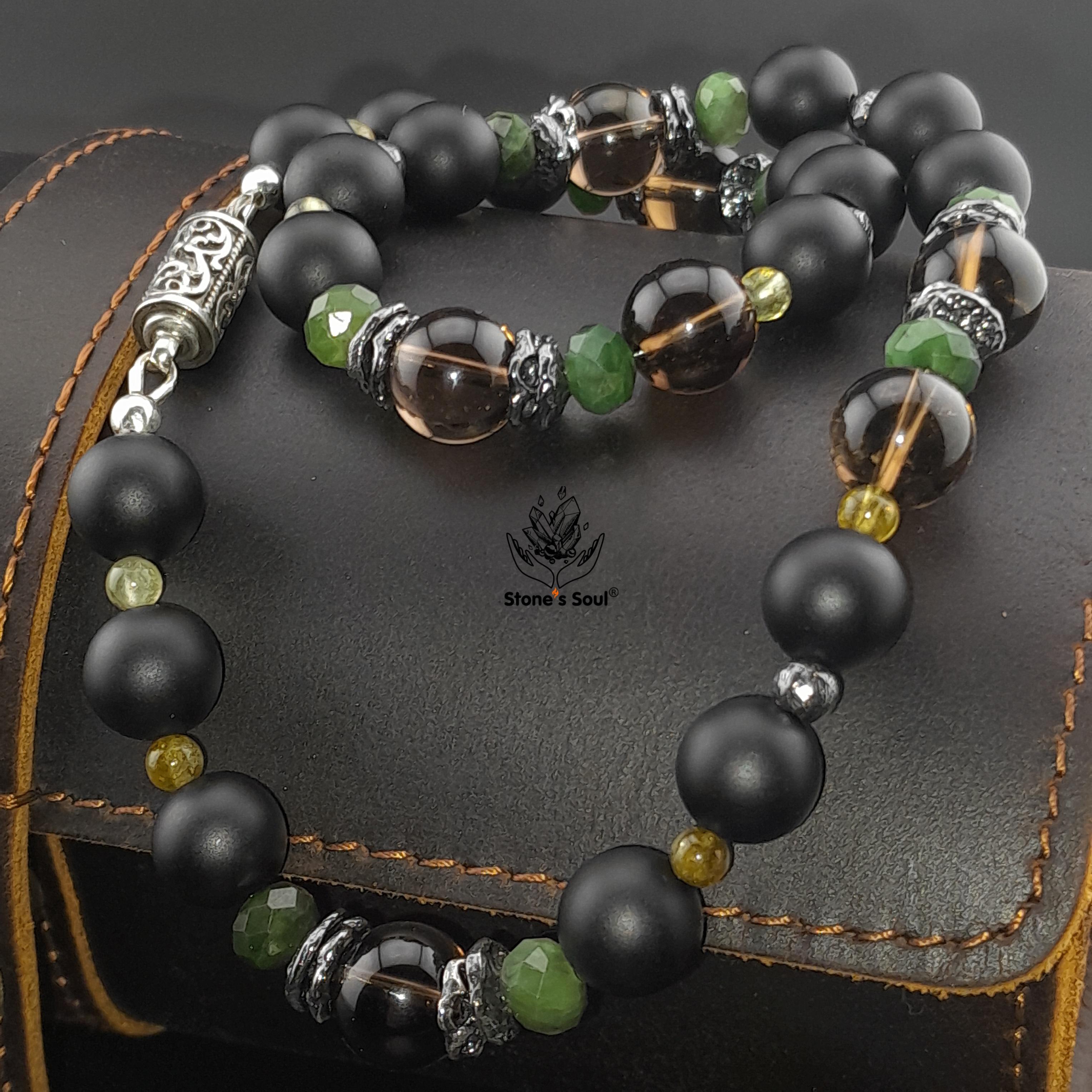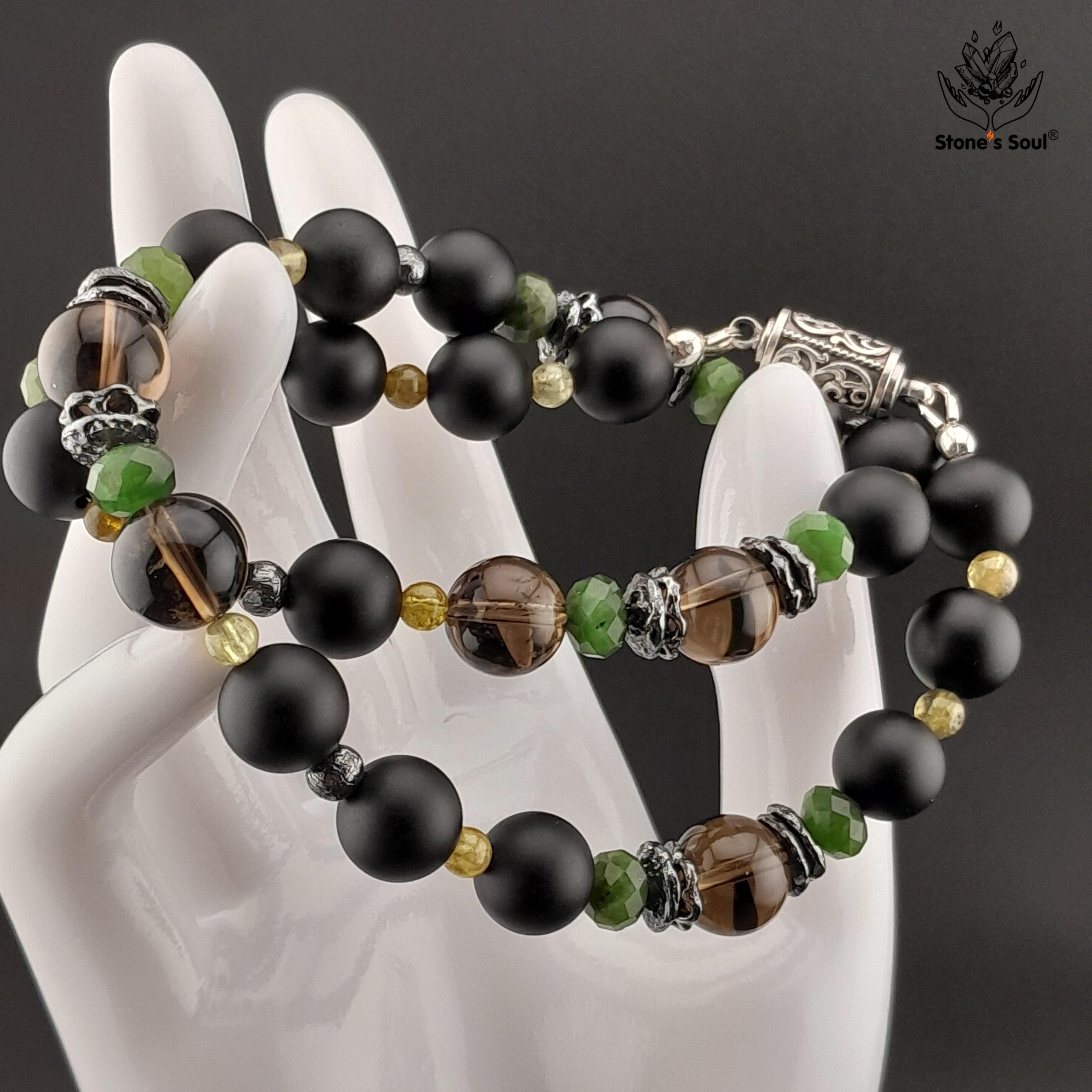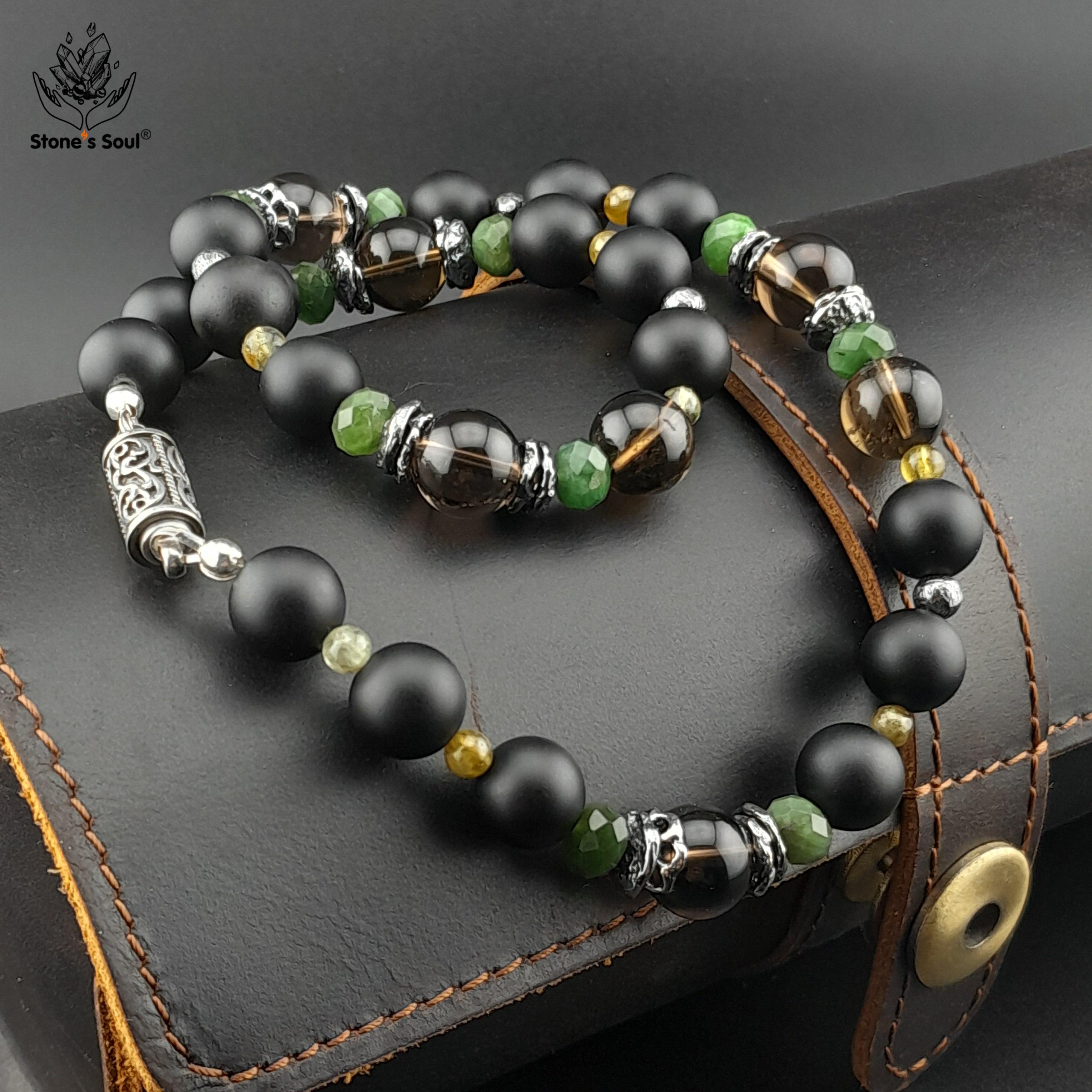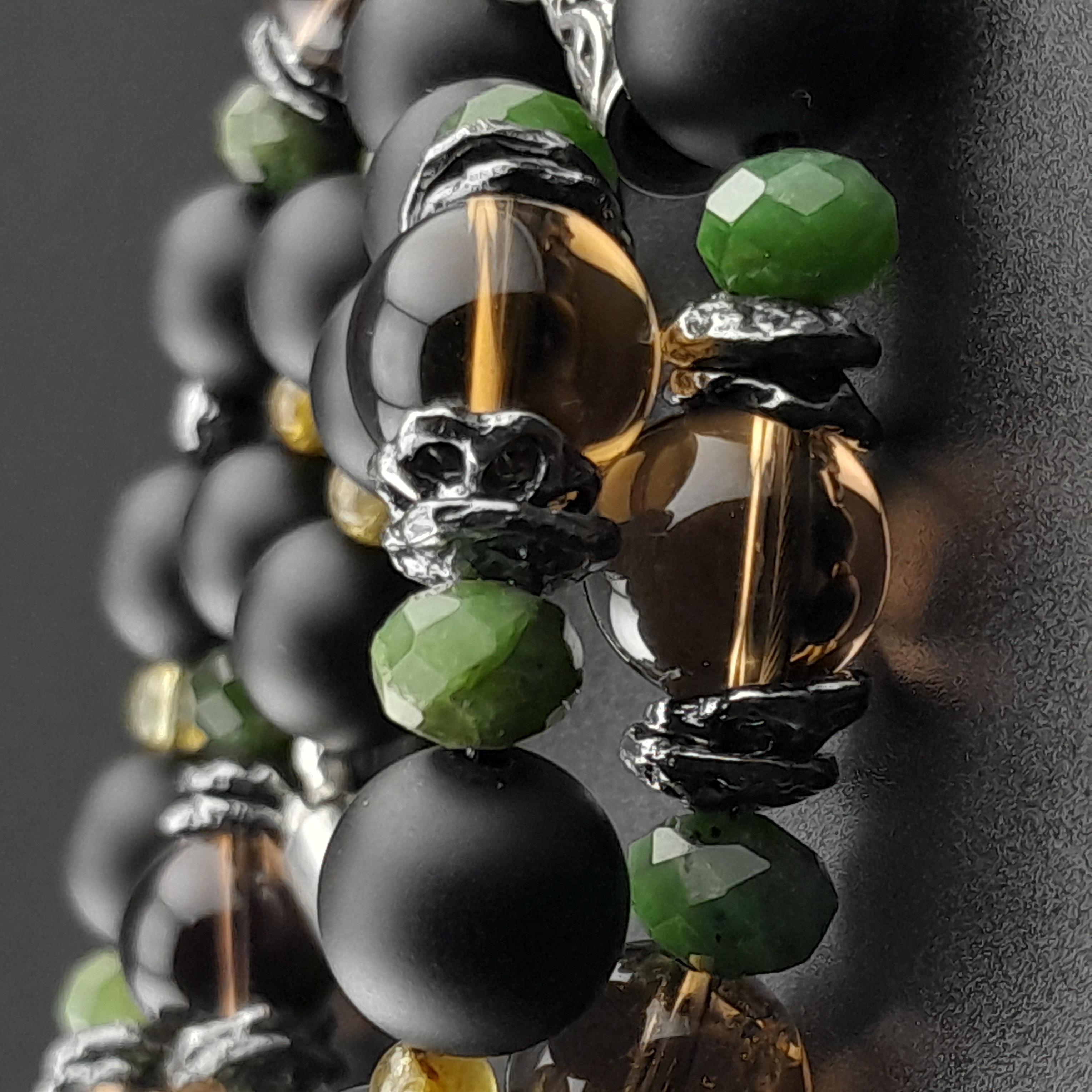 💎 Чёрный агат, Нефрит, Дымчатый кварц (раухтопаз), Зелёный гранат (гроссуляр) 📿 Бусины 4-10мм ⚜ Фурнитура латунь с серебрением 🔒 Магнитныйзамок серебро 📍 Арт. 5000102