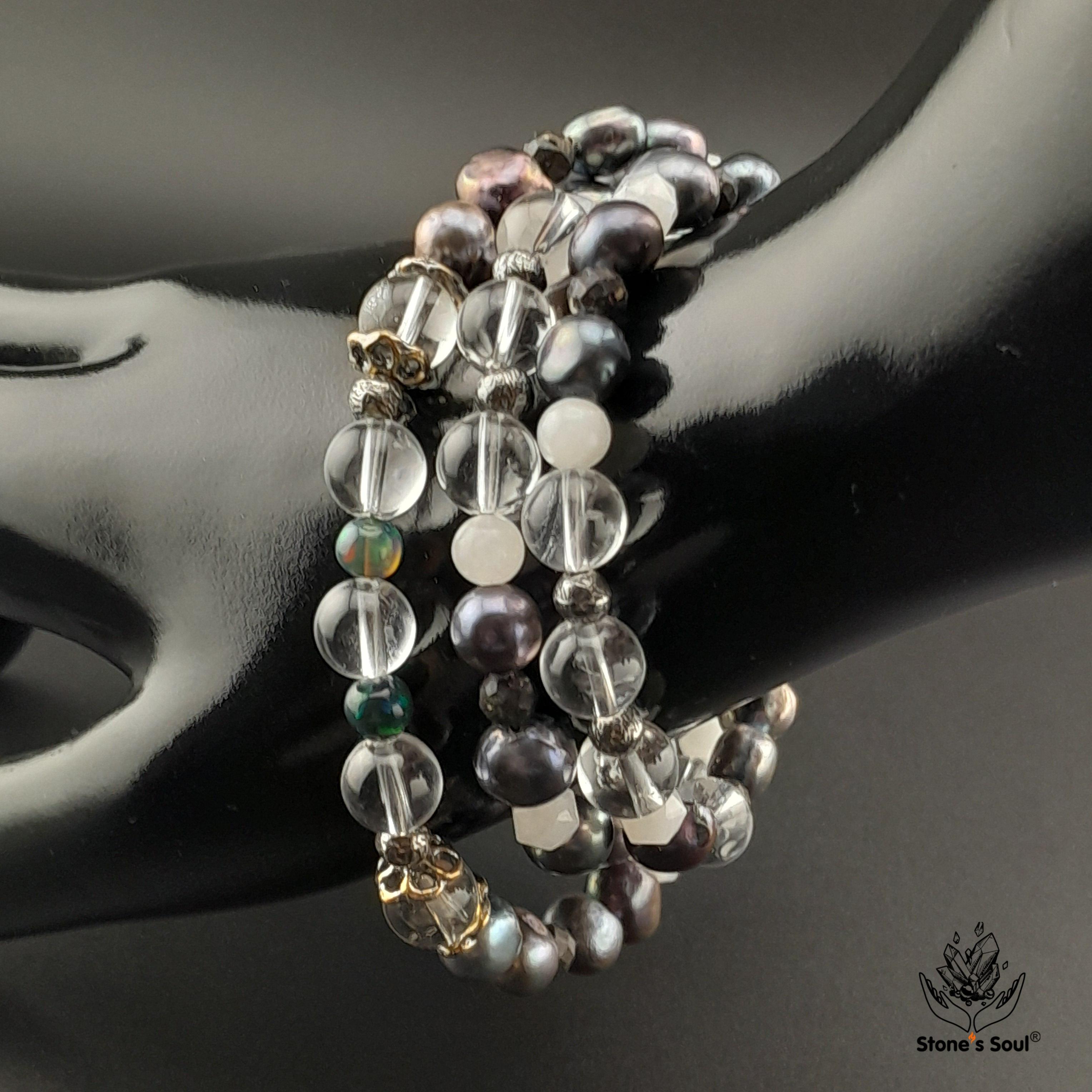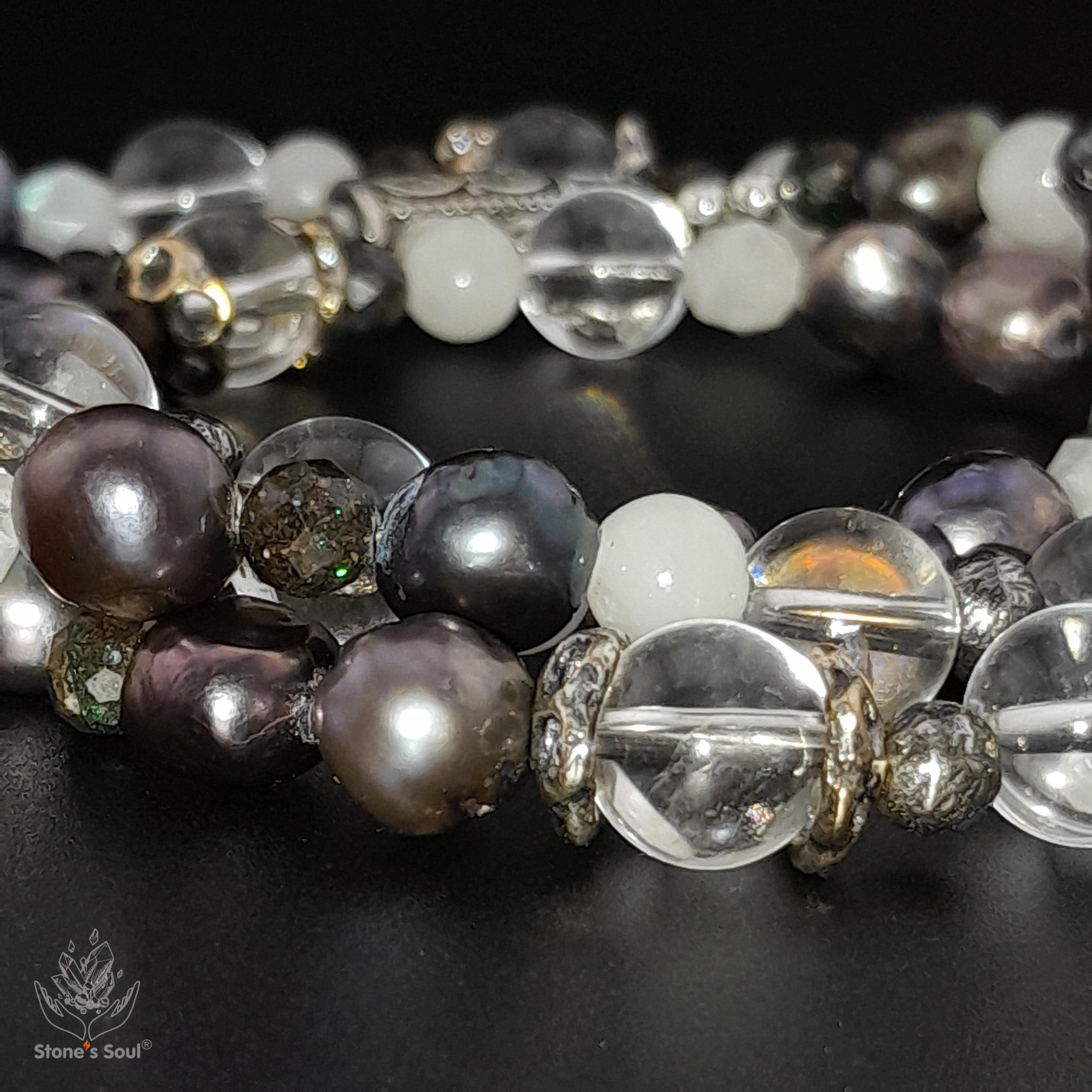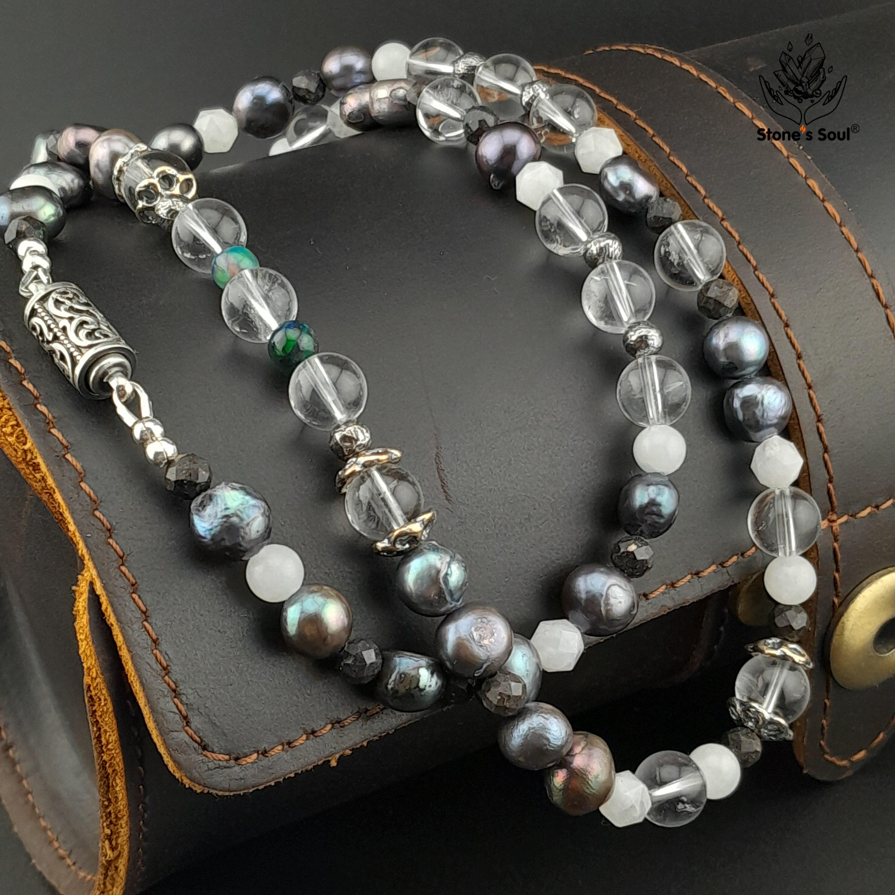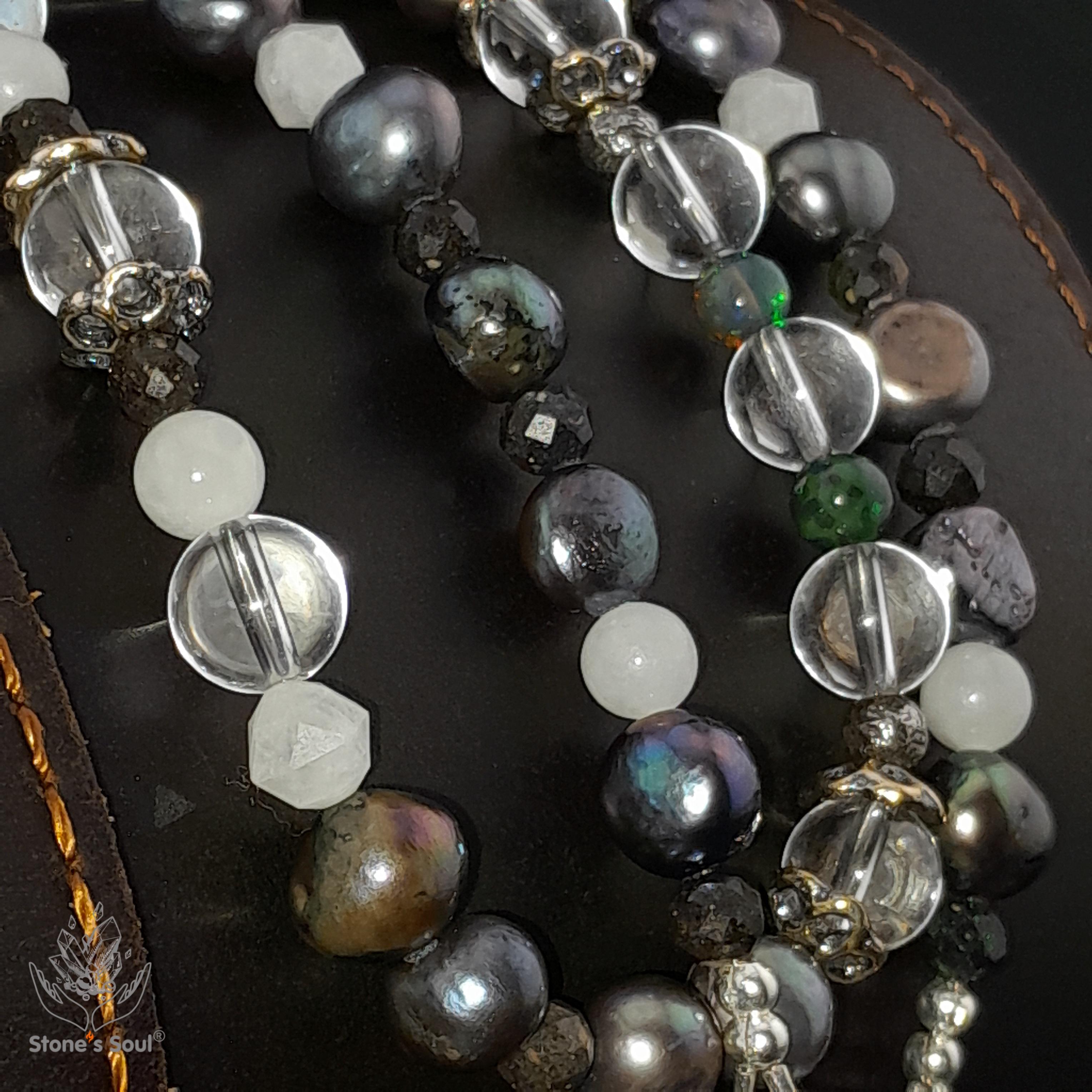 💎 Чёрный жемчуг, Прозрачный кварц, Эфиопский благородный опал, Белый нефрит, Лунный камень, Матричный опал 📿 Бусины 4-8мм ⚜ Фурнитура латунь с серебрением, латунь с патиной, серебро 🔒 Магнитный замок серебро 📍 Арт. 5000105