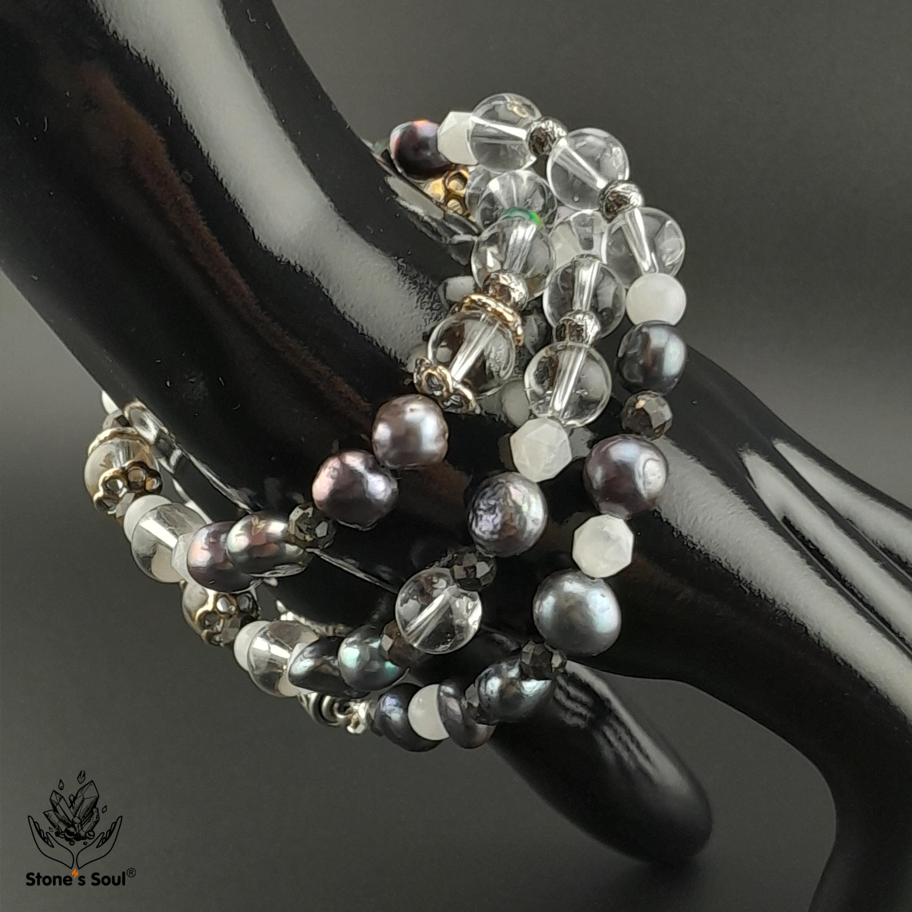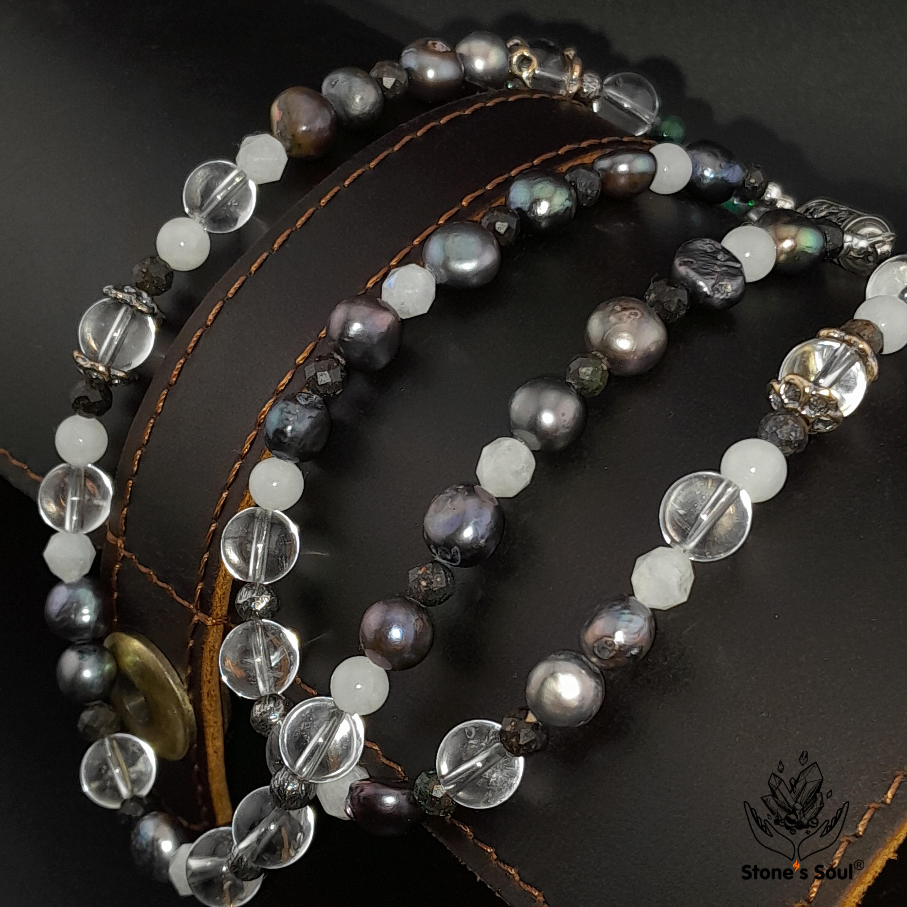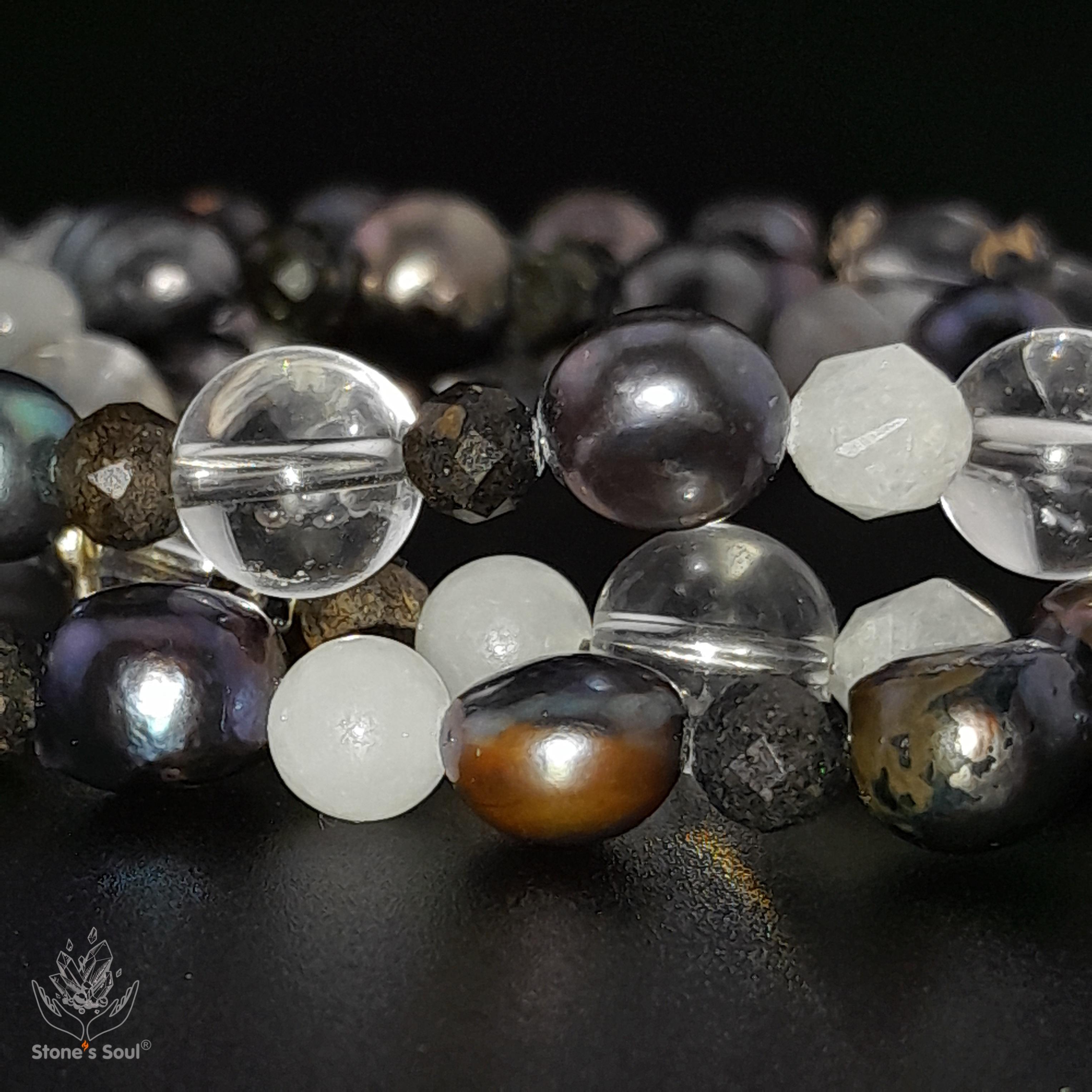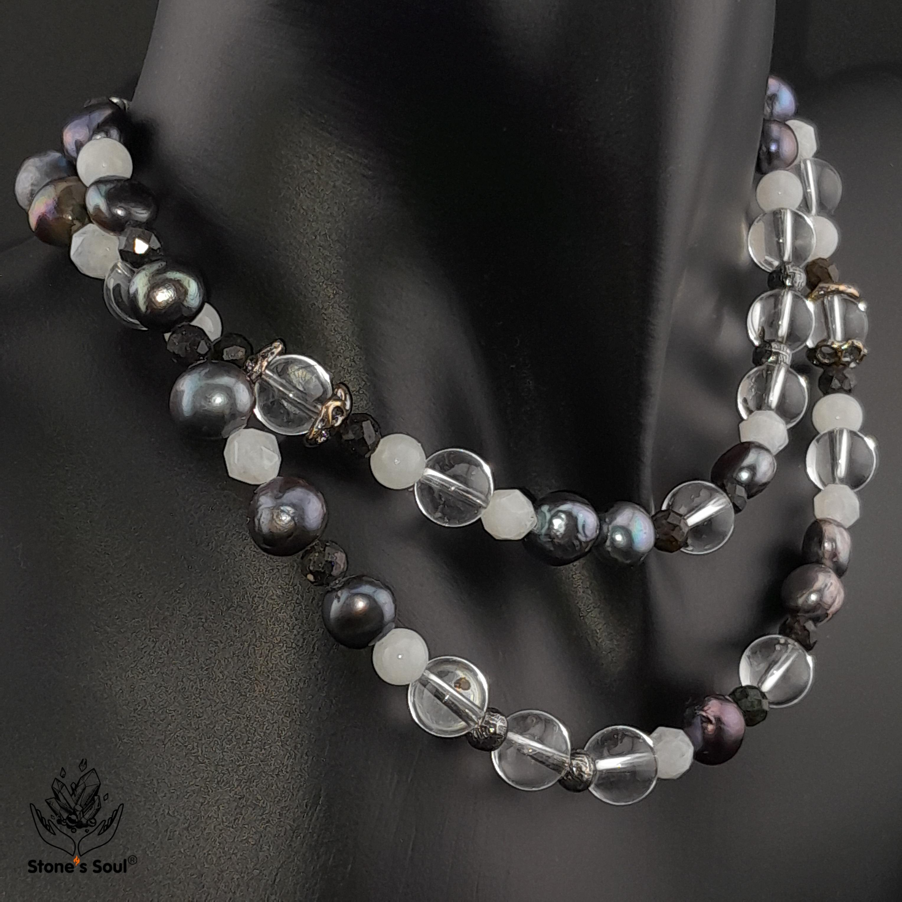 💎 Чёрный жемчуг, Прозрачный кварц, Эфиопский благородный опал, Белый нефрит, Лунный камень, Матричный опал 📿 Бусины 4-8мм ⚜ Фурнитура латунь с серебрением, латунь с патиной, серебро 🔒 Магнитный замок серебро 📍 Арт. 5000105