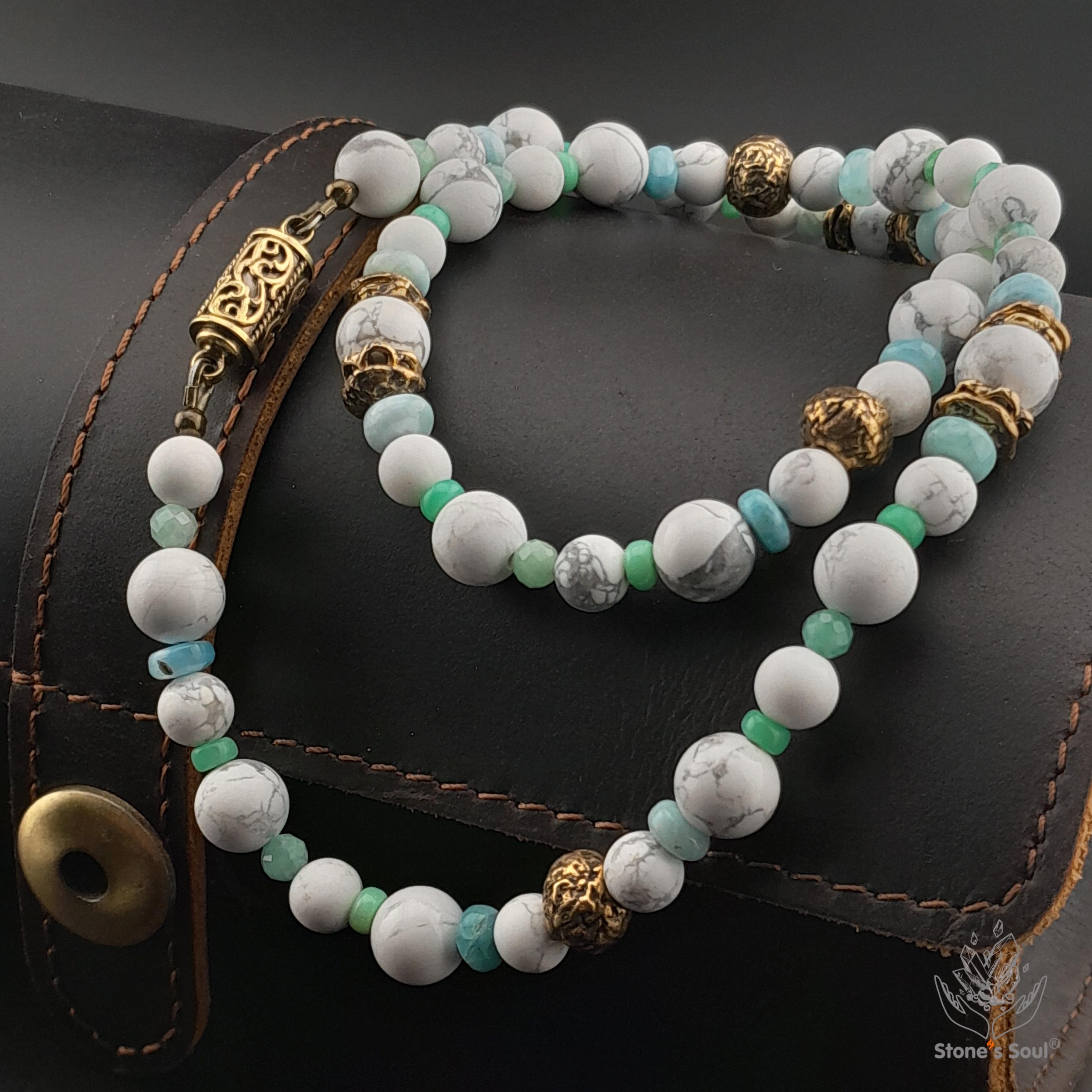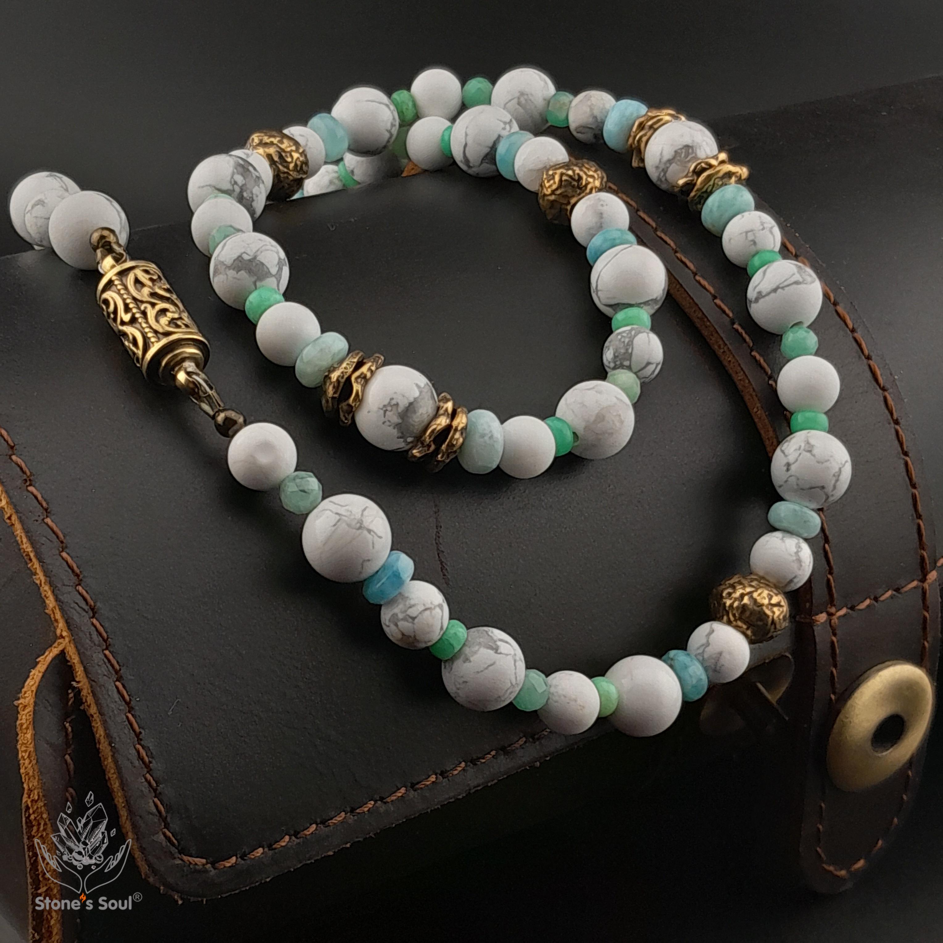 Колье из натуральных камней: Говлит, Хризопр...