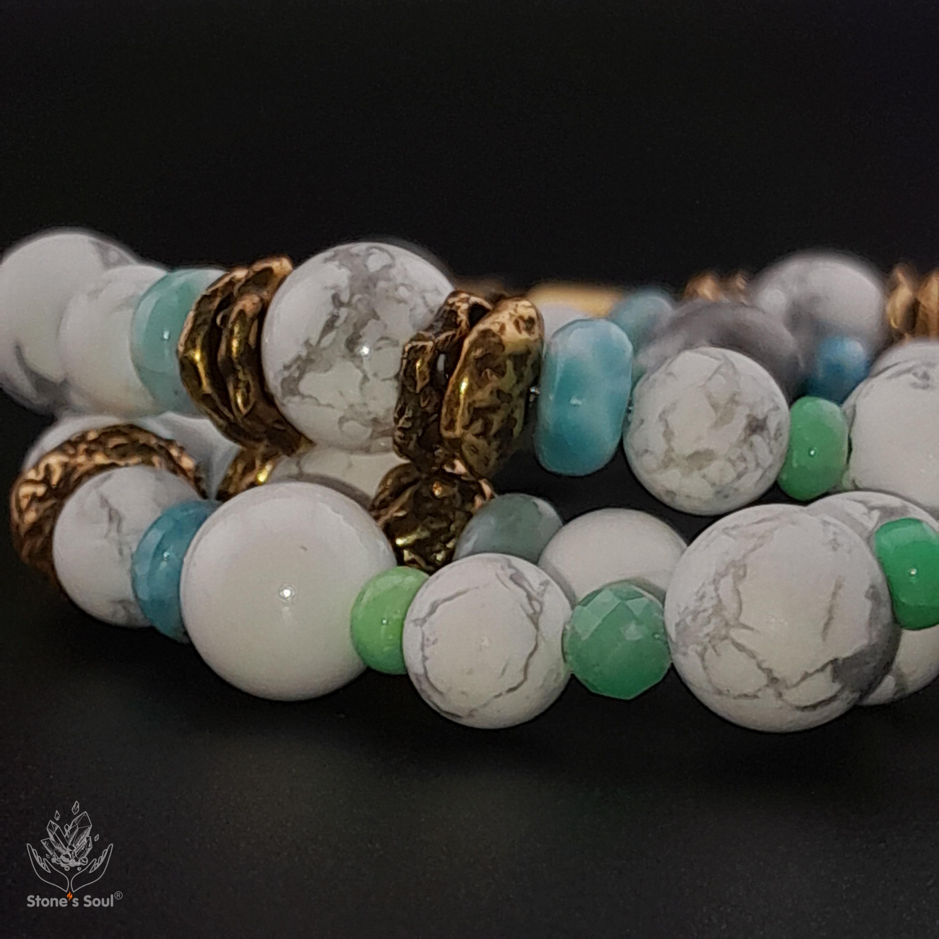 💎 Говлит, Хризопраз, Зелёный берилл (изумруд), Ларимар 📿 Бусины 4-8мм ⚜ Фурнитура латунь 🔒 Магнитный замок латунь 📍 Арт. 5000103