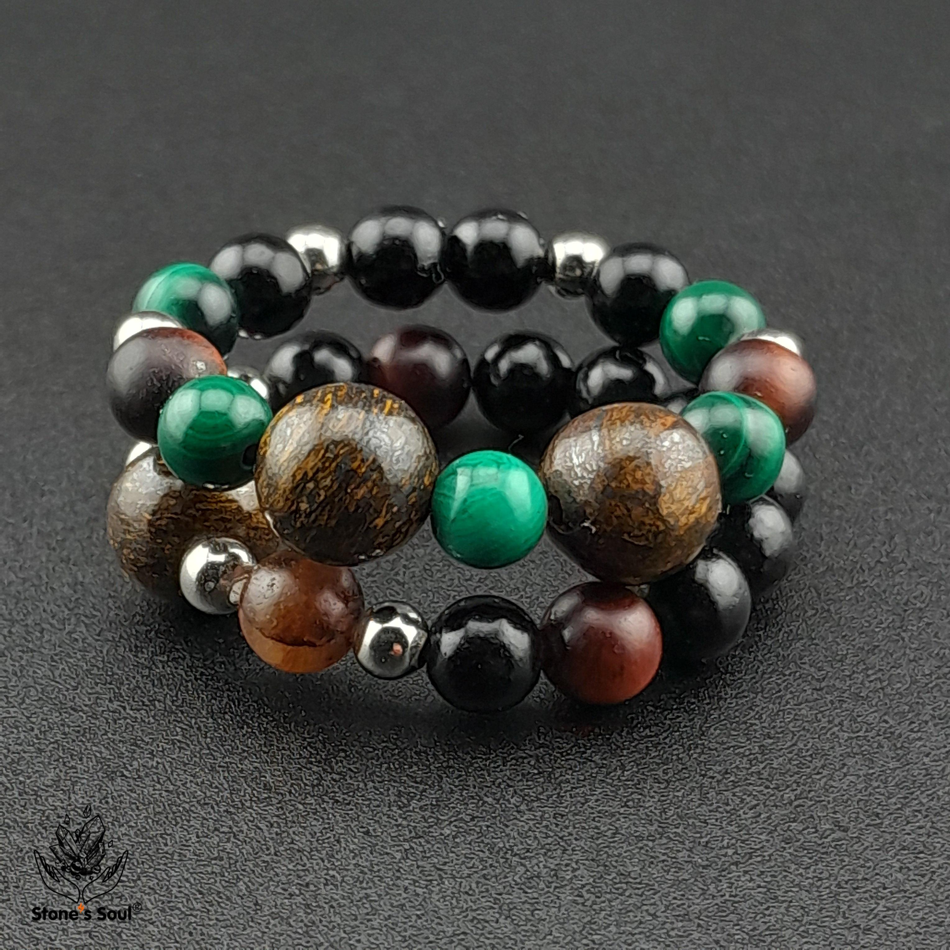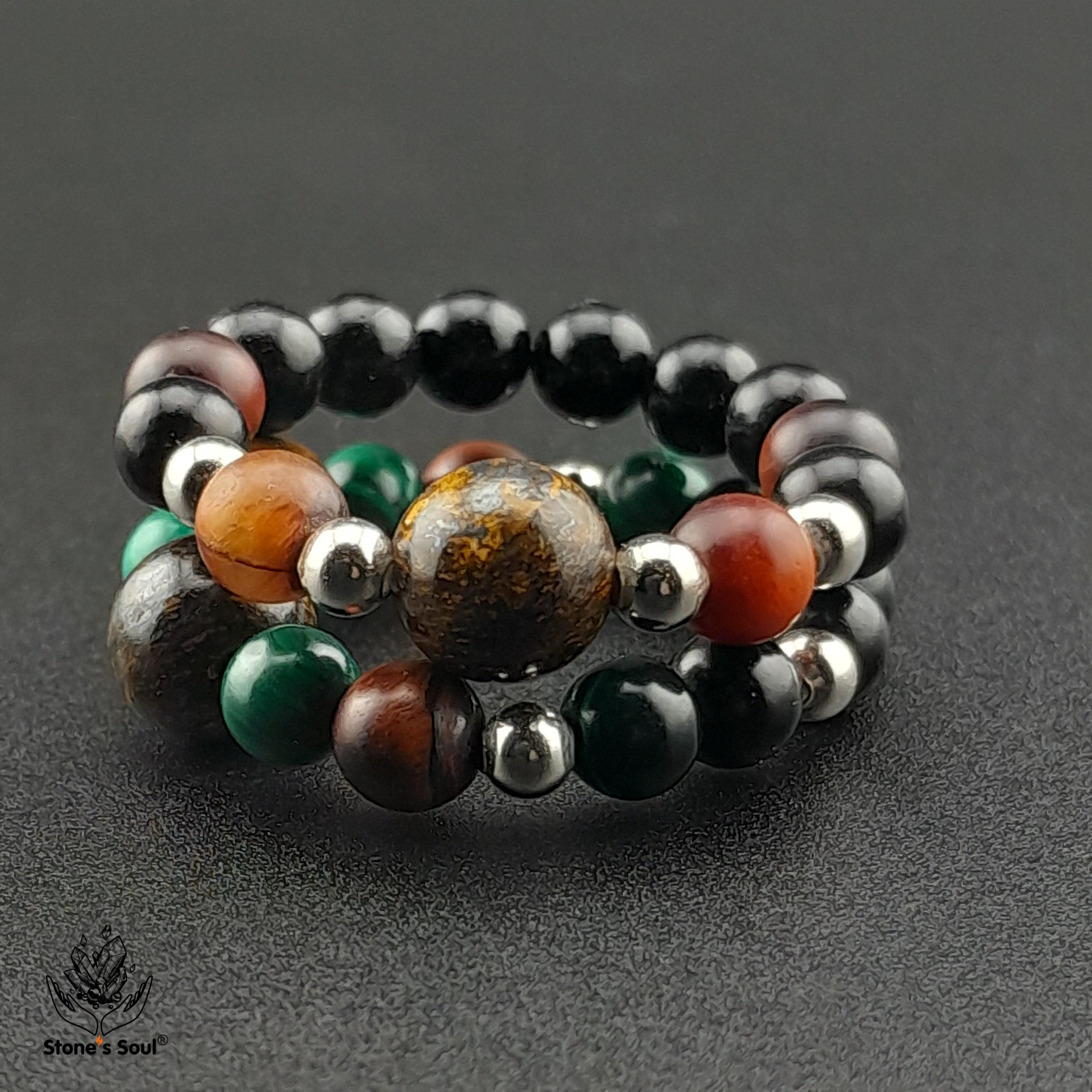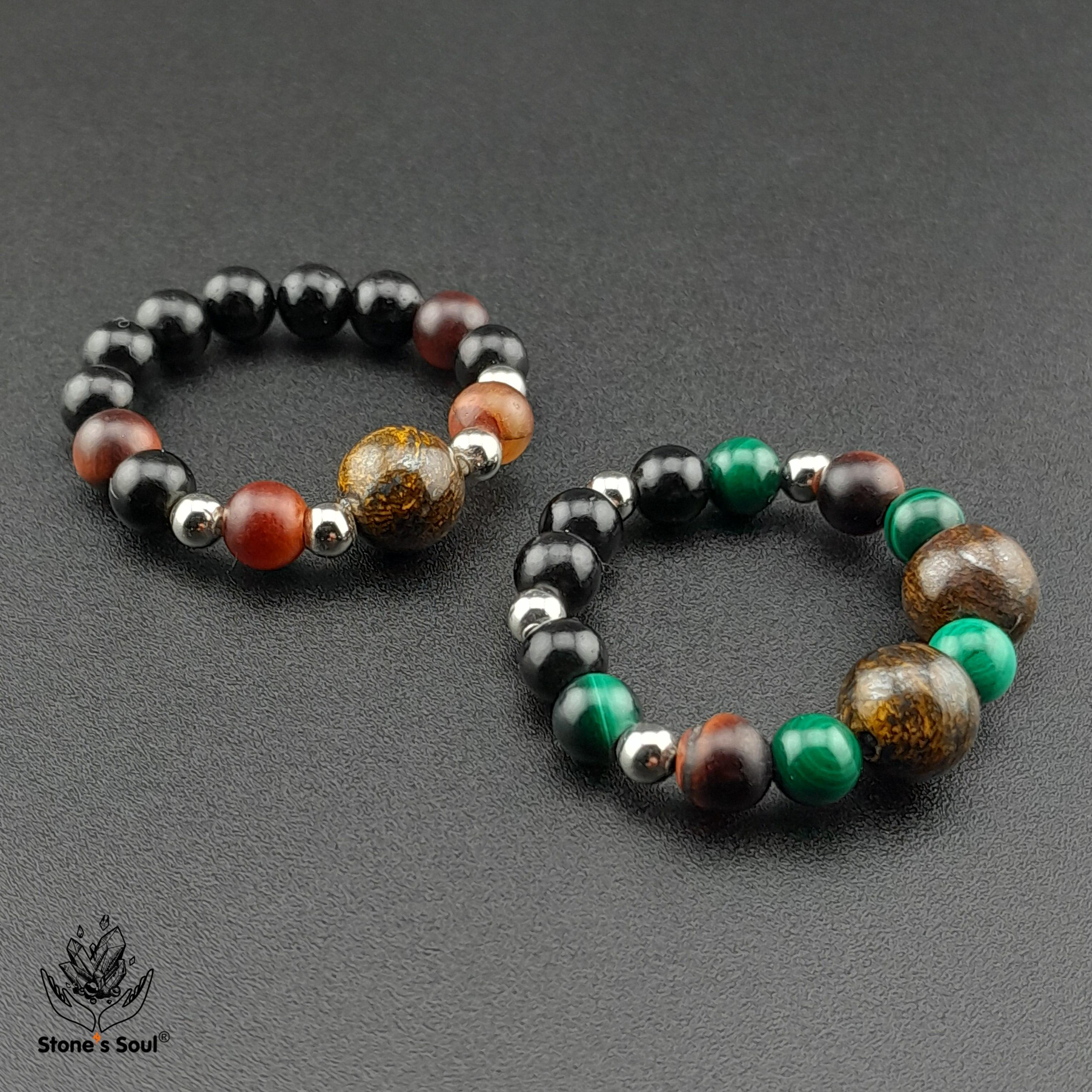 💎 Гагат, Бронзит, Малахит, Бычий глаз ⚜ комплект из 2х колечек на большой или любой другой пальчик 📿 Бусины 4-6мм ⚜ Фурнитура серебро 📍 Арт. 6000100