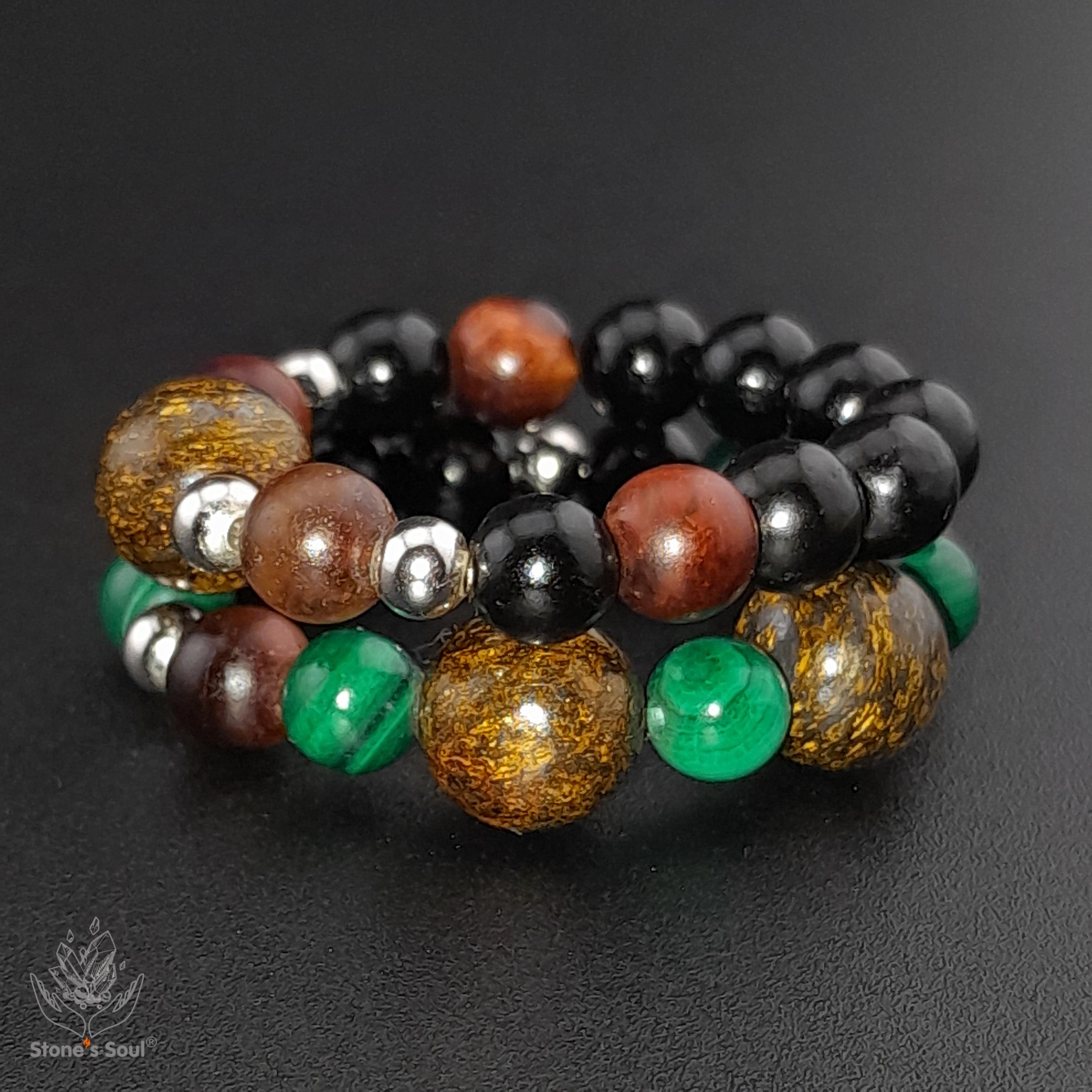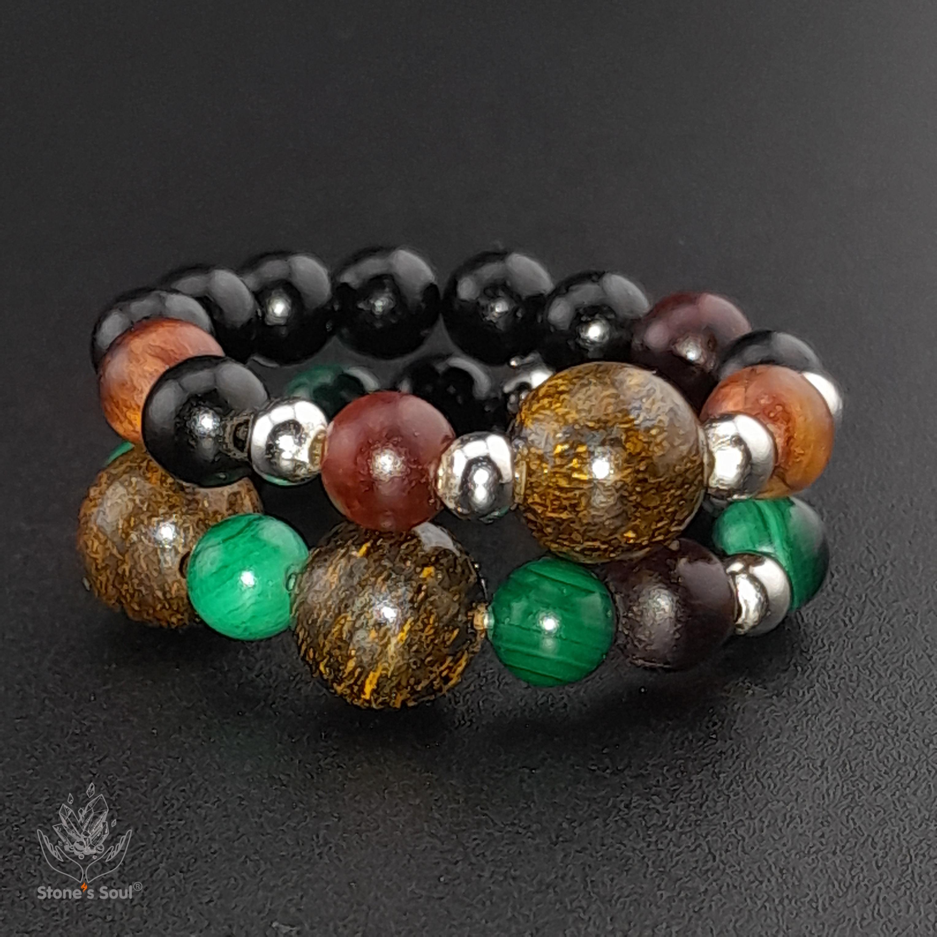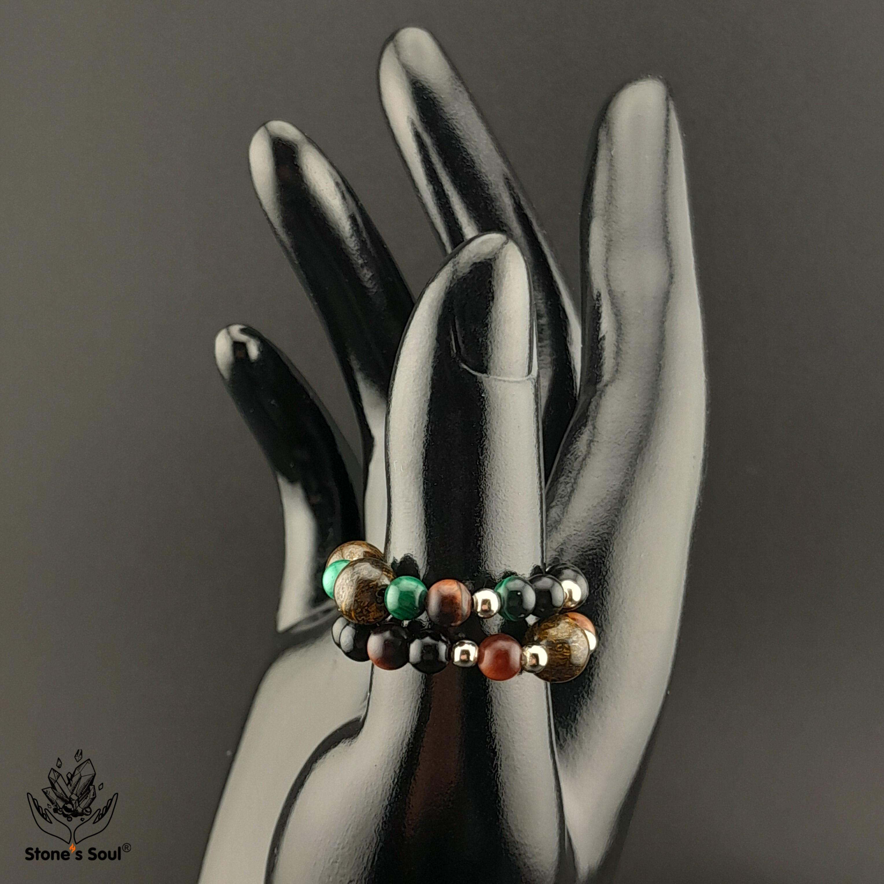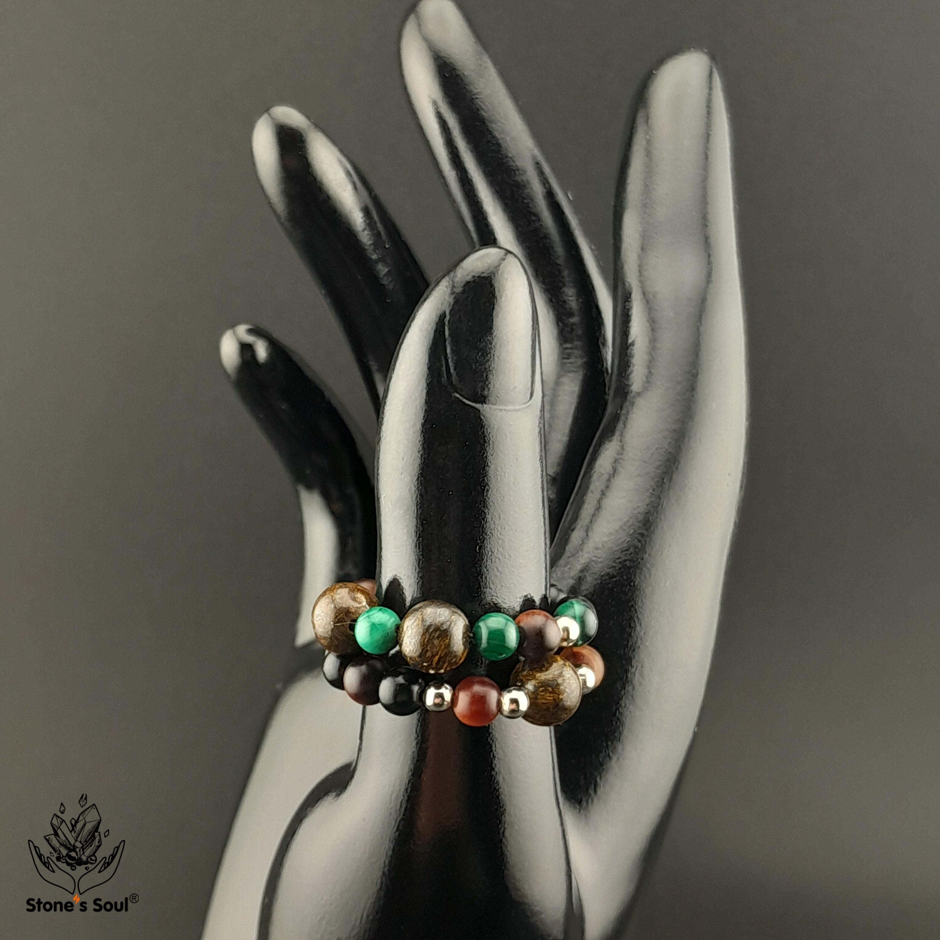 💎 Гагат, Бронзит, Малахит, Бычий глаз ⚜ комплект из 2х колечек на большой или любой другой пальчик 📿 Бусины 4-6мм ⚜ Фурнитура серебро 📍 Арт. 6000100