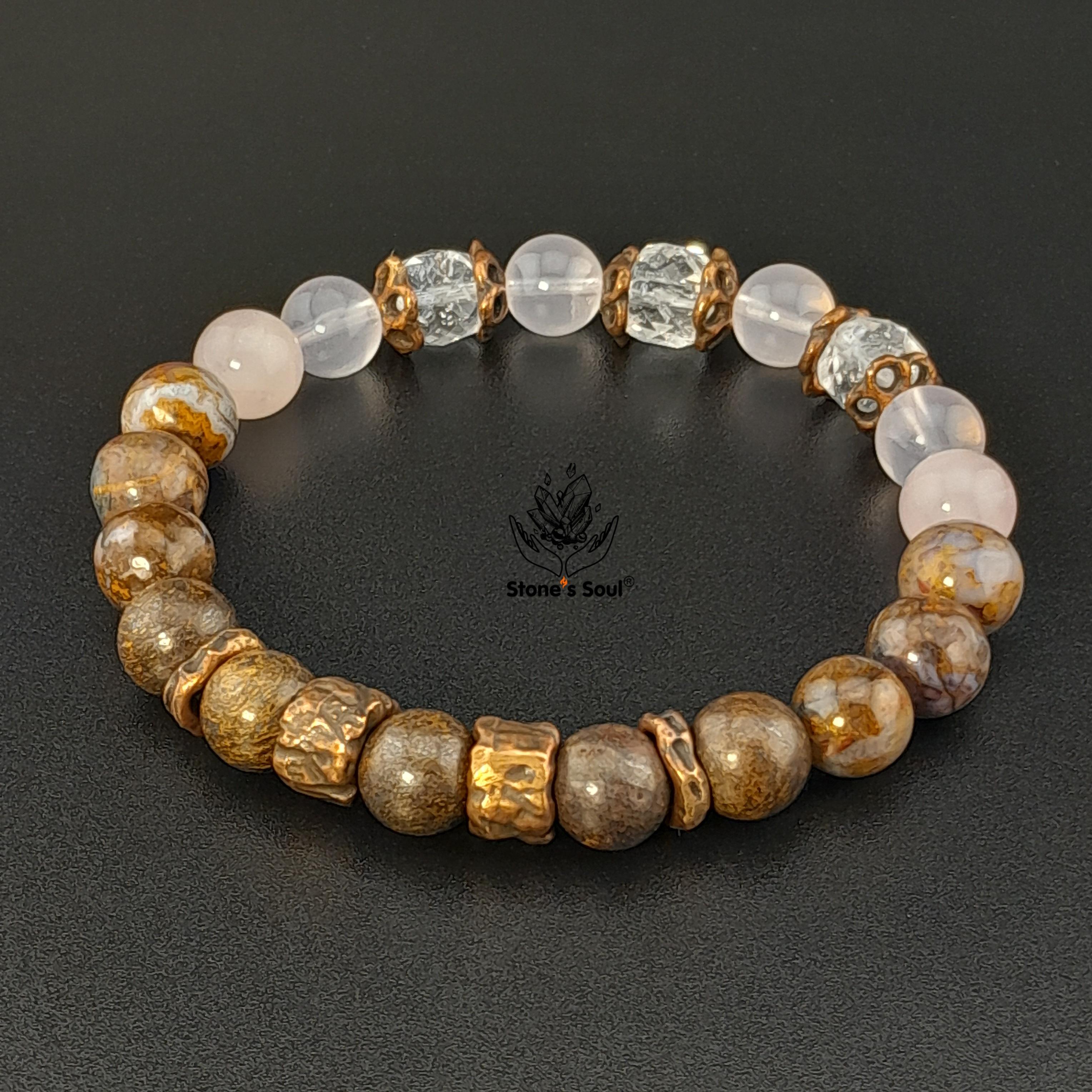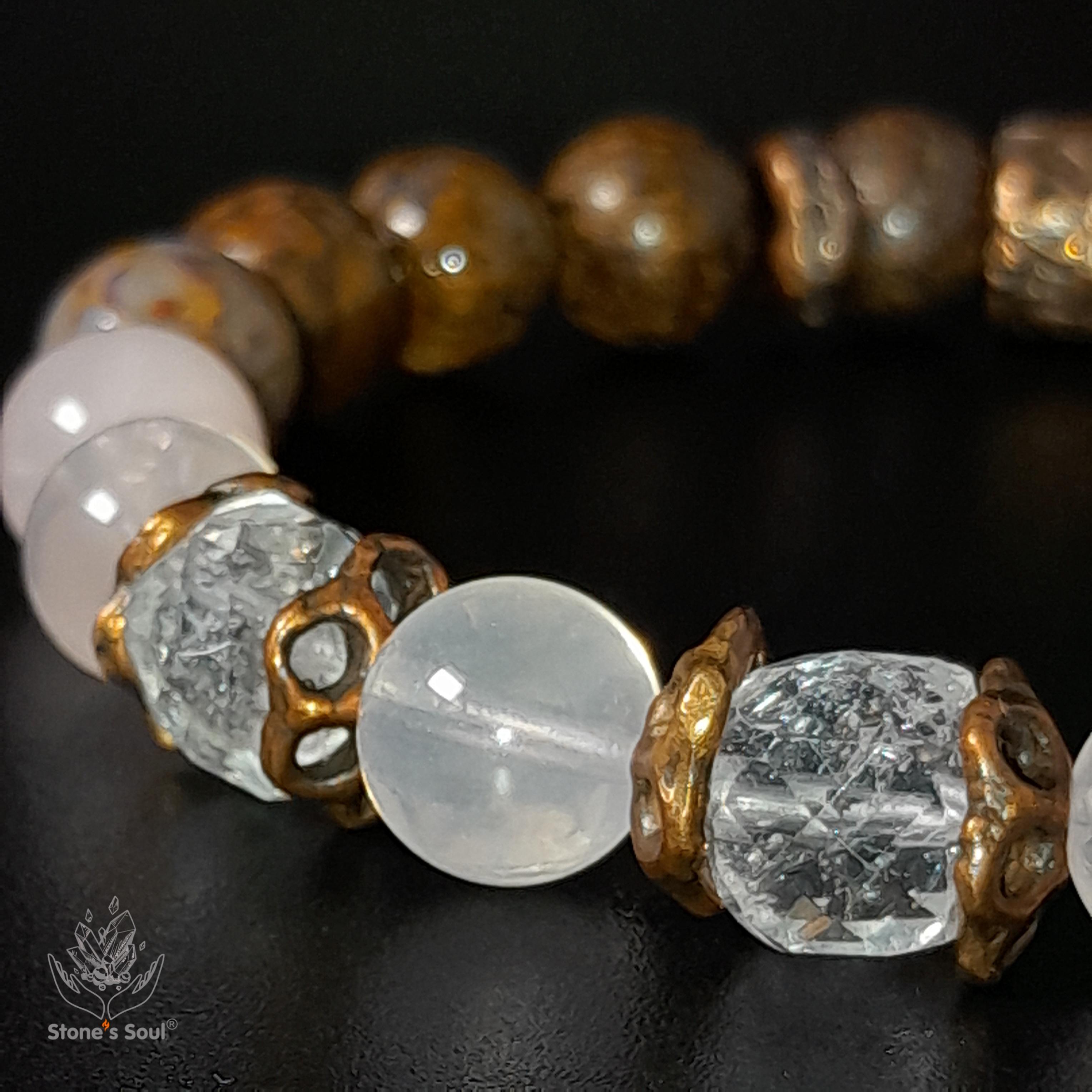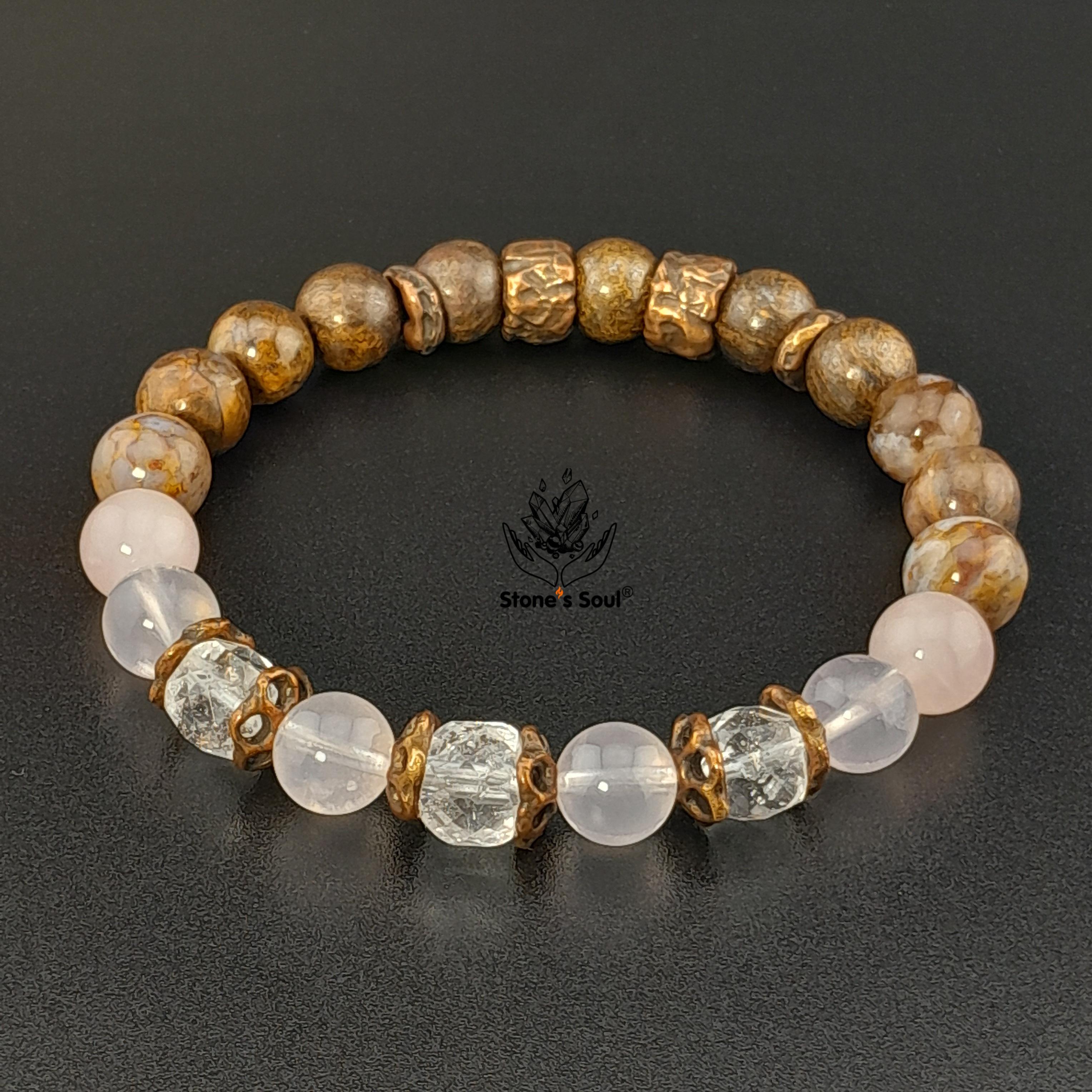 💎 Бронзит, Петерсит, Розовый кварц, Горный хрусталь 📿 Бусины 8 мм ⚜ Фурнитура бронза Артикул 1000106