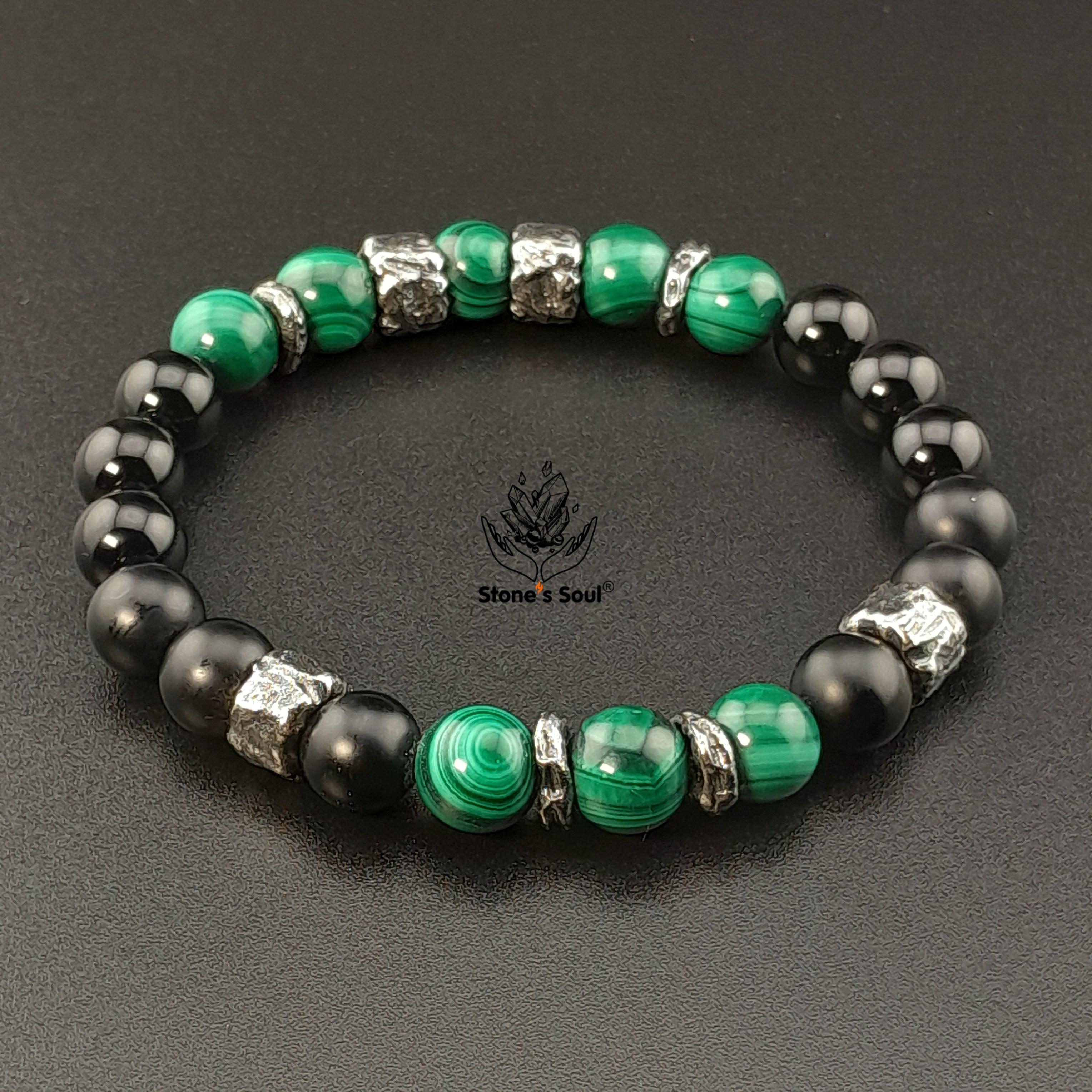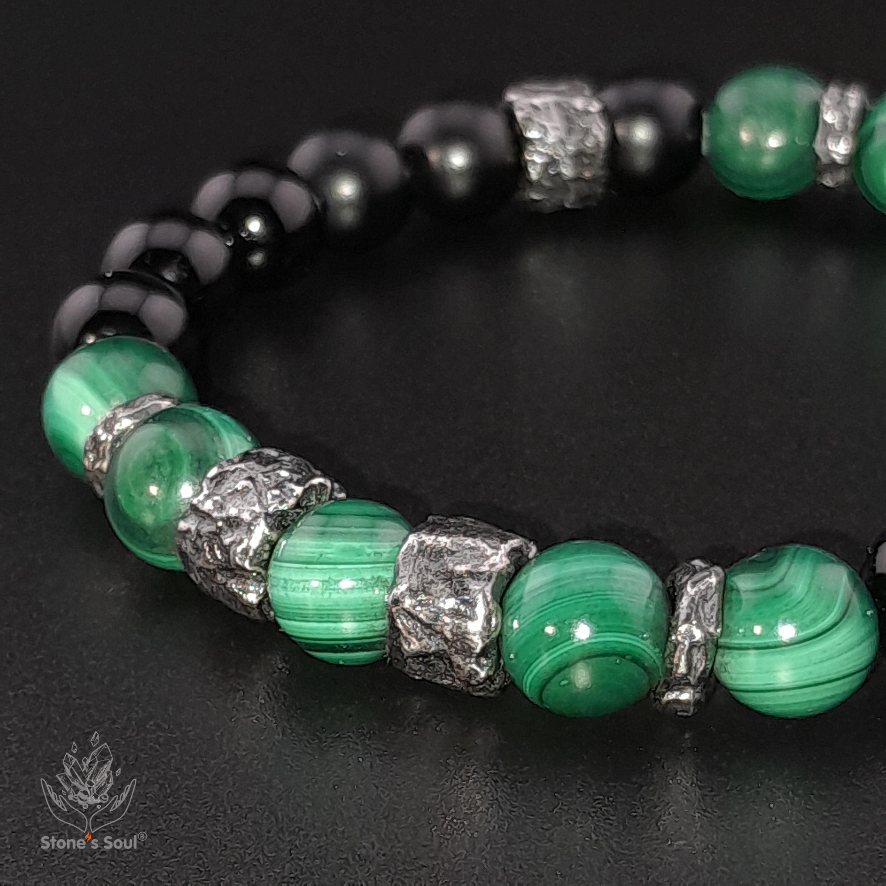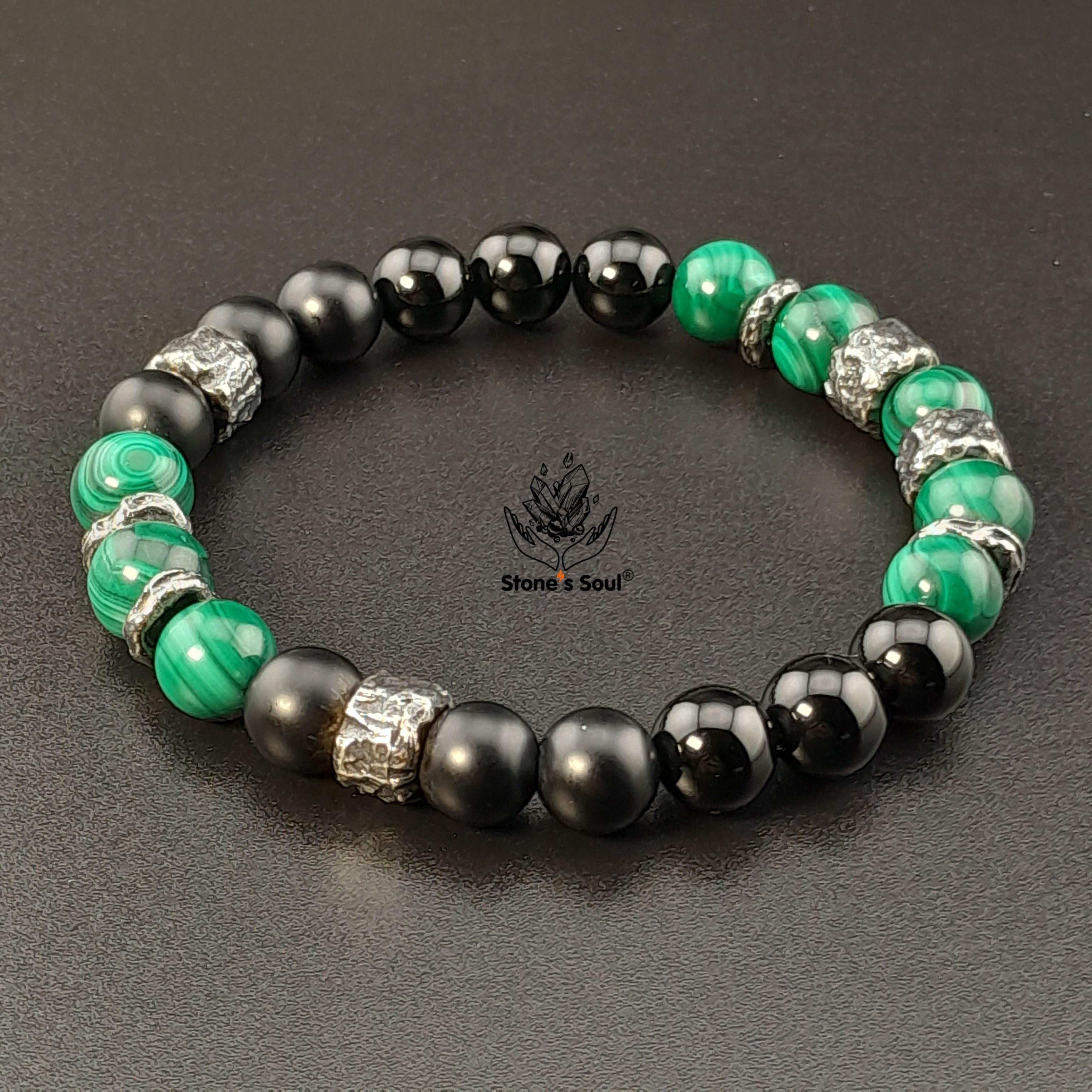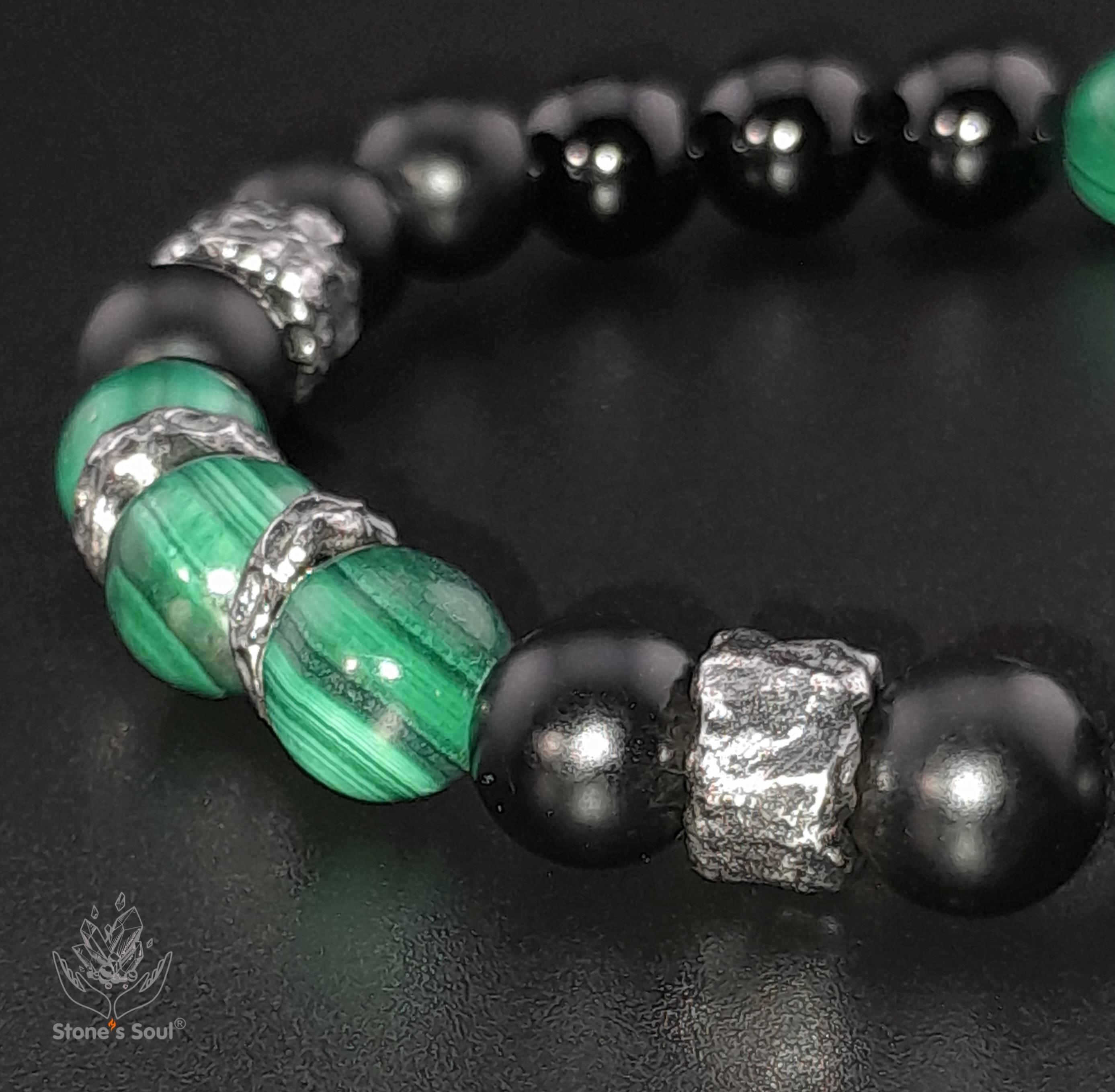 💎 Малахит, Чёрный агат 📿 Бусины 8 мм ⚜ Фурнитура латунь с серебрением Артикул 1000107