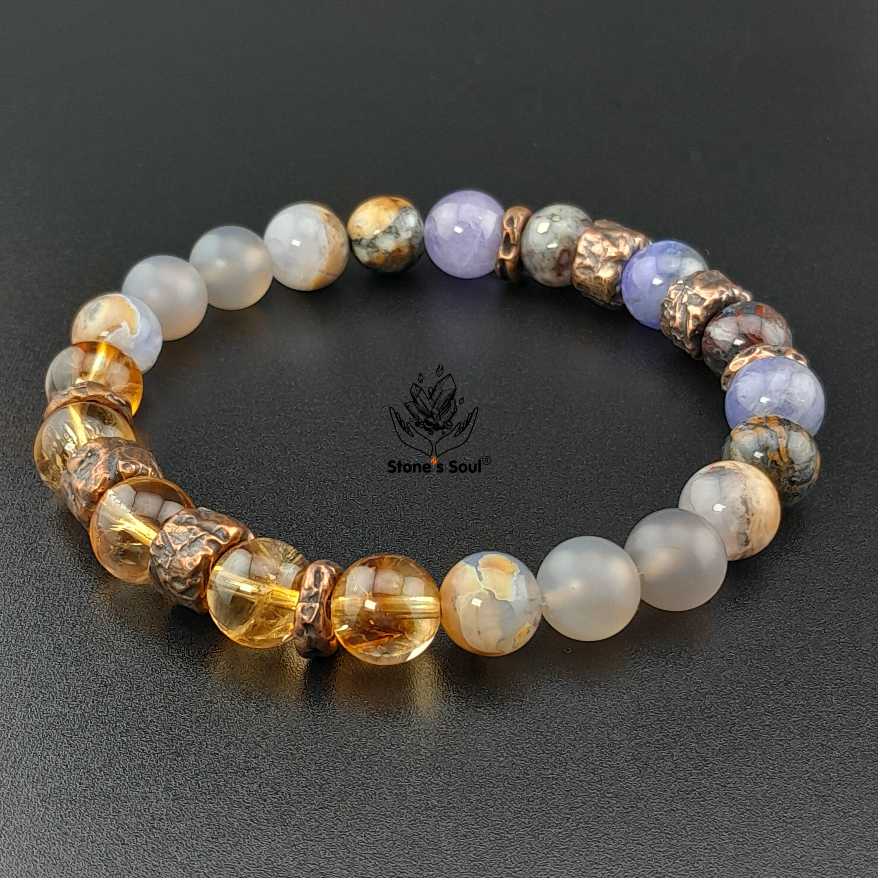 💎 Цитрин, Халцедон, Петерсит, Танзанит 📿 Бусины 8 мм ⚜ Фурнитура бронза Артикул 1000109