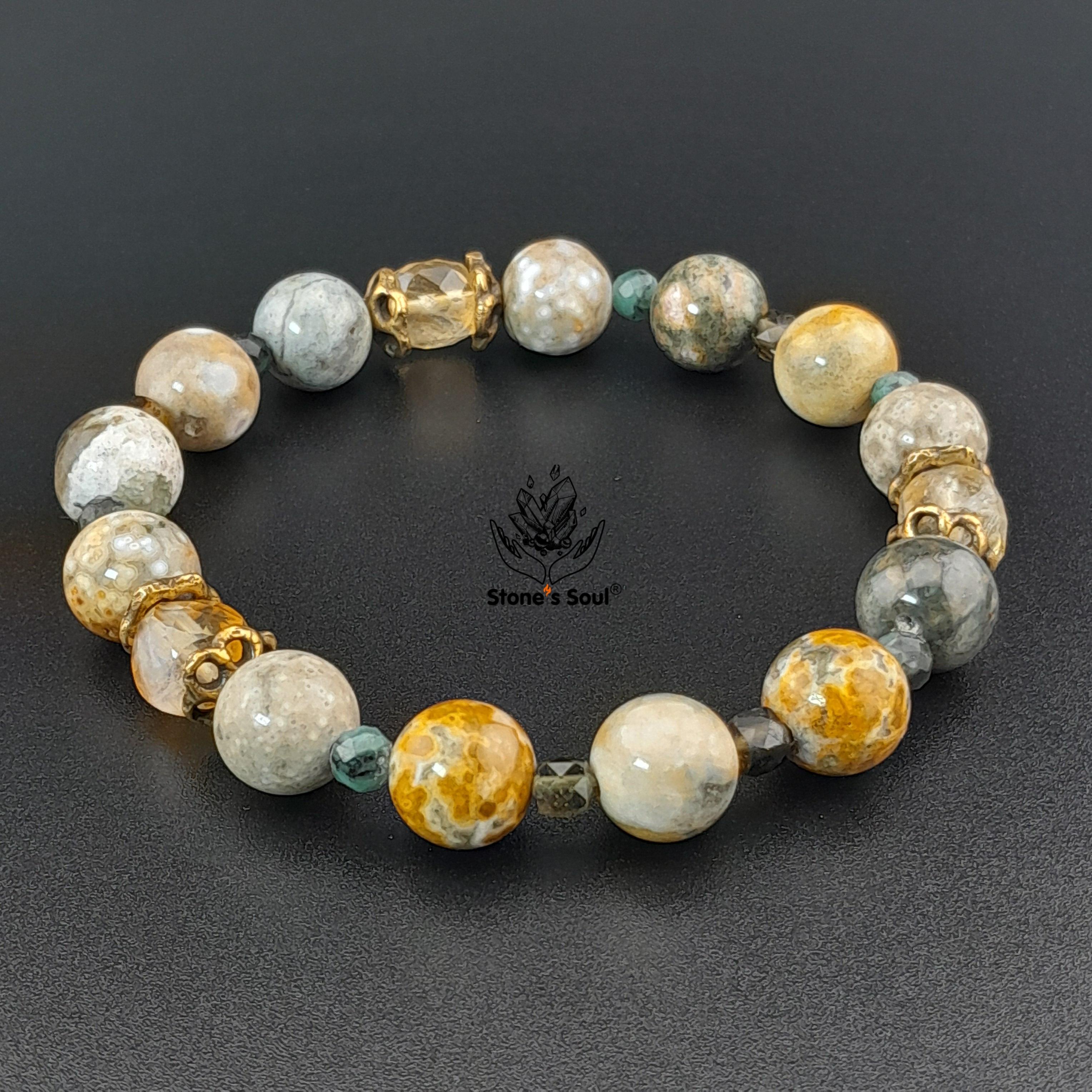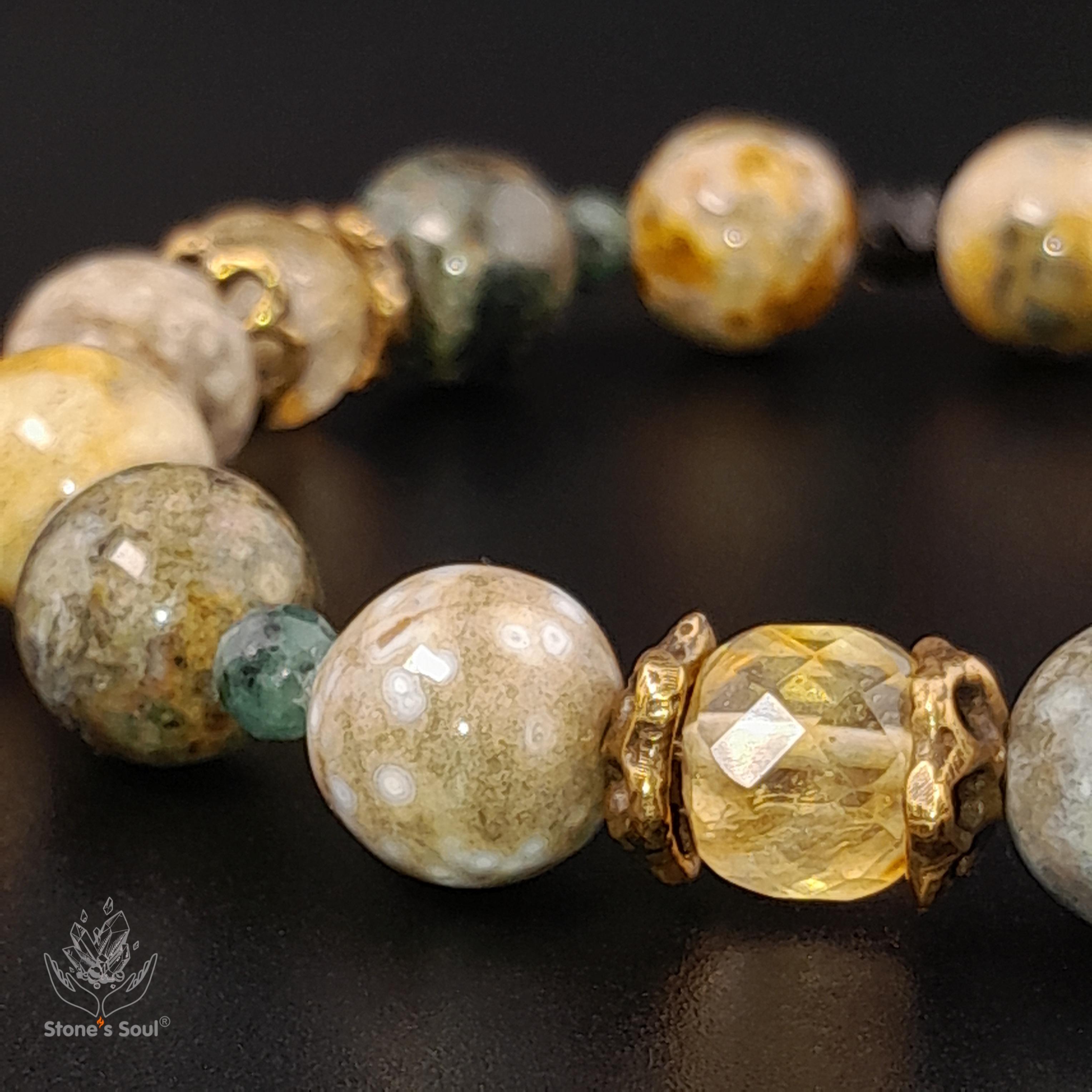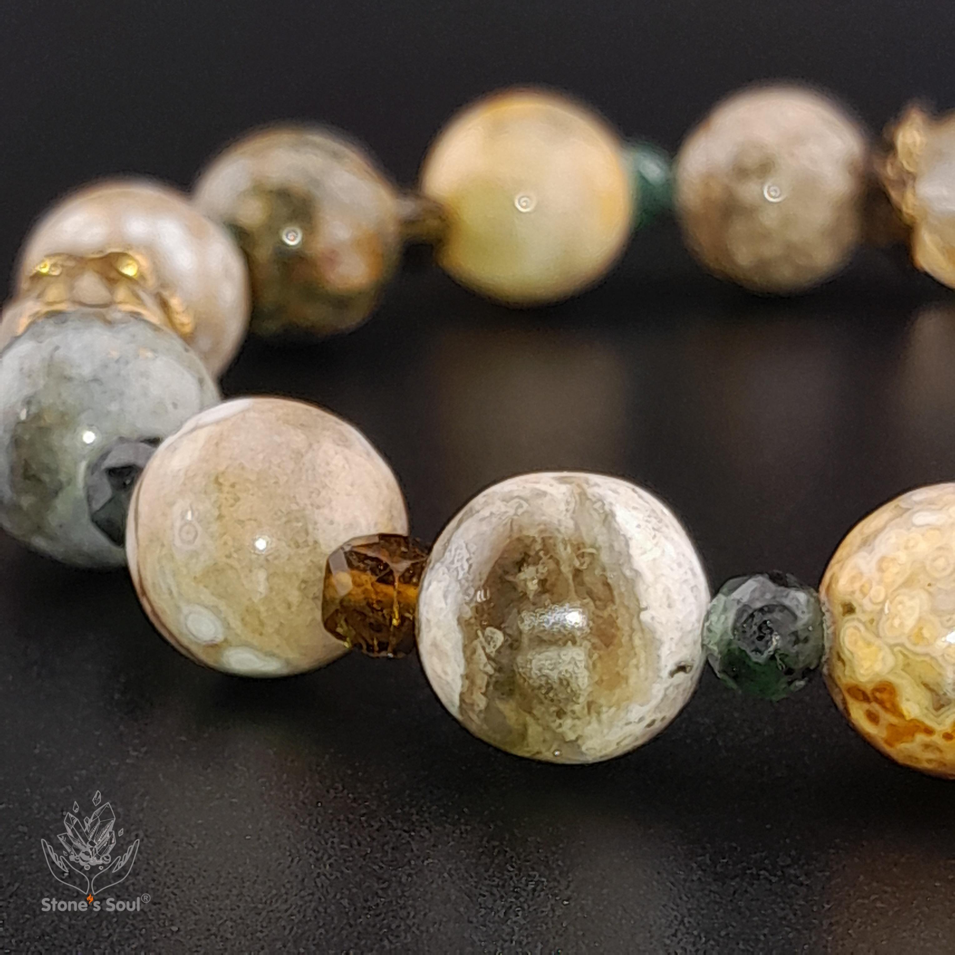 💎 Агат океанический, Цитрин, Турмалин, Берилл (изумруд) 📿 Бусины 9 мм ⚜ Фурнитура латунь Артикул 1000114