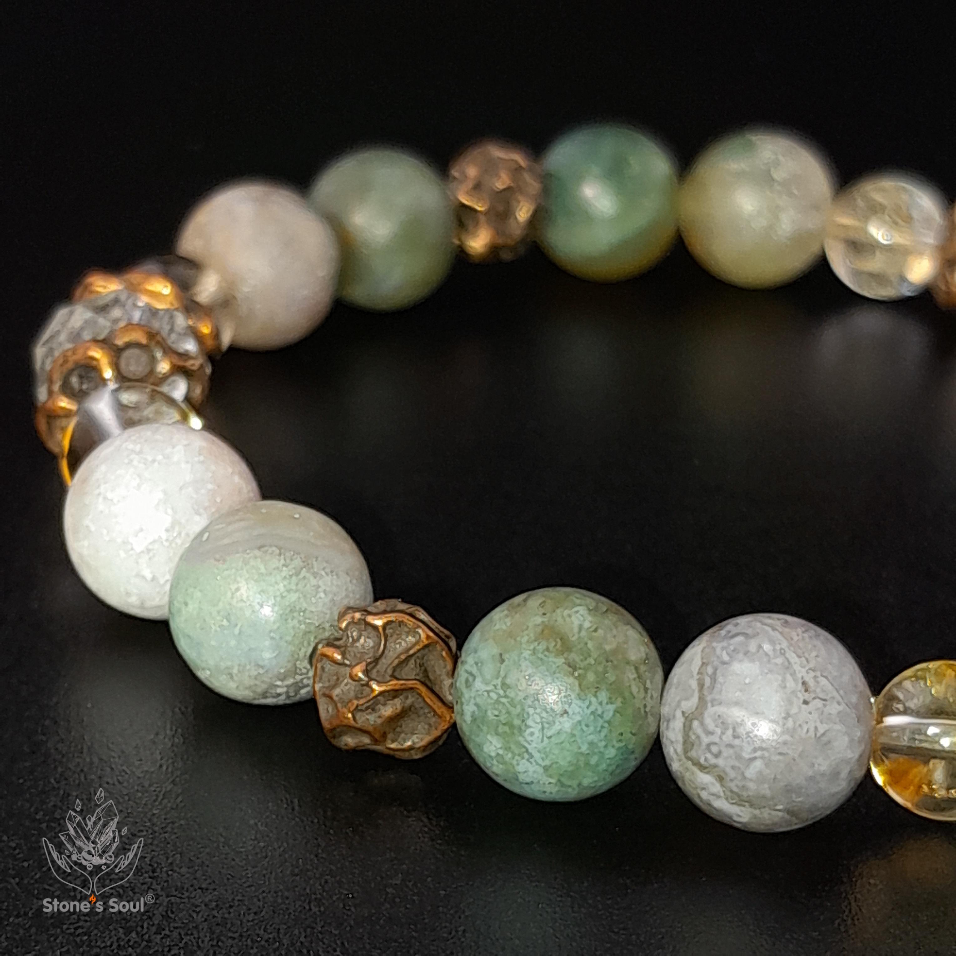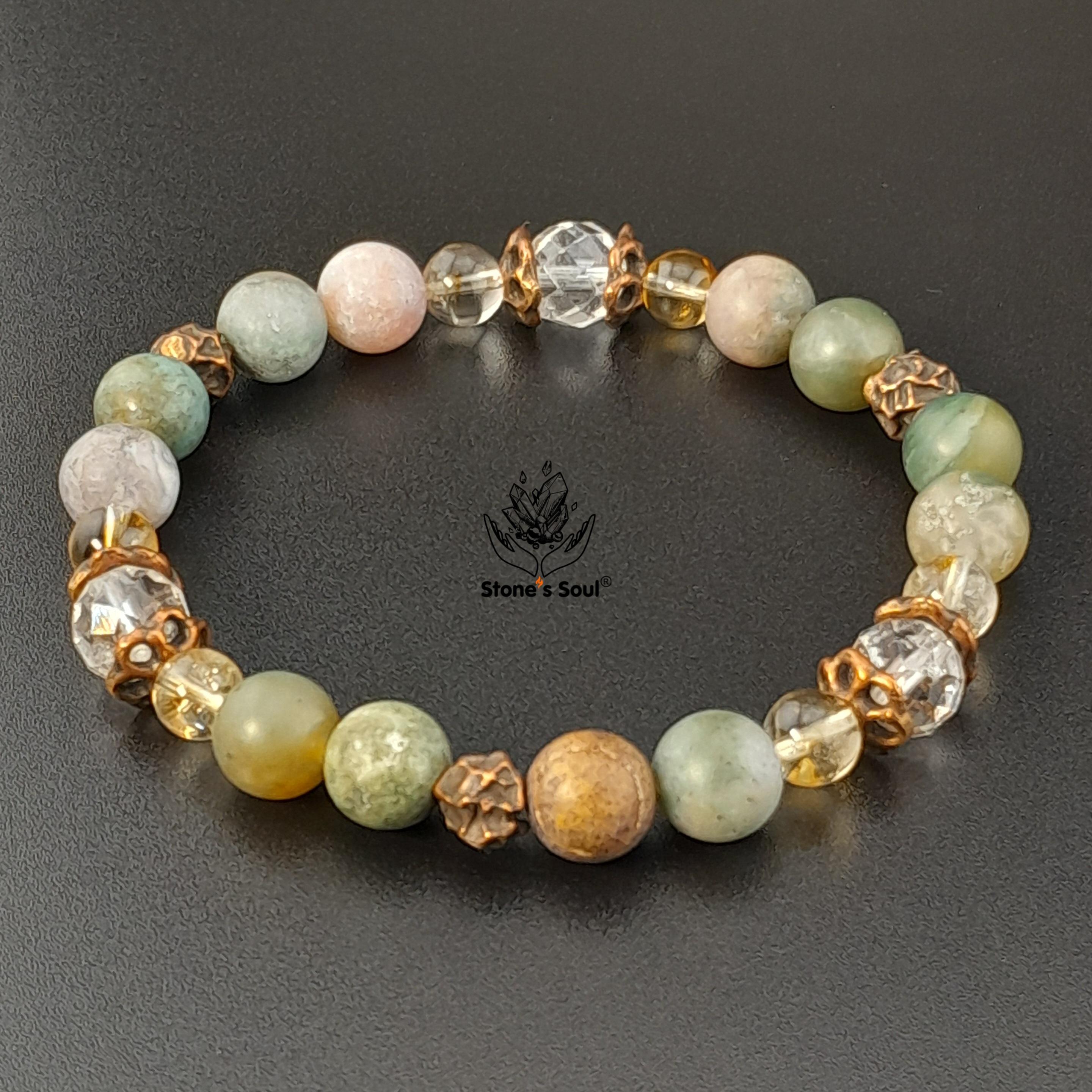 💎 Агат индийский, Цитрин, Горный хрусталь 📿 Бусины 8 мм ⚜ Фурнитура бронза Артикул 1000119