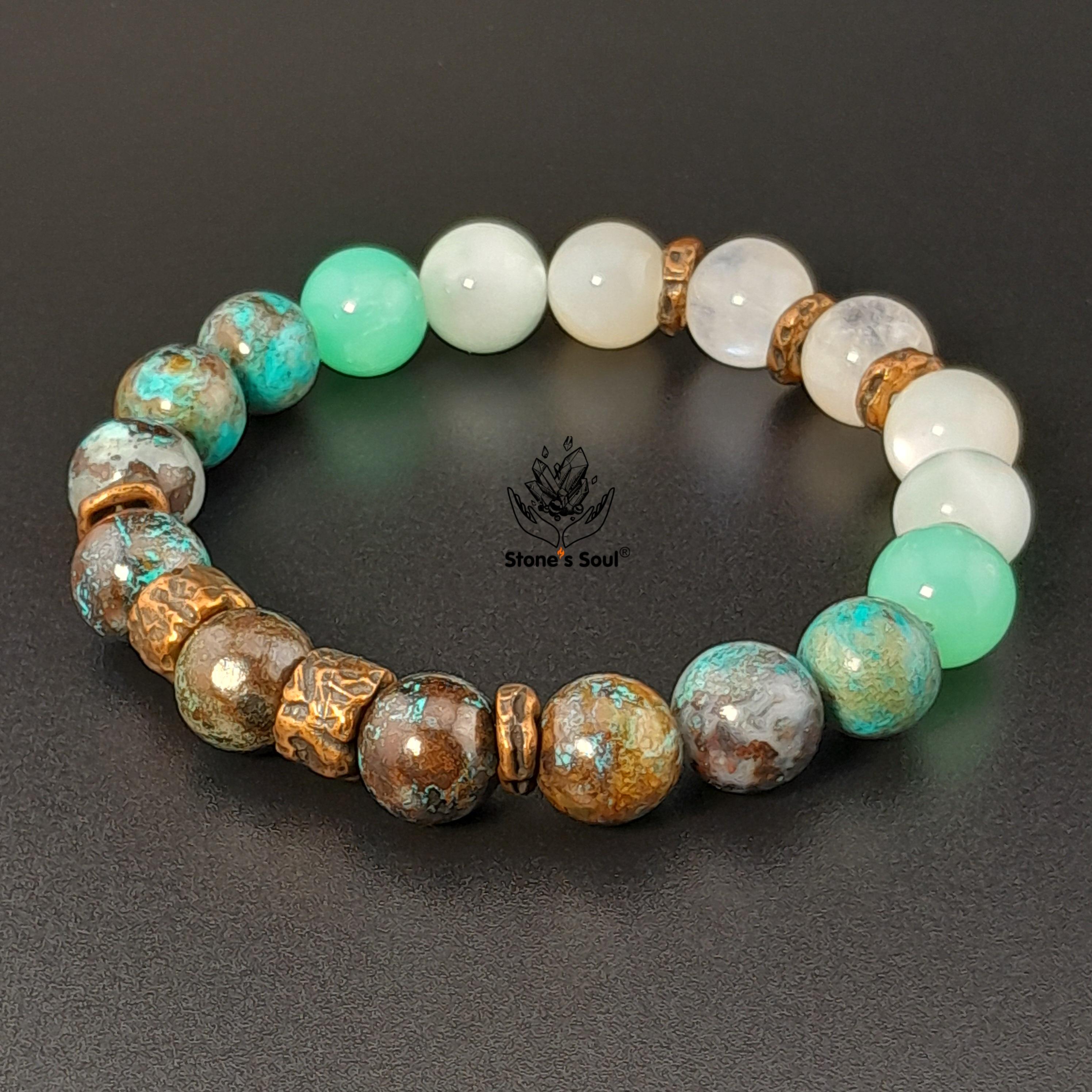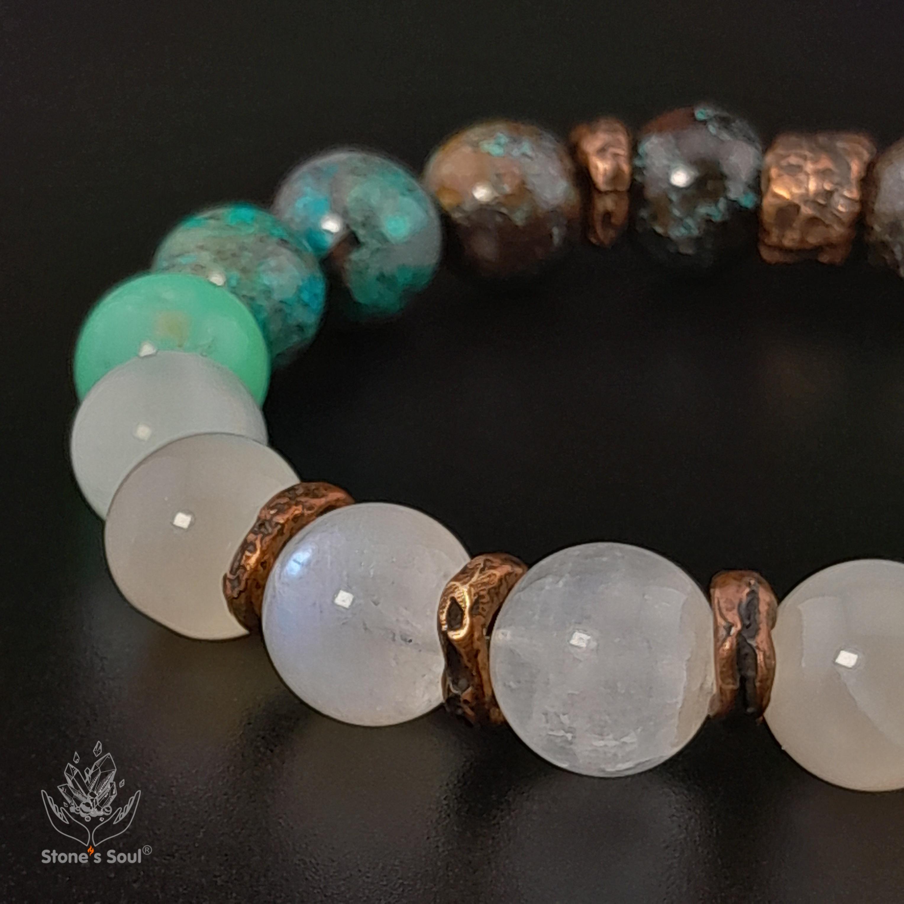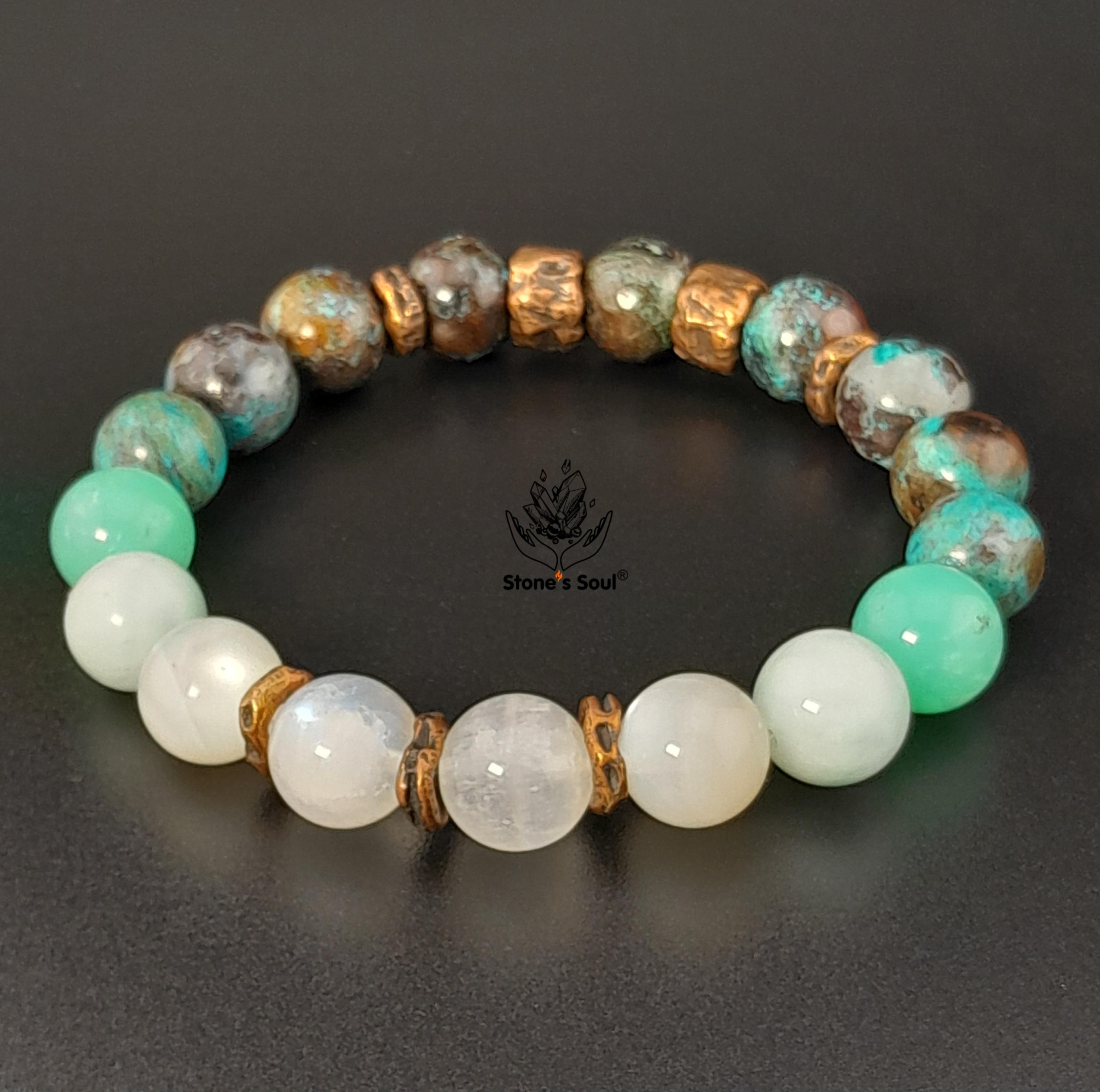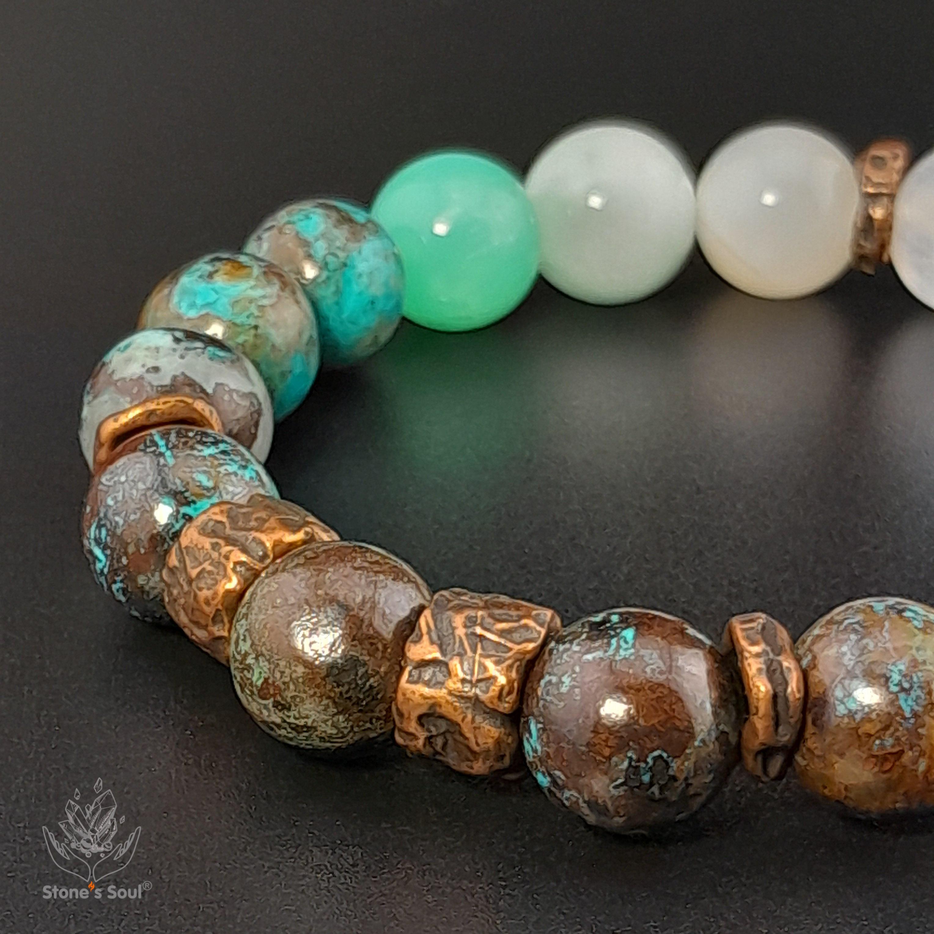 💎 Хризоколла, Хризопраз, Ангелит, Беломорит, Лунный камень 📿 Бусины 10 мм ⚜ Фурнитура бронза Артикул 1000120
