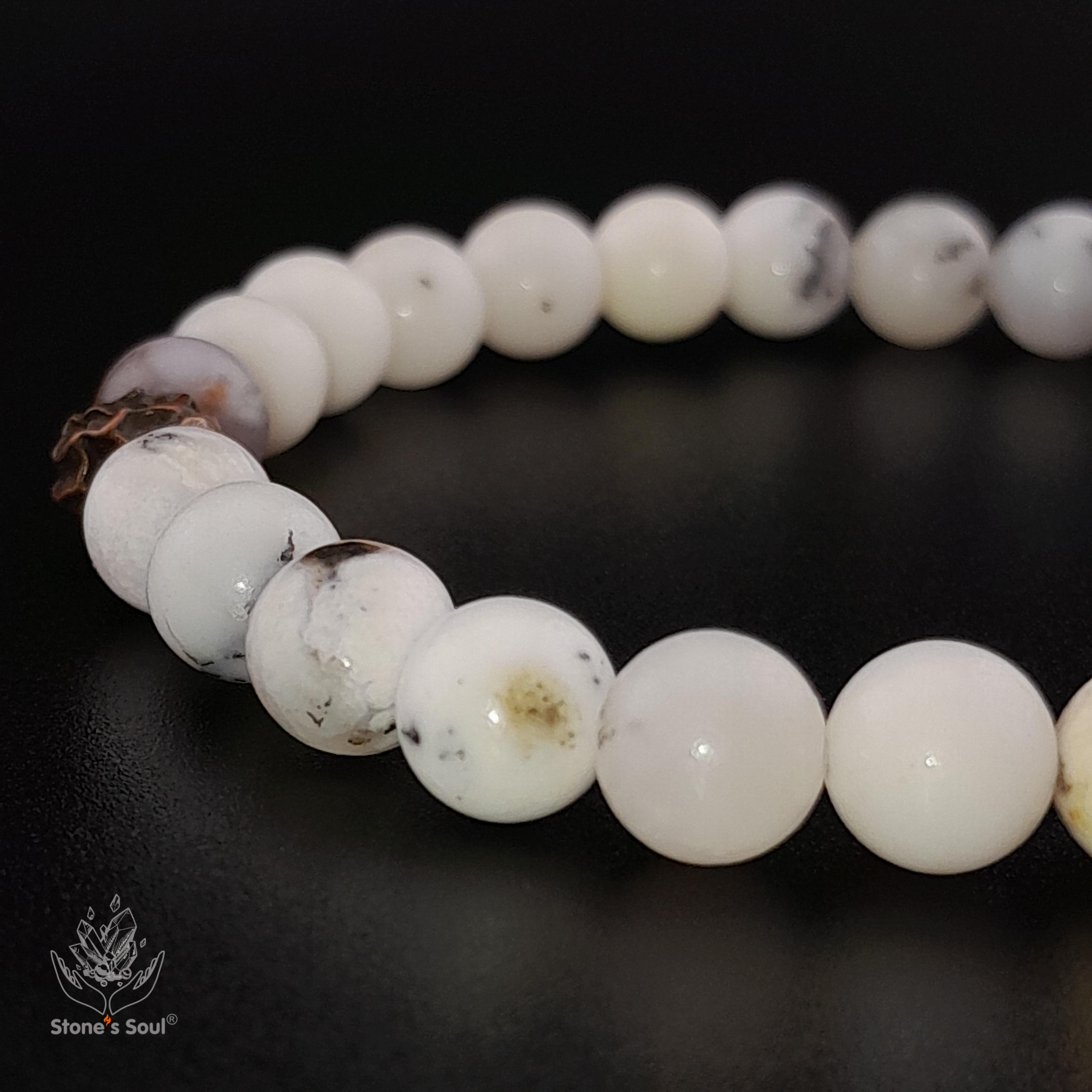 Браслет из натуральных камней: белый дендрик...
