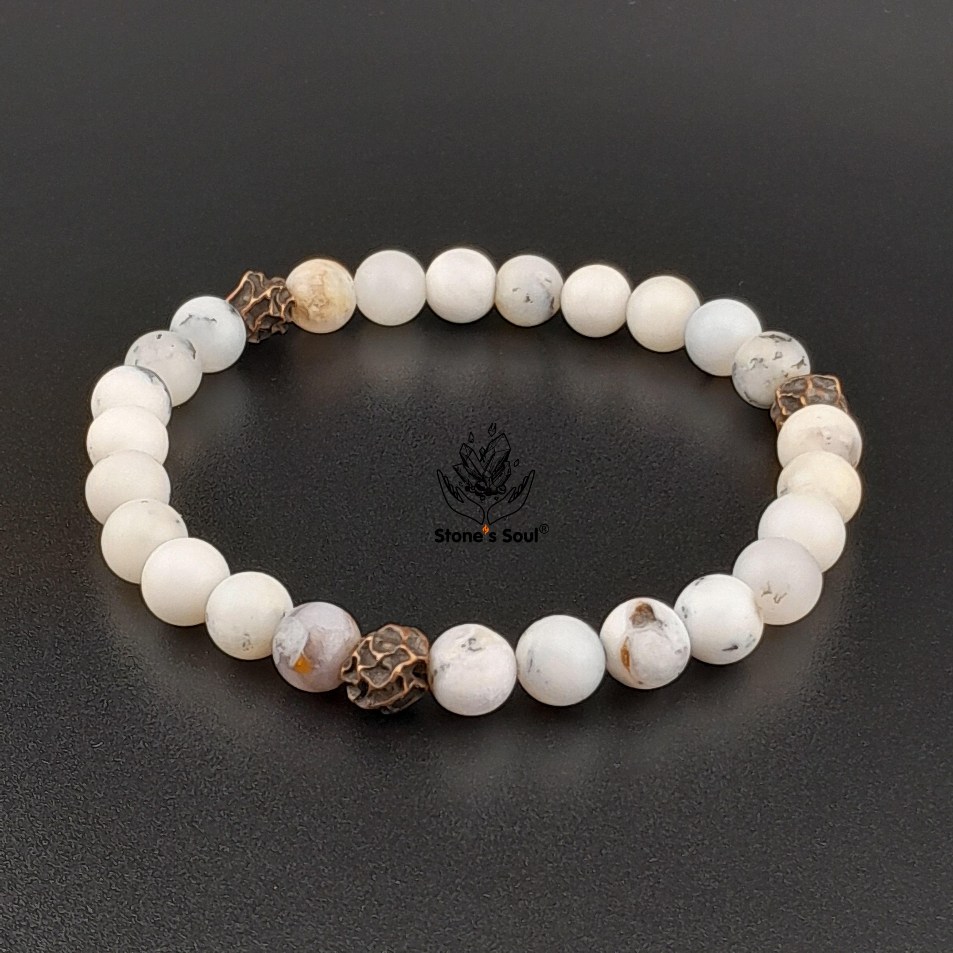 💎 Белый дендрик опал 📿 Бусины 6 мм ⚜ Фурнитура бронза Артикул 1000122
