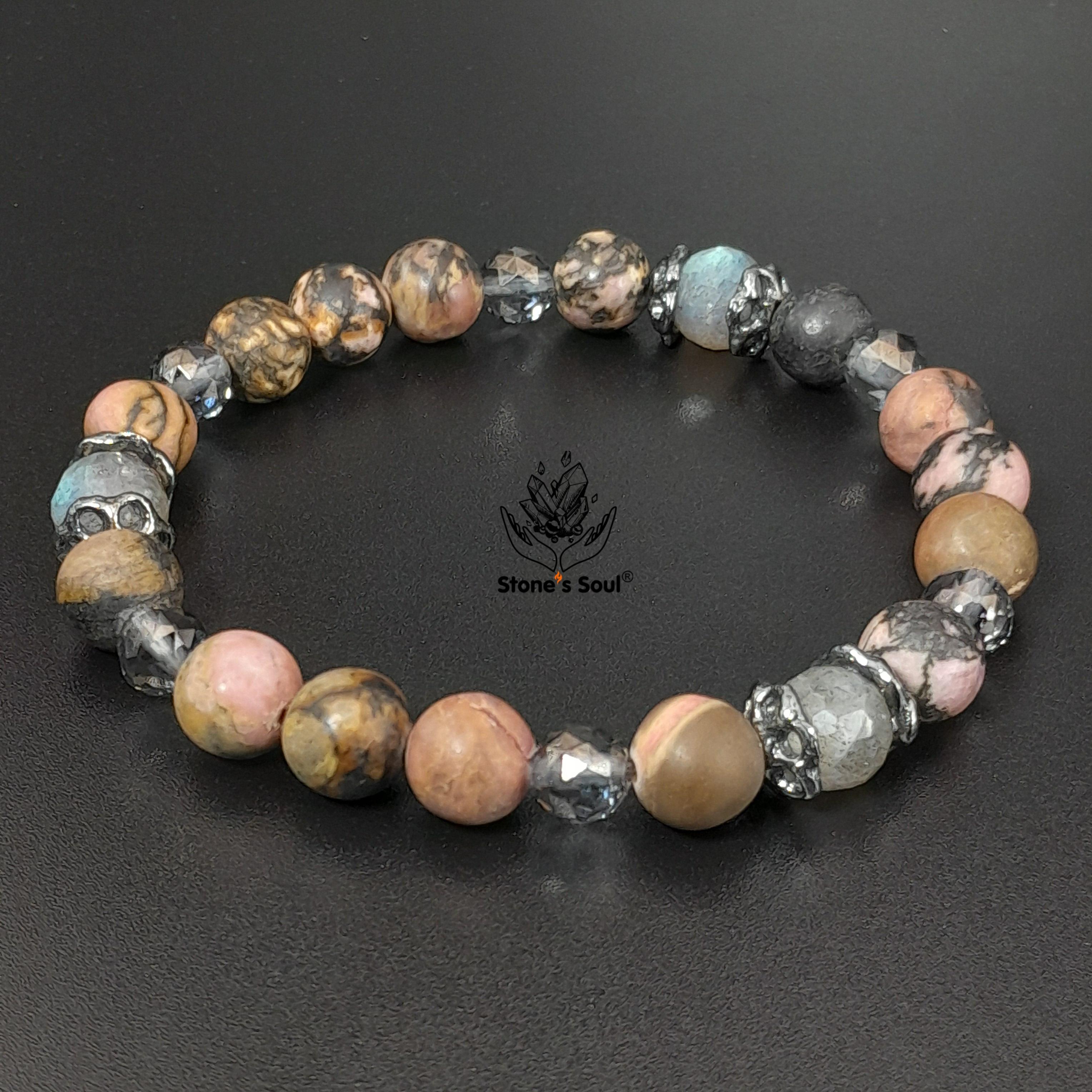 💎 Родонит, Лабрадор, Горный хрусталь 📿 Бусины 6-8 мм ⚜ Фурнитура латунь с серебрением Артикул 1000124