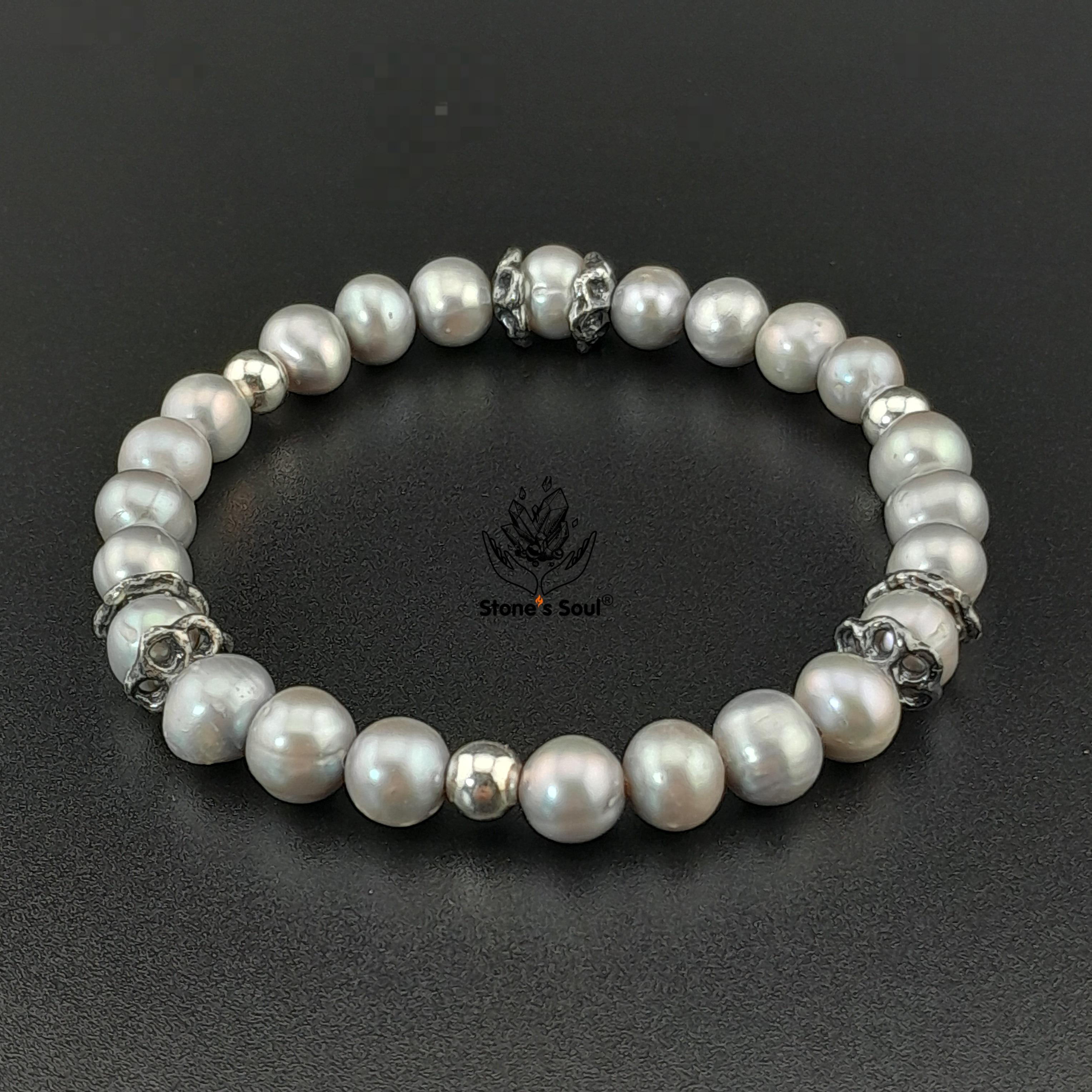 💎 Жемчуг пепельный 📿 Бусины 7 мм ⚜ Фурнитура серебро Артикул 1000127