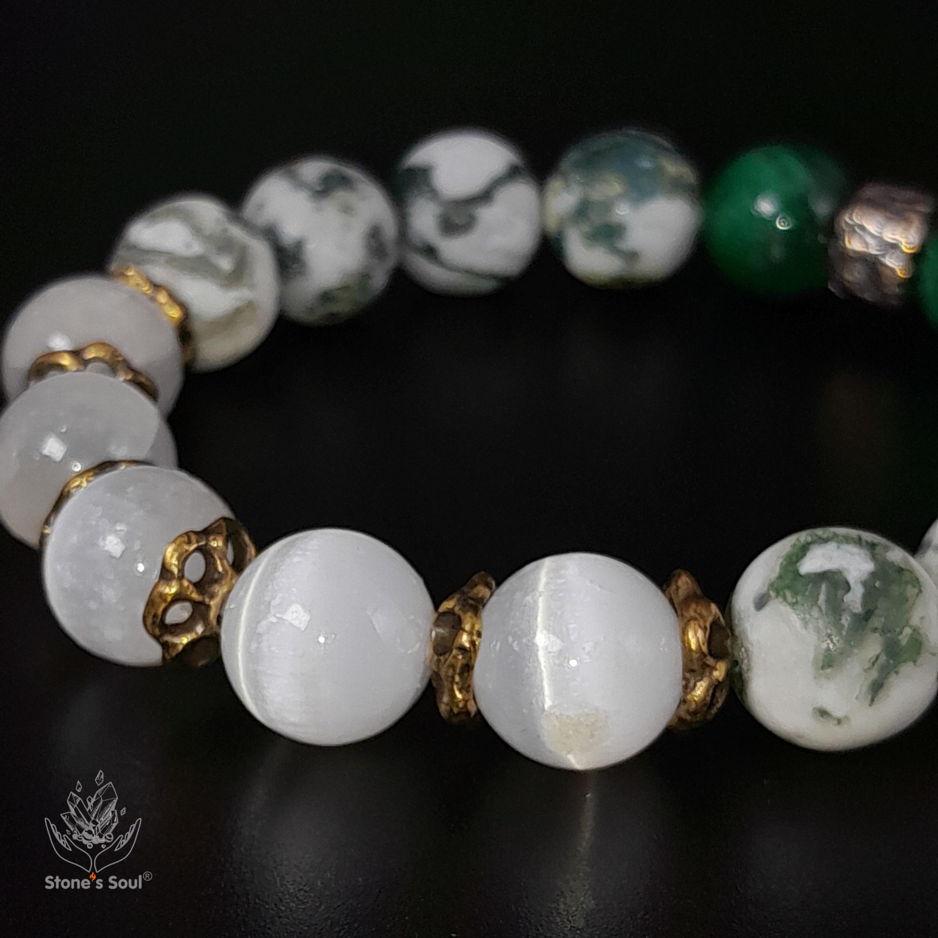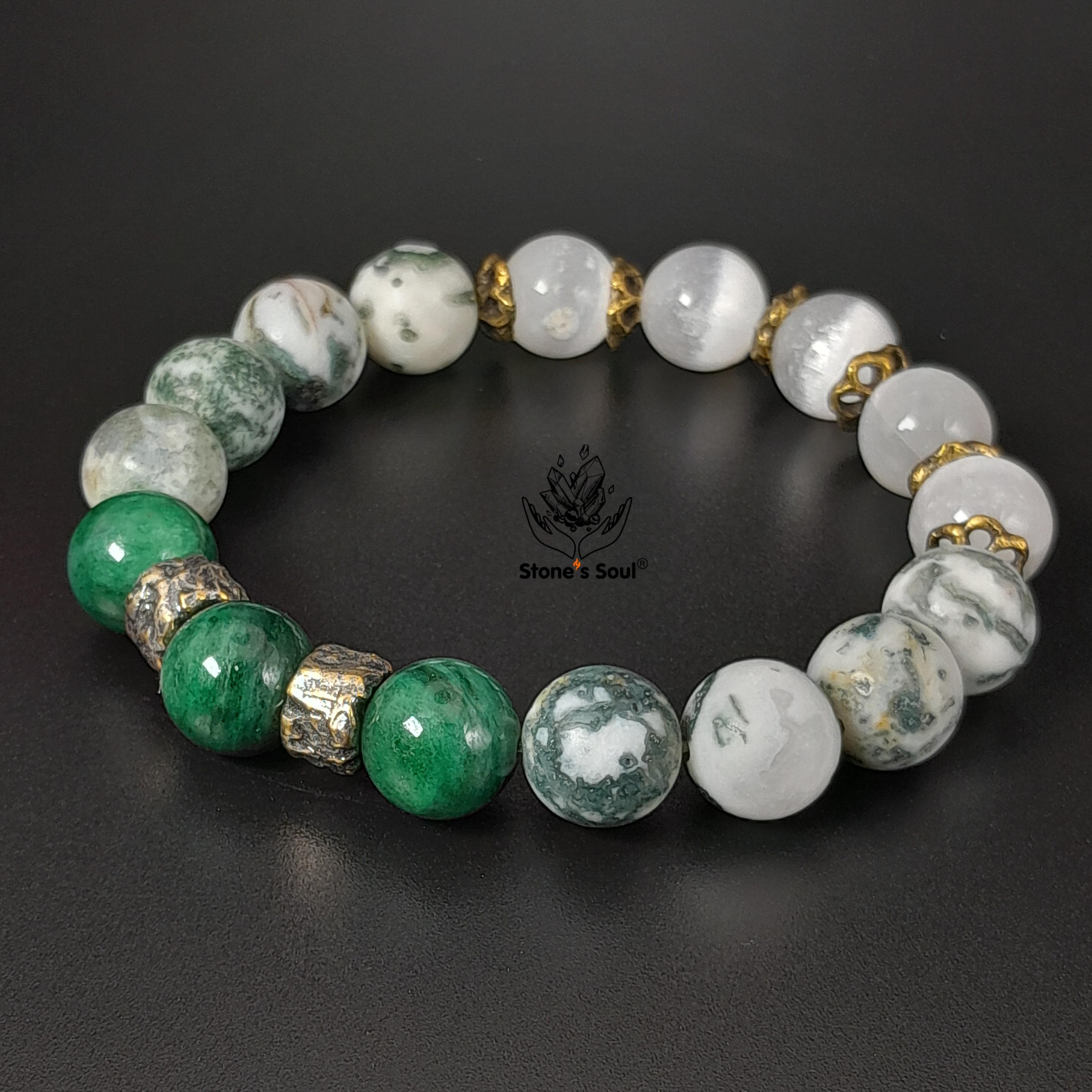 💎 Авантюрин с фукситом, Моховый агат (матовый), Селенит 📿 Бусины 10мм ⚜ Фурнитура латунь, латунь с патиной Артикул 1000134