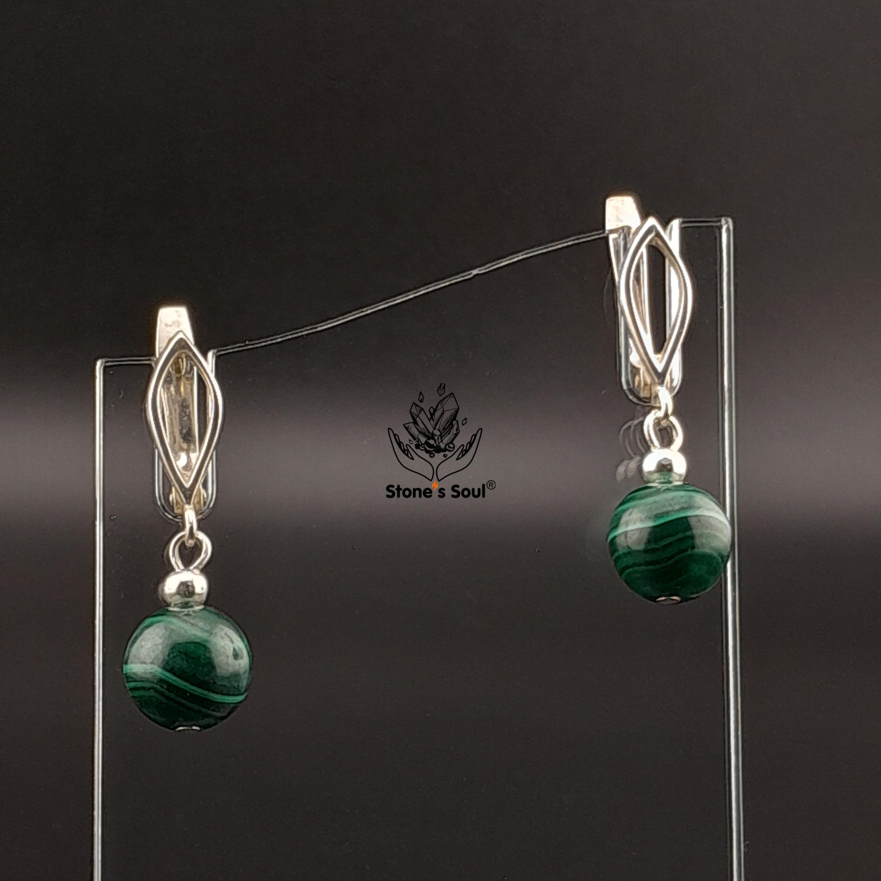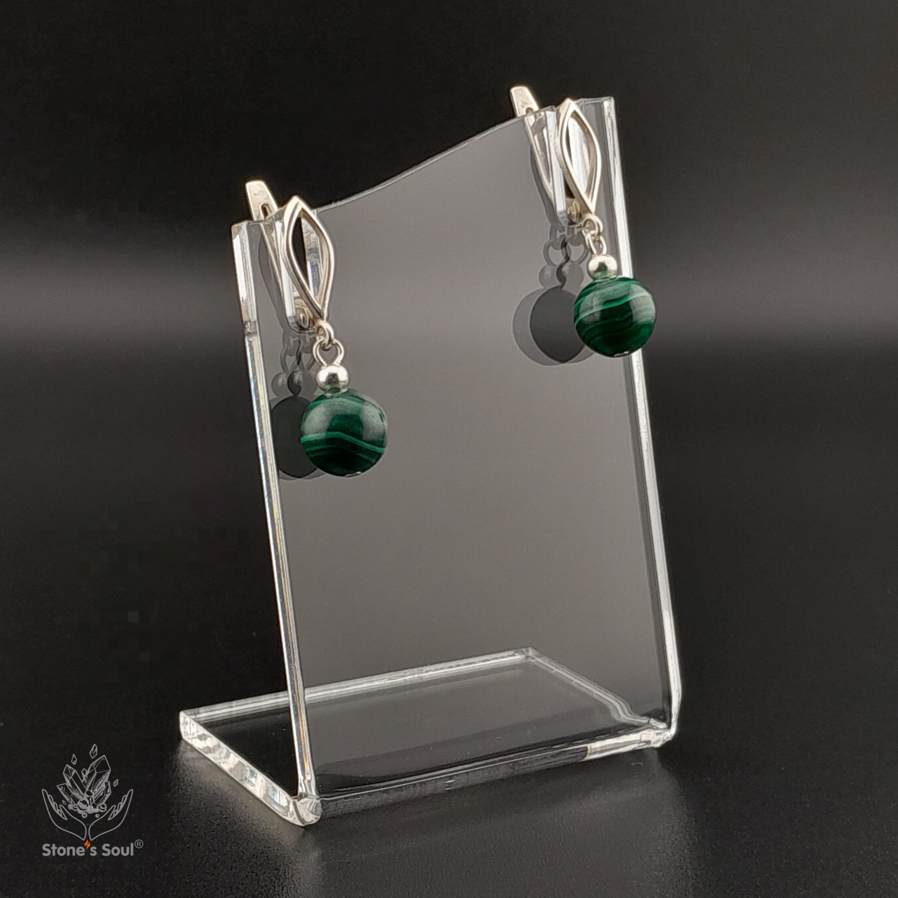 💎 Малахит 📿 Бусины 8мм 📐 Длина 27мм ⚜ Фурнитура серебро (швензы - английский замок) Артикул 2000103